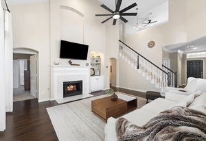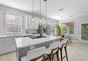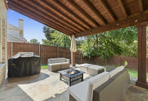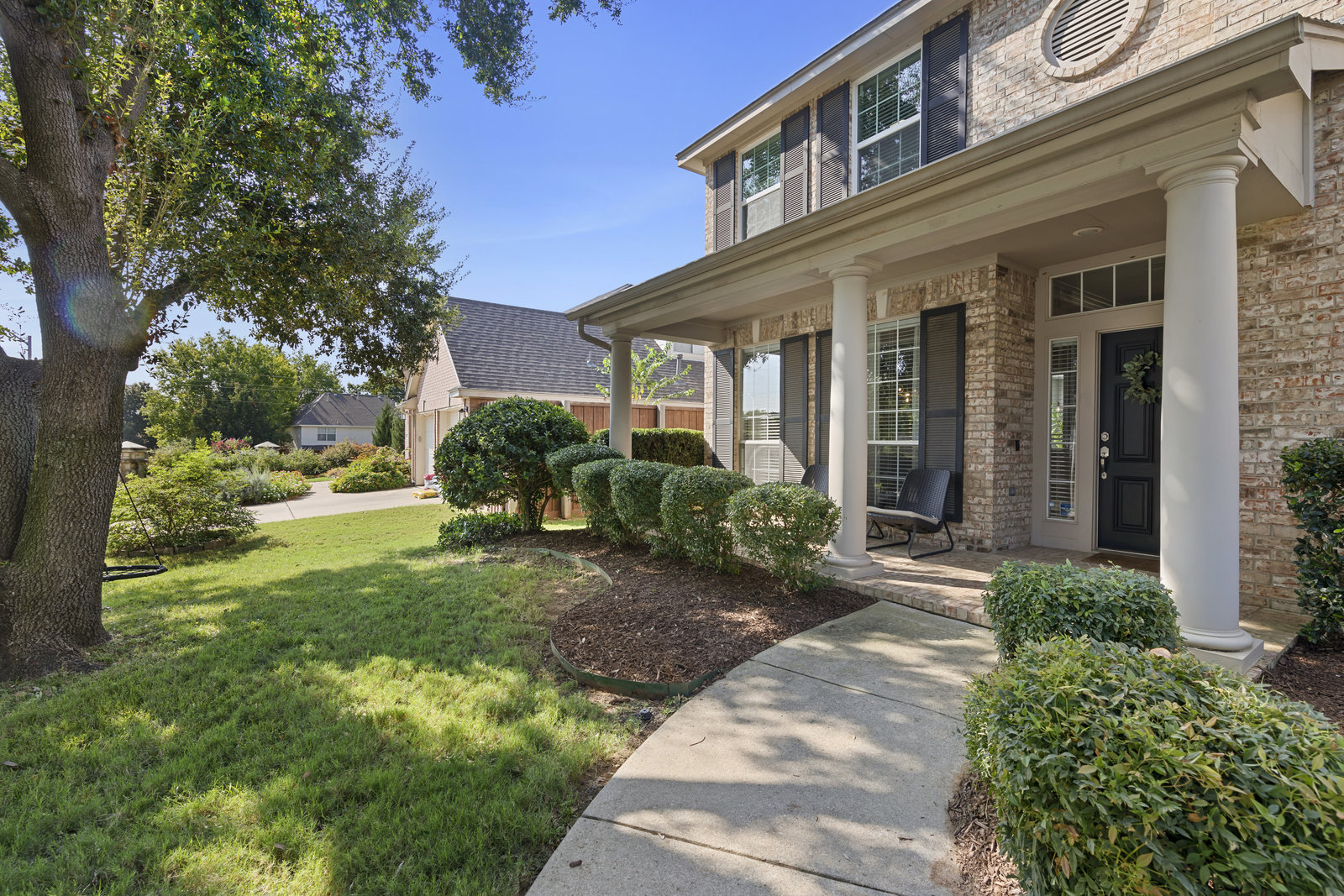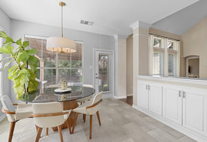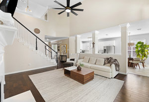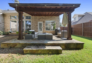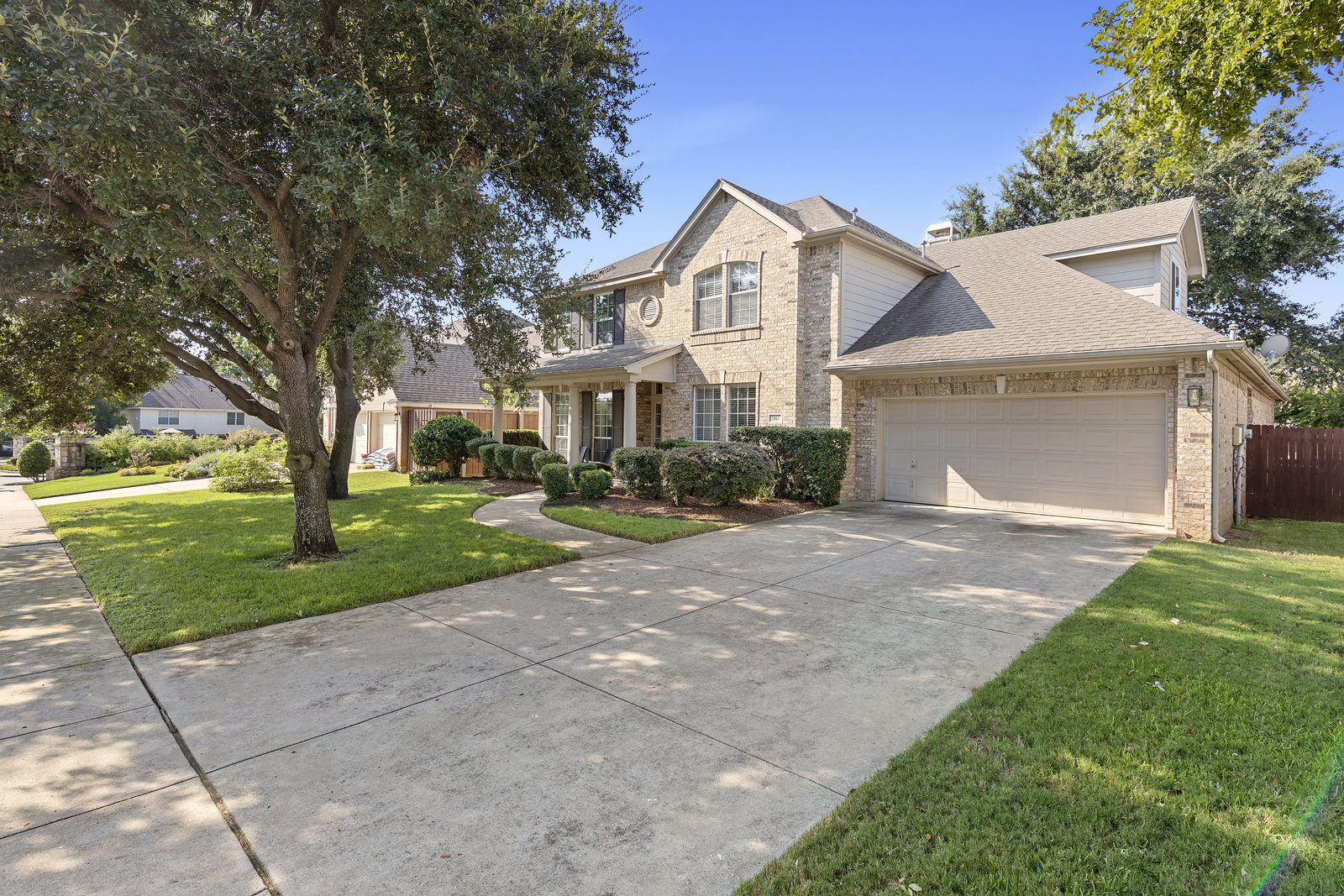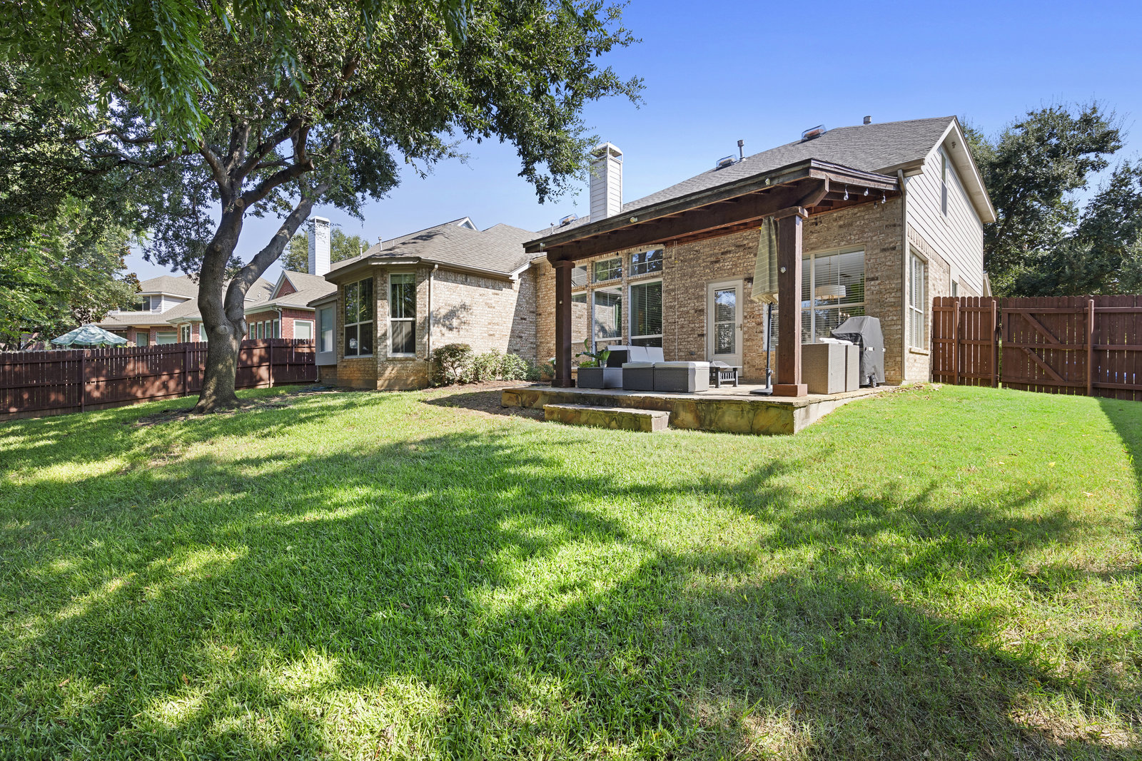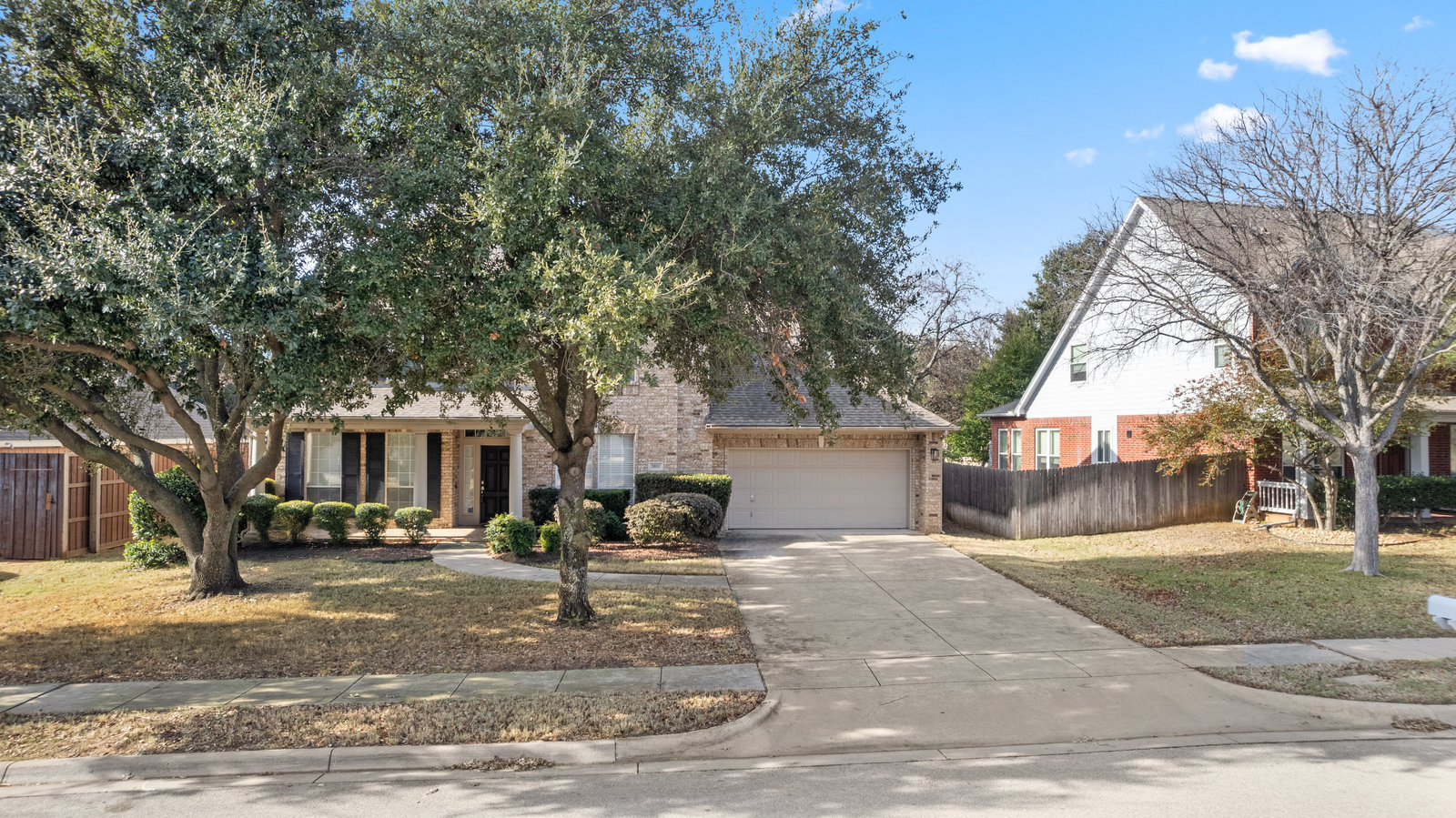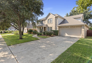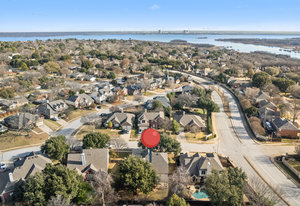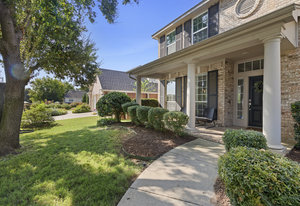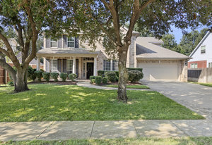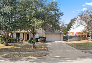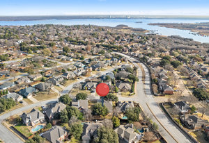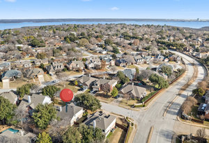 This charming home is filled with upgrades and is just a short walk to the trails of Grapevine Lake and Pickering Park. The welcoming curb appeal features a rare, large covered front porch and beautiful mature trees. Inside, modern and sophisticated updates shine throughout, from the stunning light fixutures to the fresh paint and hardwood floors. The main level provides a spacious primary bedroom, a dedicated office, and a convenient powder bath. The kitchen has been beautifully updated with Quartz countertops, new lighting, a stylish backsplash and udpated appliances. All ceiling fans have been replaced and the secondary bathroom shower tile has been udpated as well. The famiily room is open to the kitchen with a vaulted ciling and cozy wood-burning fireplace, and builtin shelves to display your family treasures. Upstairs has three bedrooms, a full bath and large game room area. And just in time for autumn, you'll enjoy the backyard with a large covered patio and pergola! Don't miss this opportunity to live in a highly desirable neighborhood in North Grapevine!