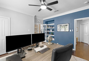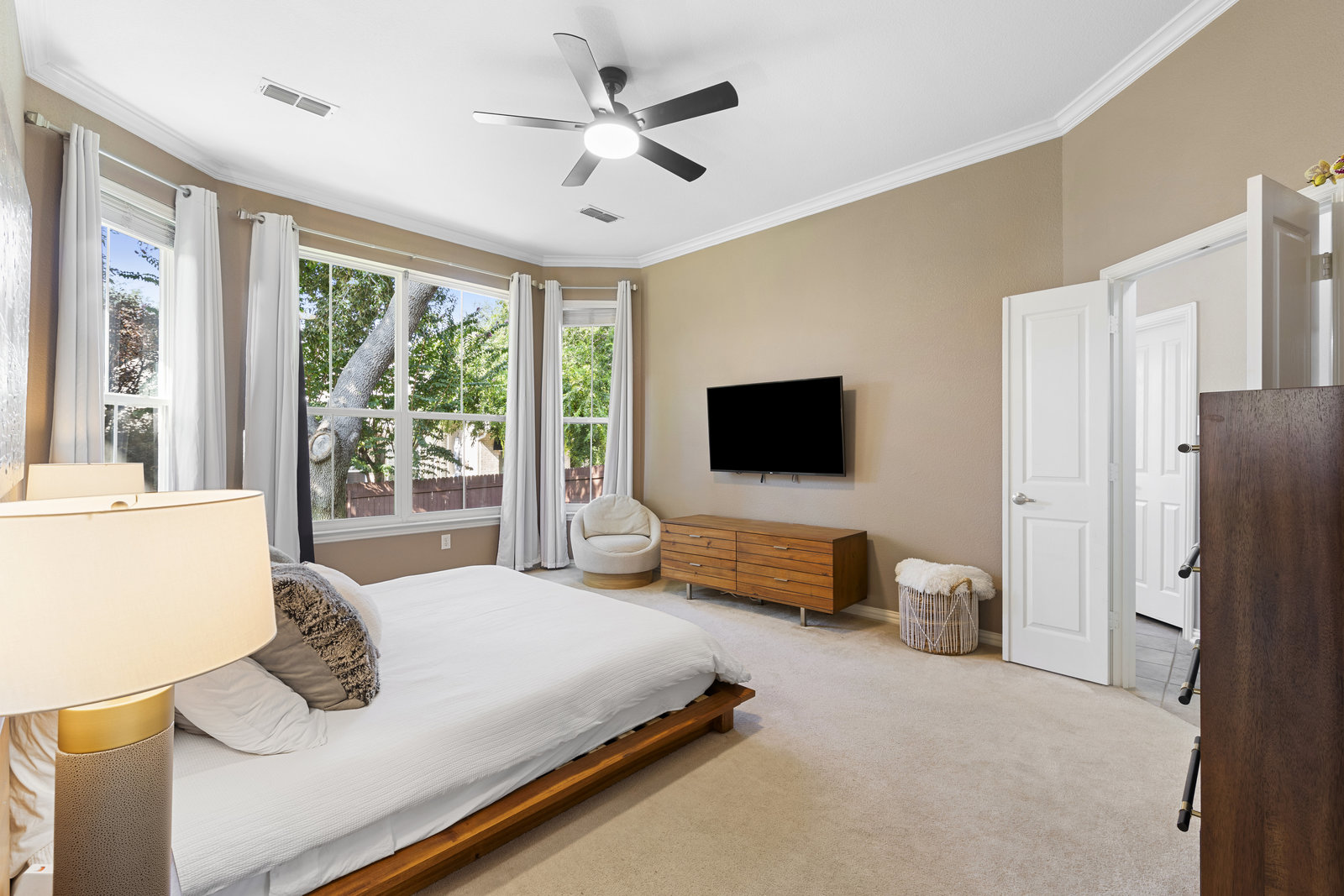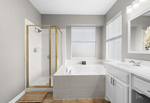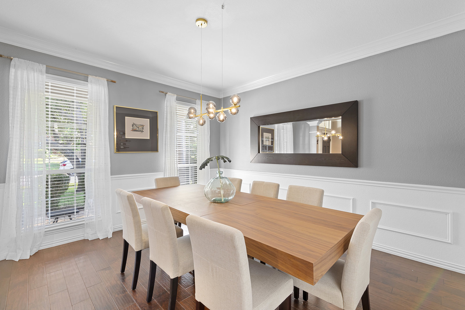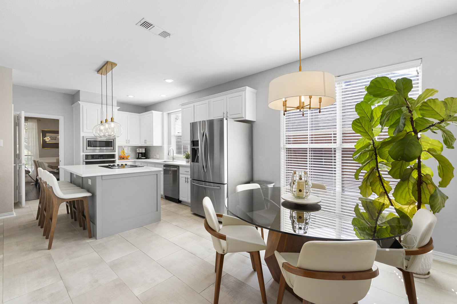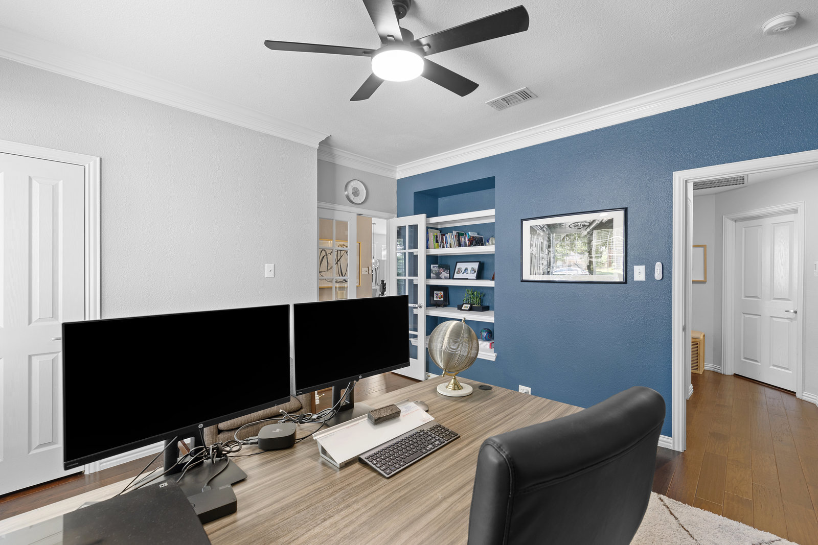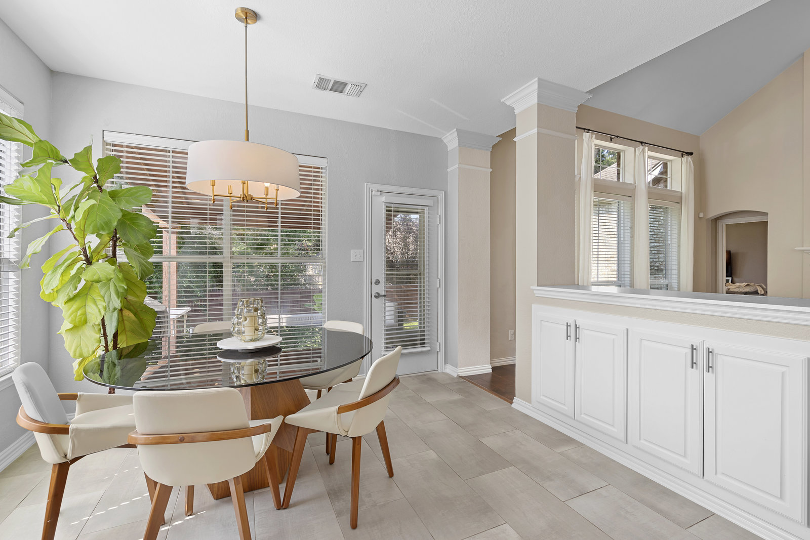 This charming home is filled with upgrades and is just a short walk to the trails of Grapevine Lake and Pickering Park. The welcoming curb appeal features a rare, large covered front porch and beautiful mature trees. Inside, modern and sophisticated updates shine throughout, from the stunning light fixutures to the fresh paint and hardwood floors. The main level provides a spacious primary bedroom, a dedicated office, and a convenient powder bath. The kitchen has been beautifully updated with Quartz countertops, new lighting, a stylish backsplash and udpated appliances. All ceiling fans have been replaced and the secondary bathroom shower tile has been udpated as well. The famiily room is open to the kitchen with a vaulted ciling and cozy wood-burning fireplace, and builtin shelves to display your family treasures. Upstairs has three bedrooms, a full bath and large game room area. And just in time for autumn, you'll enjoy the backyard with a large covered patio and pergola! Don't miss this opportunity to live in a highly desirable neighborhood in North Grapevine!