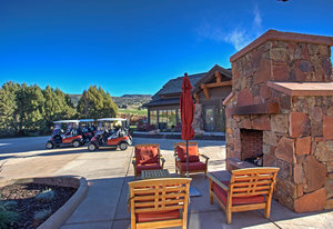 This beautifully designed cottage has one of the best floor plans for entertaining. Multiple patios, one off the front with views of the 6th green and a walk out patio off the family room that backs up to open space. This home is located across from the 6 hole of the Championship Golf Course and is with-in walking distance to the Village Center Pool and New Fitness Center. Great for a second home or full time residence. Full golf membership available to buyer.