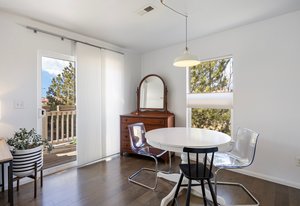 The primary suite is bright and inviting, featuring a custom closet system and an ensuite bath accented with modern tilework and floating shelves. As a quiet end-unit with only one shared wall, the home offers added privacy and a sense of calm that’s hard to find. Details like engineered wood floors, adjustable top-down/bottom-up blinds, and a private deck enhance daily living, while the attached one-car garage with a 220-volt outlet and ample additional parking round out the functionality. With two bedrooms and two baths, this updated condo blends thoughtful design with a peaceful suburban setting—refreshed, refined, and ready for its next chapter.