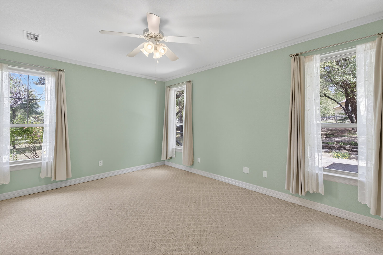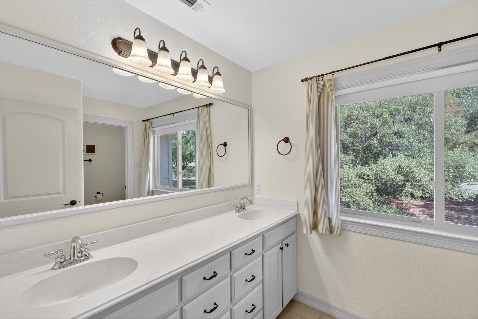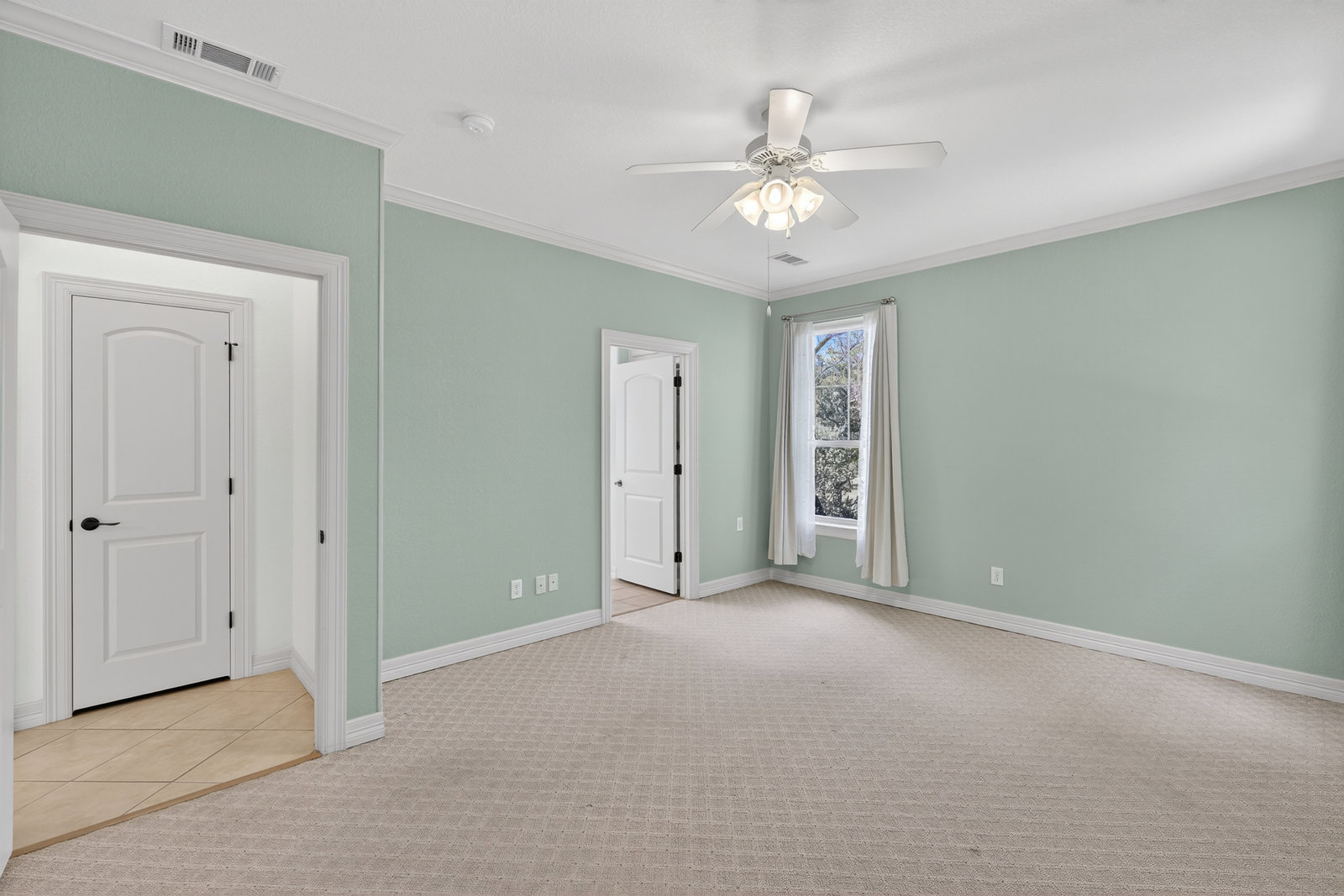 The serene primary suite includes large windows, a soaking tub, separate shower, and dual vanities for added comfort. Three additional bedrooms provide plenty of space for family, guests, or a home office.