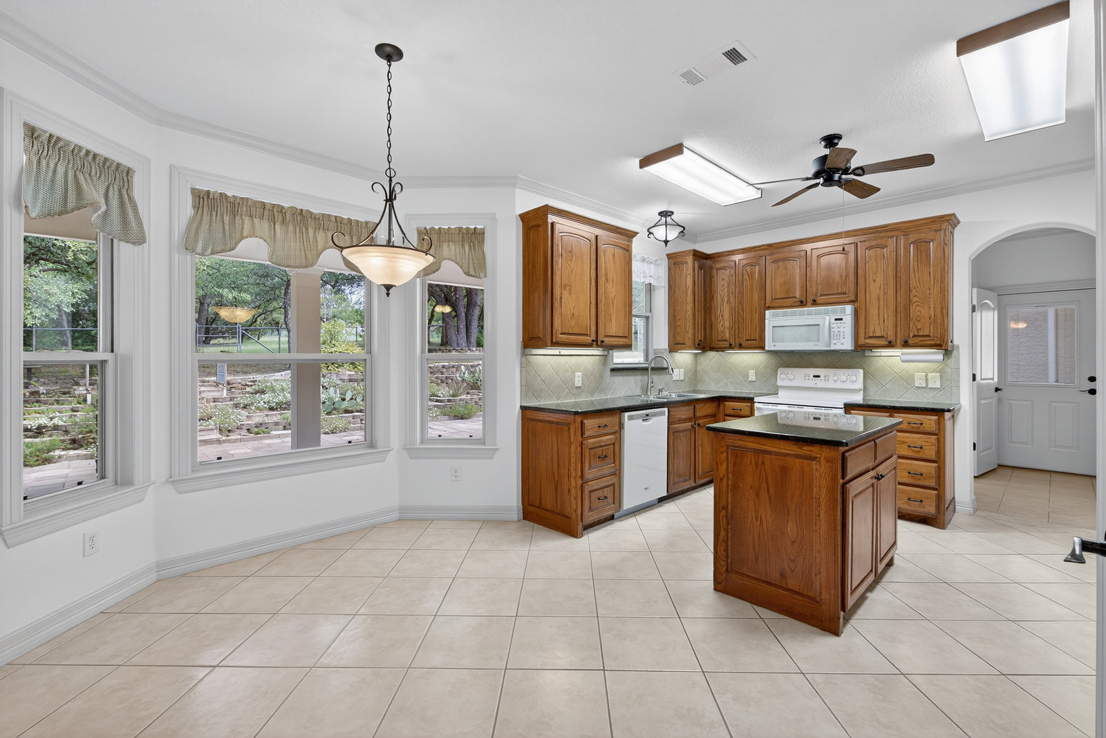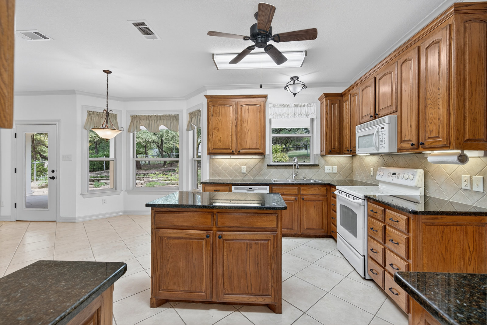 Step inside and be greeted by a light-filled entryway, elegant staircase, and spacious living areas with plenty of windows to capture the views. The well-appointed kitchen features granite countertops, a center island, custom cabinetry, and a breakfast nook overlooking the backyard. Formal dining and multiple living spaces make this home perfect for both everyday living and entertaining.