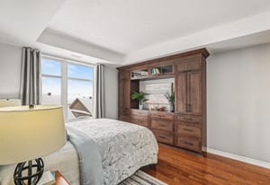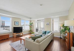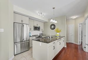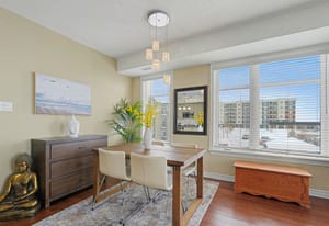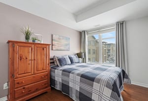 This bright and spacious 2-bedroom + den, 2-bathroom end-unit condo offers 1,335 sq. ft. of elegant living space in the heart of Stittsville. The open-concept kitchen is a chef's delight, featuring stainless steel appliances, pull-out pot & pan drawers, stone countertops, a large peninsula with prep area, and an additional pantry. Natural light floods the living and dining areas, which feature hardwood floors throughout for seamless transitions. Located off the kitchen, the den features French doors and offers flexible space perfect for a home office, hobby room, or cozy reading nook. Enjoy outdoor living with East-facing balcony equipped with a natural gas BBQ hookup-a rare find in condo living. The primary bedroom includes custom built-ins for added storage, a walk-in closet, and a 4-piece ensuite. The second bedroom is conveniently located adjacent to the main bathroom, providing an ideal layout for guests. This low-rise building includes an elevator, 1 heated underground parking space(P1), generously sized storage locker(L1) and one exterior parking space (#12). Ideally situated close to walking trails, parks, shopping, and public transit, this home is an excellent choice for professionals or downsizers seeking comfort and convenience.
