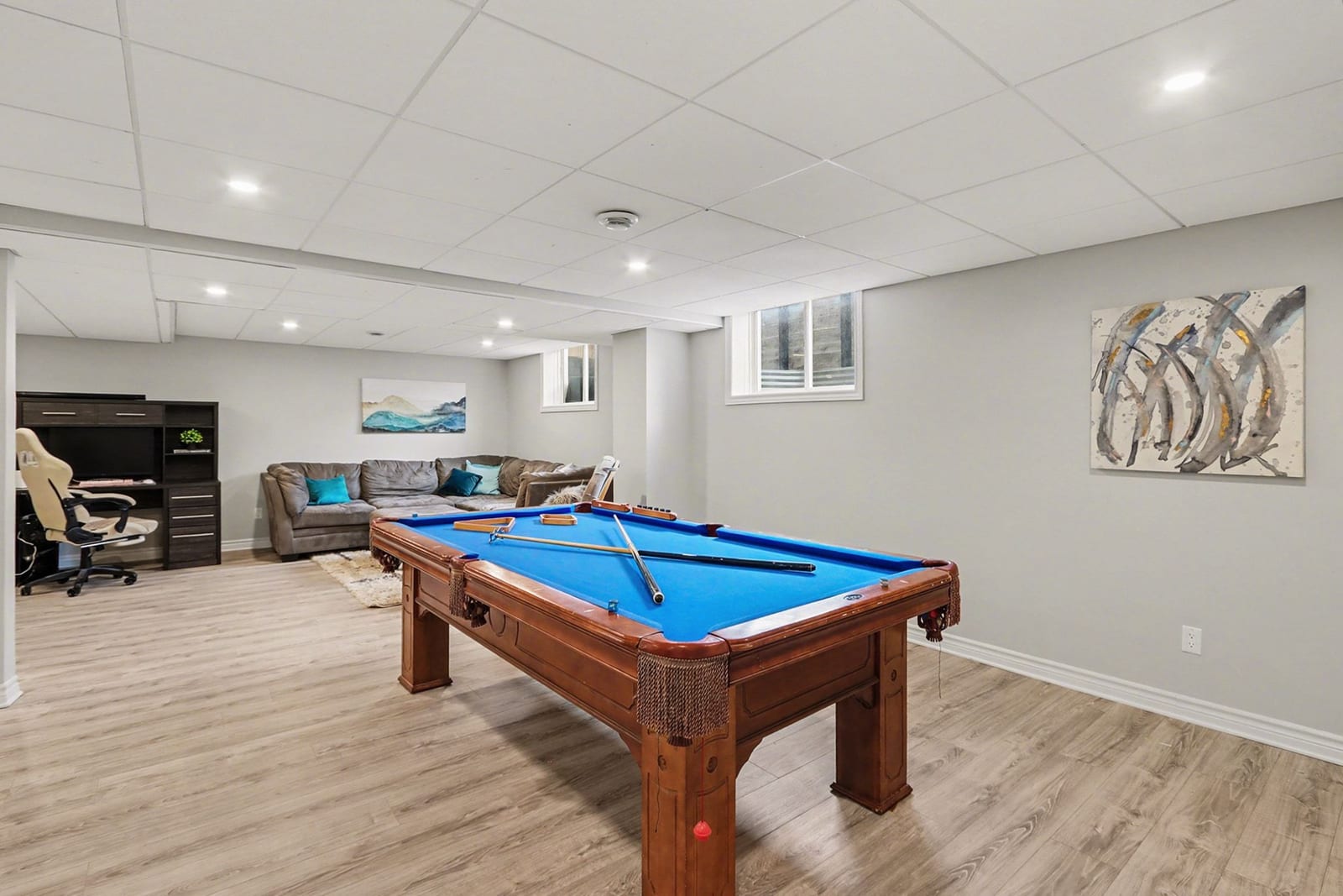 Designed specifically for families, the Hartland model by Tamarack offers 2,646 sq.ft (above grade) of living space and is located steps to parks, schools & Minto Recreation Complex (with ice rinks, aquatic centre, gym & fitness centre). The main level features a sun filled open concept kitchen and living room, formal dining room and a home office/den with french doors. This floor also includes a spacious front foyer and a mudroom with a walk-in closet, complemented by hardwood floors and pot lighting throughout. Chefs will delight in this functional and welcoming kitchen with island and raised breakfast bar, eating area, gas range, walk-in pantry, quartz counter tops, stainless steel appliances and patio door leading to backyard. The 2nd level is thoughtfully designed with a bathroom for every bedroom. The primary suite includes a 5-piece ensuite and a walk-in closet. The 2nd and 3rd bedrooms share a 3-piece Jack and Jill bathroom, while the fourth bedroom features its own private 4-piece ensuite. A dedicated laundry room with sink and folding table is also located on this floor. For additional living space, the finished basement offers a large rec/family room with oversized windows, a 3-piece bathroom and generous storage. The exterior is perfect for entertaining, featuring a fenced-in backyard with a composite deck, an interlocking patio, a heated above-ground pool (installed in 2020), a shed and a natural gas BBQ hook-up. Close proximity to shopping, restaurants, amenities and transit.
