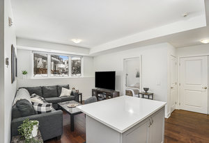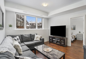 Discover a fantastic opportunity to own a beautifully designed, modern condo nestled just a hop, skip, and a jump from the Uplands and South Keys LRT stations, Ottawa Airport, and the bustling South Keys shopping center, this place makes downtown a breeze to reach. This bright, contemporary, single-level unit features two bedrooms and one bathroom, with large windows and an open-concept kitchen and living area adorned with engineered hardwood flooring throughout. The kitchen boasts stylish stainless steel appliances, quartz countertops, and an island. Two generously sized bedrooms, a four-piece bathroom, and convenient in-unit laundry complete this lovely home. Additionally, the rooftop terrace is a perfect spot to relax or bask in the sun on lovely days. This condo is ideal for young couples, professionals, or those looking to downsize.