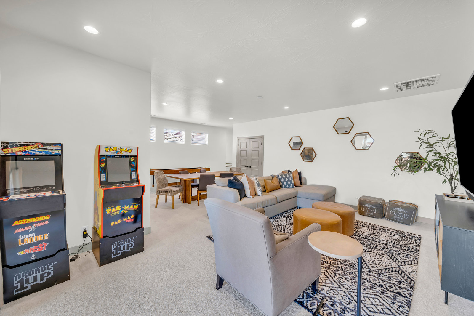 Appointed with 5 spacious bedrooms and 5 full bathrooms, this beautiful villa provides comfortable accommodations for up to 21 guests and is being offered fully furnished. With a main floor primary suite, an additional main floor guest bedroom and a bunk room that sleeps 11, this villa accommodates all ages and mobilities. Additionally, the layout also provides two gathering areas, one being a recreation room that offers gaming of all kinds and plenty of cozy seating for movie nights, and two relaxing outdoor living areas that are shaded from the afternoon sun, perfect for dining alfresco.