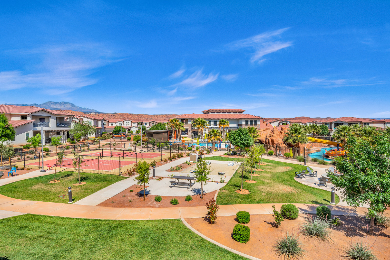 Whether your guests have planned a day of adventures visiting state and national parks, golfing, hiking the nearby trails, seeing a Tuacahn performance, or maybe even a little bit of everything, they will surely enjoy coming home to what is consistently regarded as a favorite feature, the incredible park like backyard and poolside location! Imagine being just steps away from the resort amenities which include a clubhouse, pools, waterslide, lazy river, hot tubs, pickleball, cornhole and much, much more!