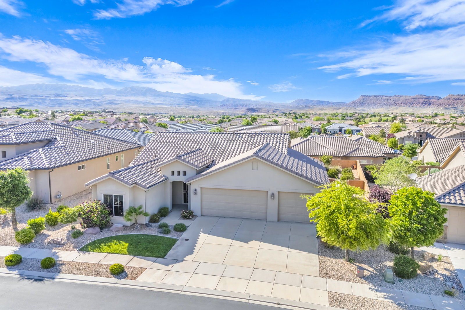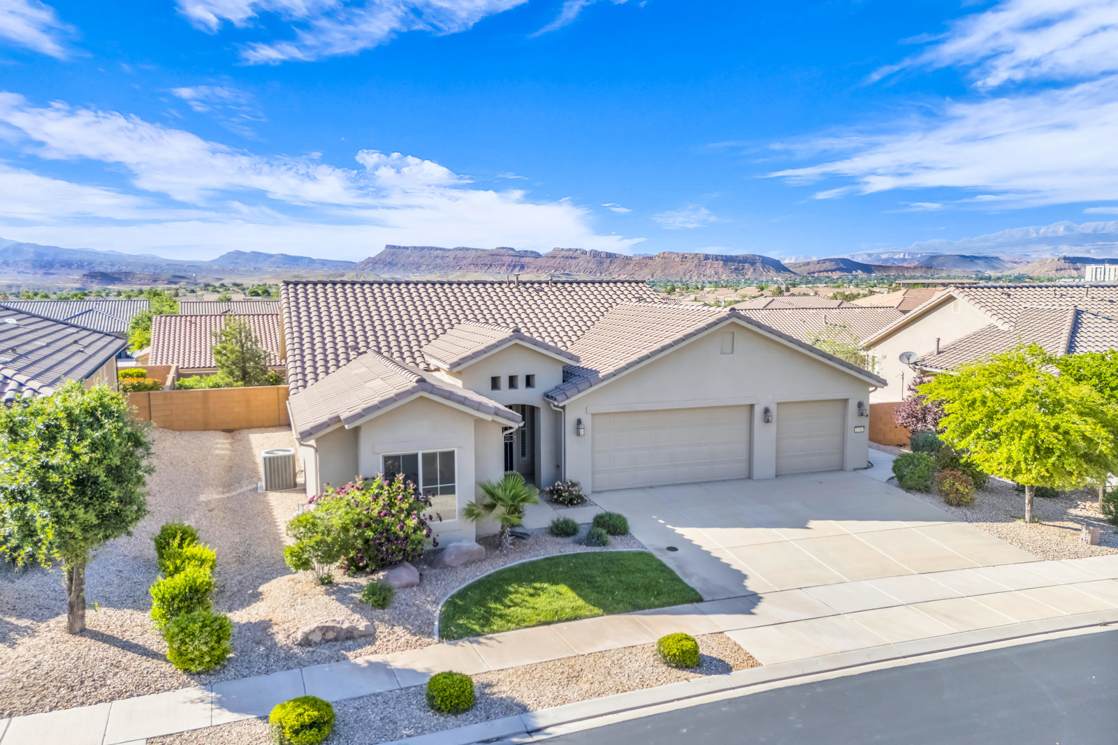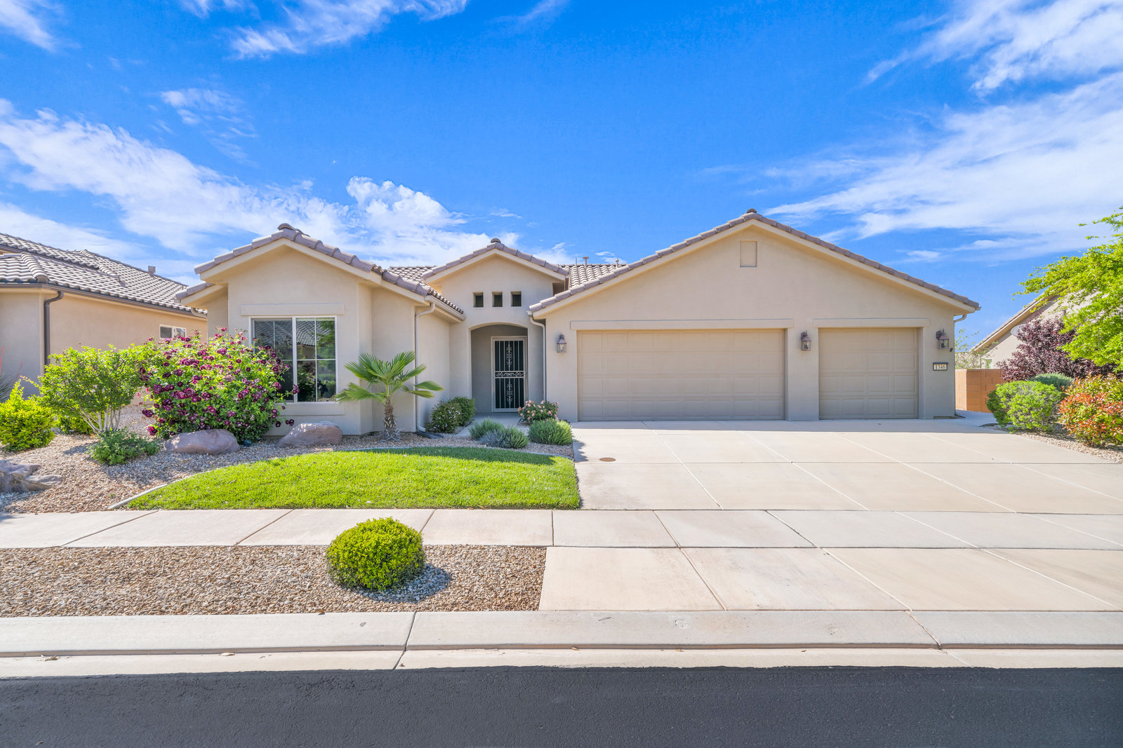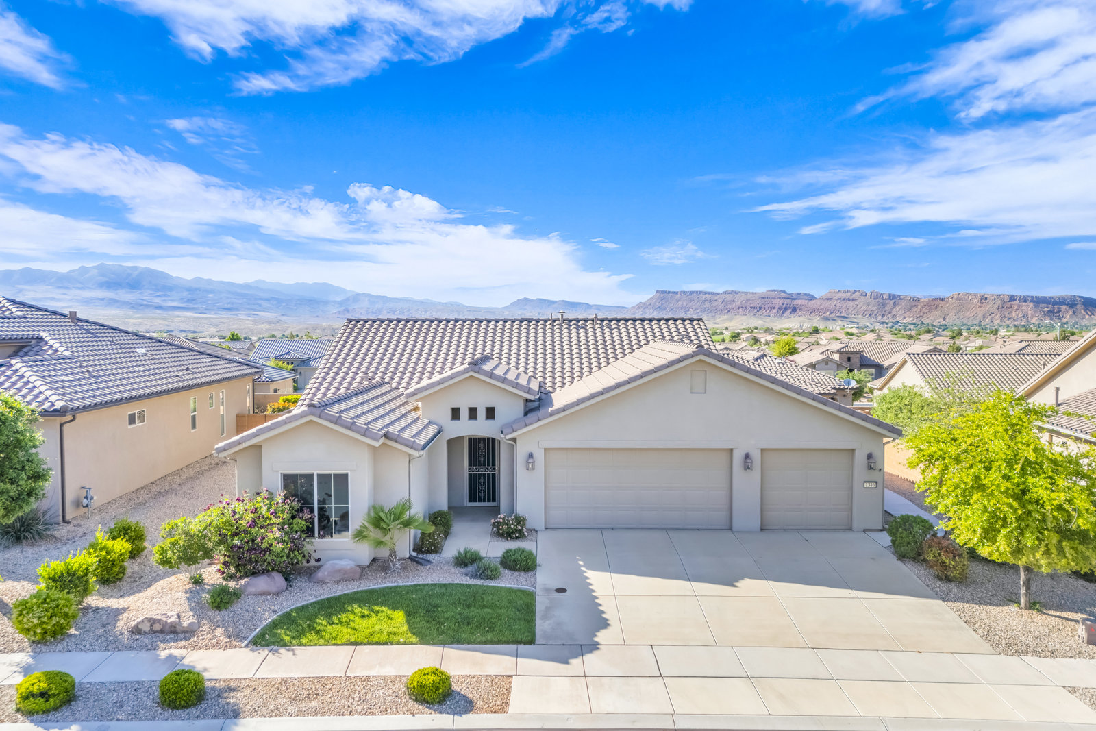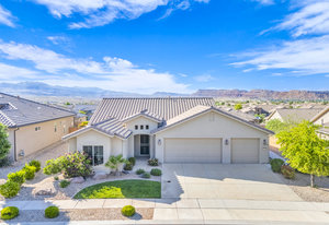 Discover serene living in this immaculate 55+ community property located in prestigious Sun River, St George. Embrace the stunning views from this 1-level, 1521 sqft residence offering 2 bedrooms, 2 bathrooms, and office/flex room/artist room. Enjoy the epitome of relaxation with gorgeous landscaping and a 3.5 car garage for all your needs. Indulge in the golf course lifestyle while savoring the tranquility of this meticulously maintained property, built in 2015.