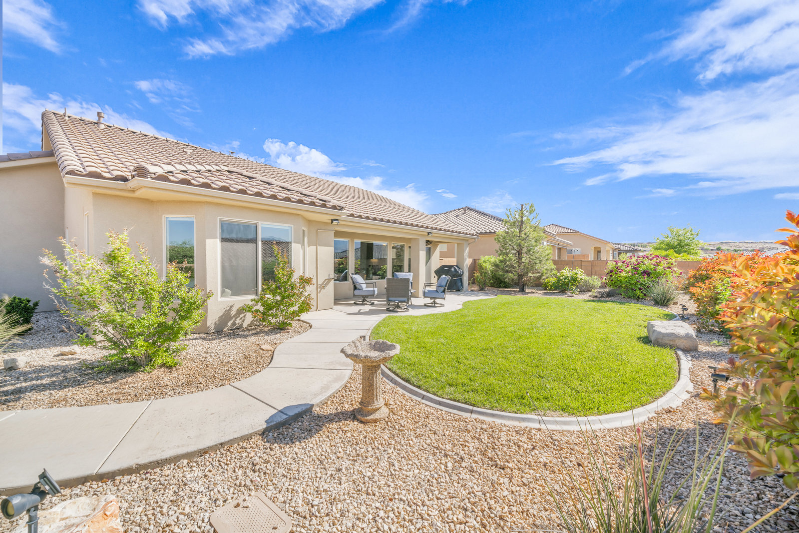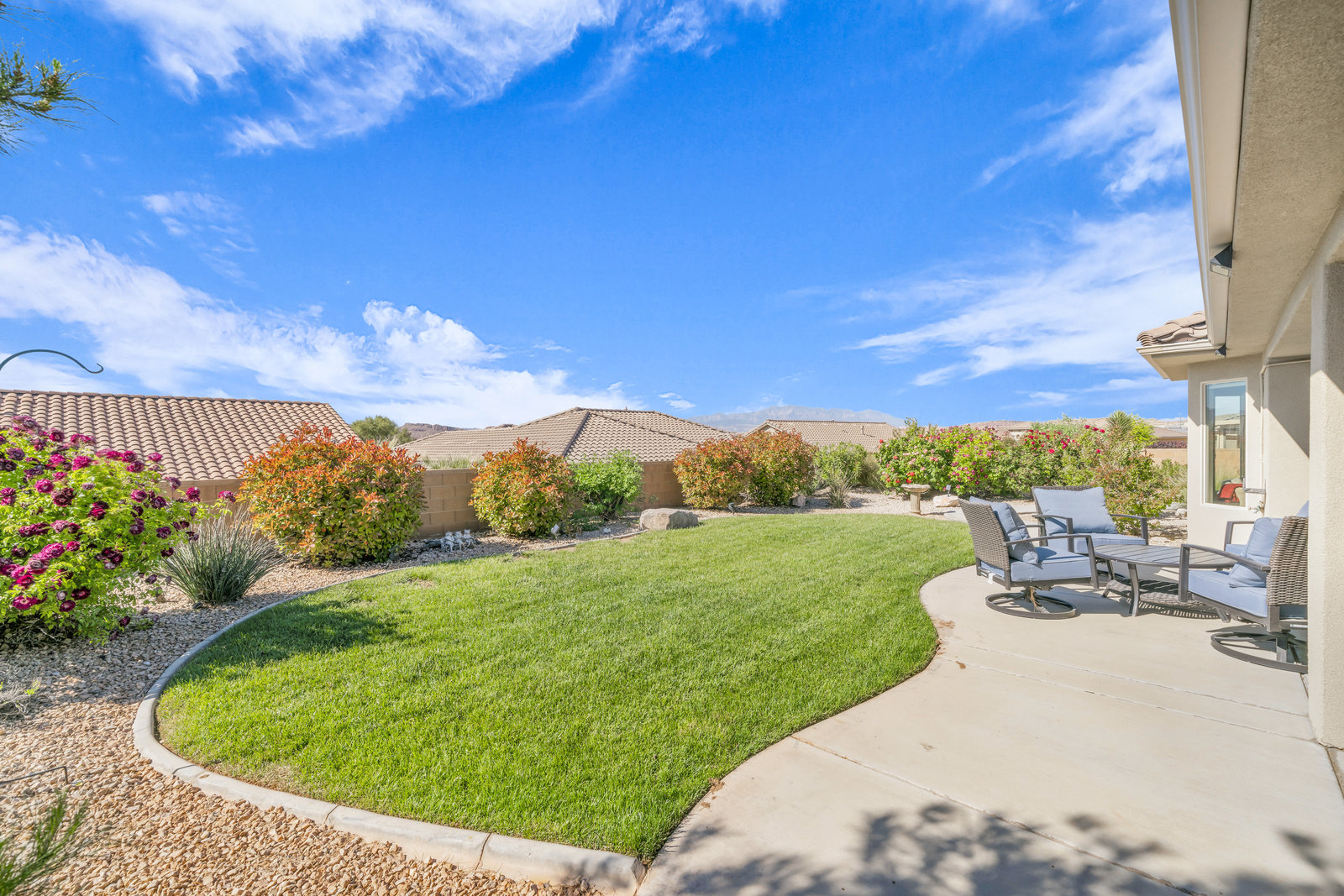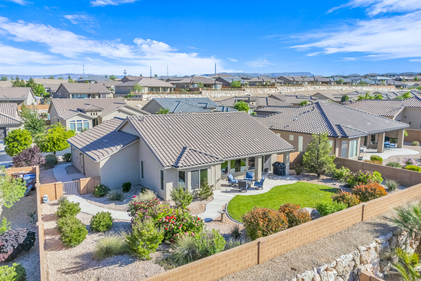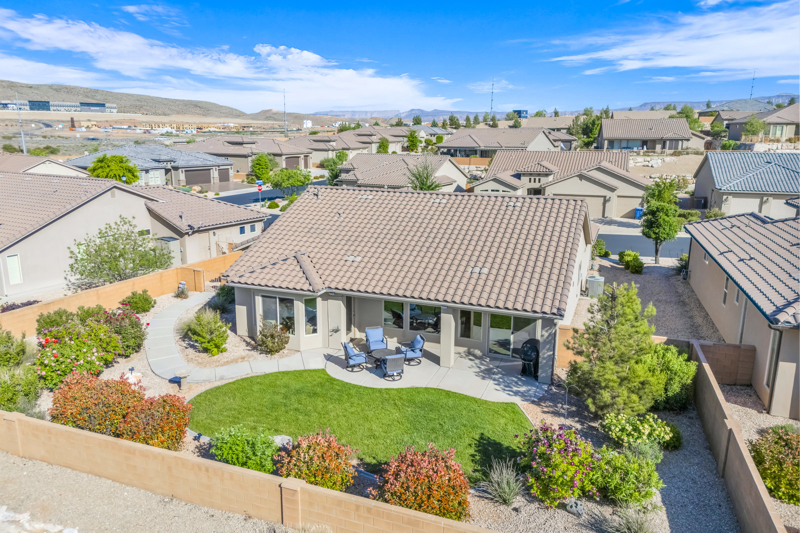 Discover serene living in this immaculate 55+ community property located in prestigious Sun River, St George. Embrace the stunning views from this 1-level, 1521 sqft residence offering 2 bedrooms, 2 bathrooms, and office/flex room/artist room. Enjoy the epitome of relaxation with gorgeous landscaping and a 3.5 car garage for all your needs. Indulge in the golf course lifestyle while savoring the tranquility of this meticulously maintained property, built in 2015.