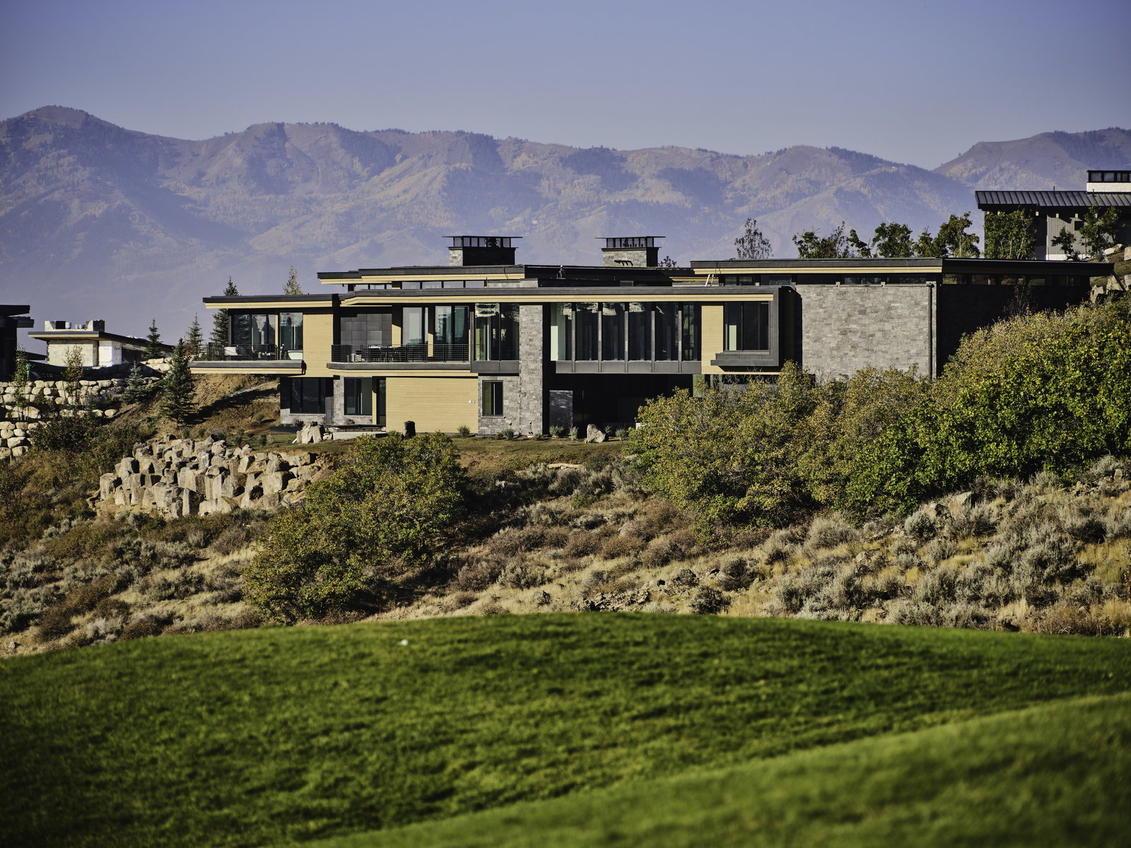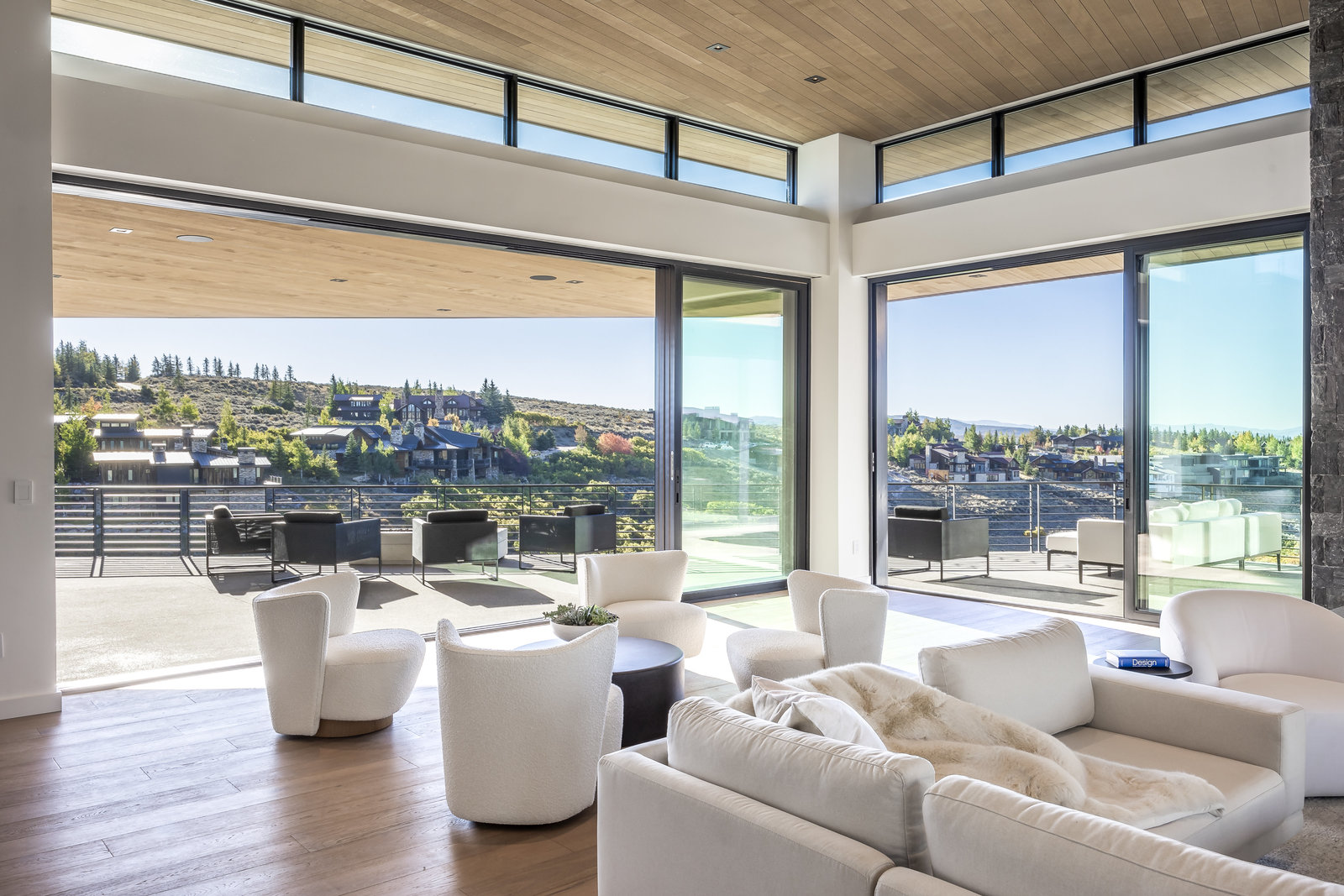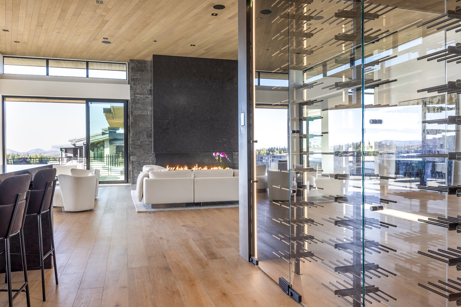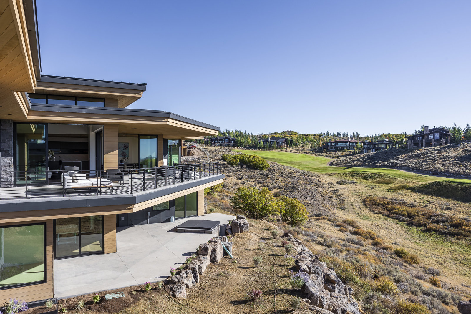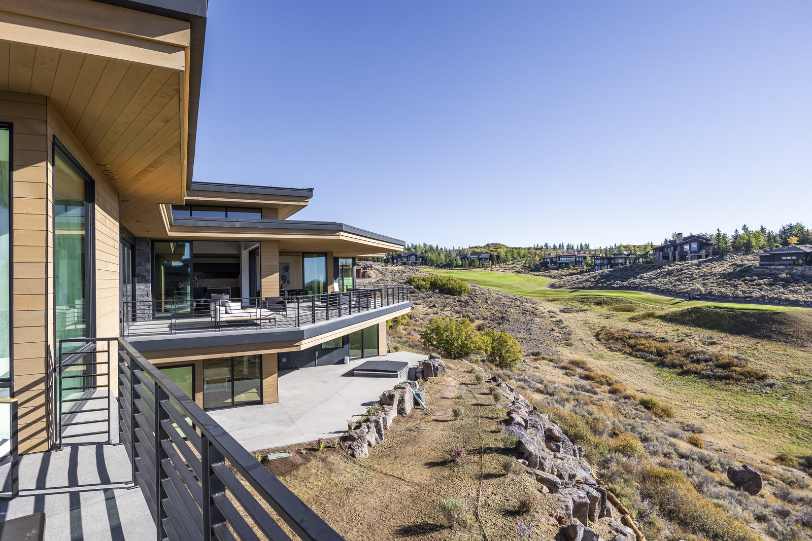 New Construction in the coveted gated Pinnacle within Promontory, this contemporary style home combines the sleek clean lines of wood, metal, stone, and glass with smart comforts. Golf Membership available. Focused on the spectacular mountain and golf course views, the interior and exterior living spaces are seamlessly blended by floor-to-ceiling windows and an expansive open floor plan on two levels with gracious decks. Thoughtful design details are evident from the white oak wood flooring to the custom ceiling treatments, lighting, cabinetry, and fixtures. Main-level living is optimized with a great room, a gourmet kitchen featuring Wolf and Sub Zero appliances, a butler's pantry, a statement Wine Wall, and a hearth room. Beyond the dedicated office, the primary bedroom is a private oasis with a spa bathroom, a large walk-in closet, and a secluded deck. Access the lower level via the custom single stringer staircase where the family room, game area, flex room, wet bar, and patio with a hot tub are convenient amenities to the four guest rooms with ensuite bathrooms and a custom bunk room. Radiant heated floors throughout, including the entire concrete driveway and spacious three-car garage with a large flex area. Designed by Michael Upwall and built by Germania Construction, this masterful home is nestled on one of the 64 homesites in Pinnacle, a multi-generational, private enclave within the gated community of Promontory. Each lot was curated to be exceptional in every way from amazing vistas to sublime topography. Pinnacle is a coveted neighborhood catering to aspiring buyers desiring seclusion and privacy within the amenity-rich Promontory neighborhoods, all with easy accessibility to the Salt Lake City airport and the dining, retail, and ski resorts of Park City. Skyhouse, a dedicated oasis to Pinnacle families will include a lap pool, hot tub, cold plunge, outdoor gathering area, catering kitchen, concierge services, and treatment rooms for private bookings. Construction to be completed in 2024.