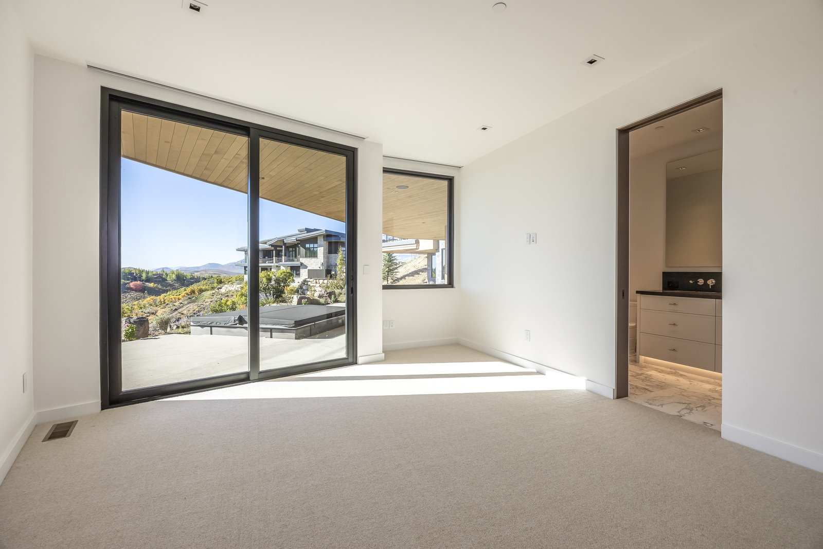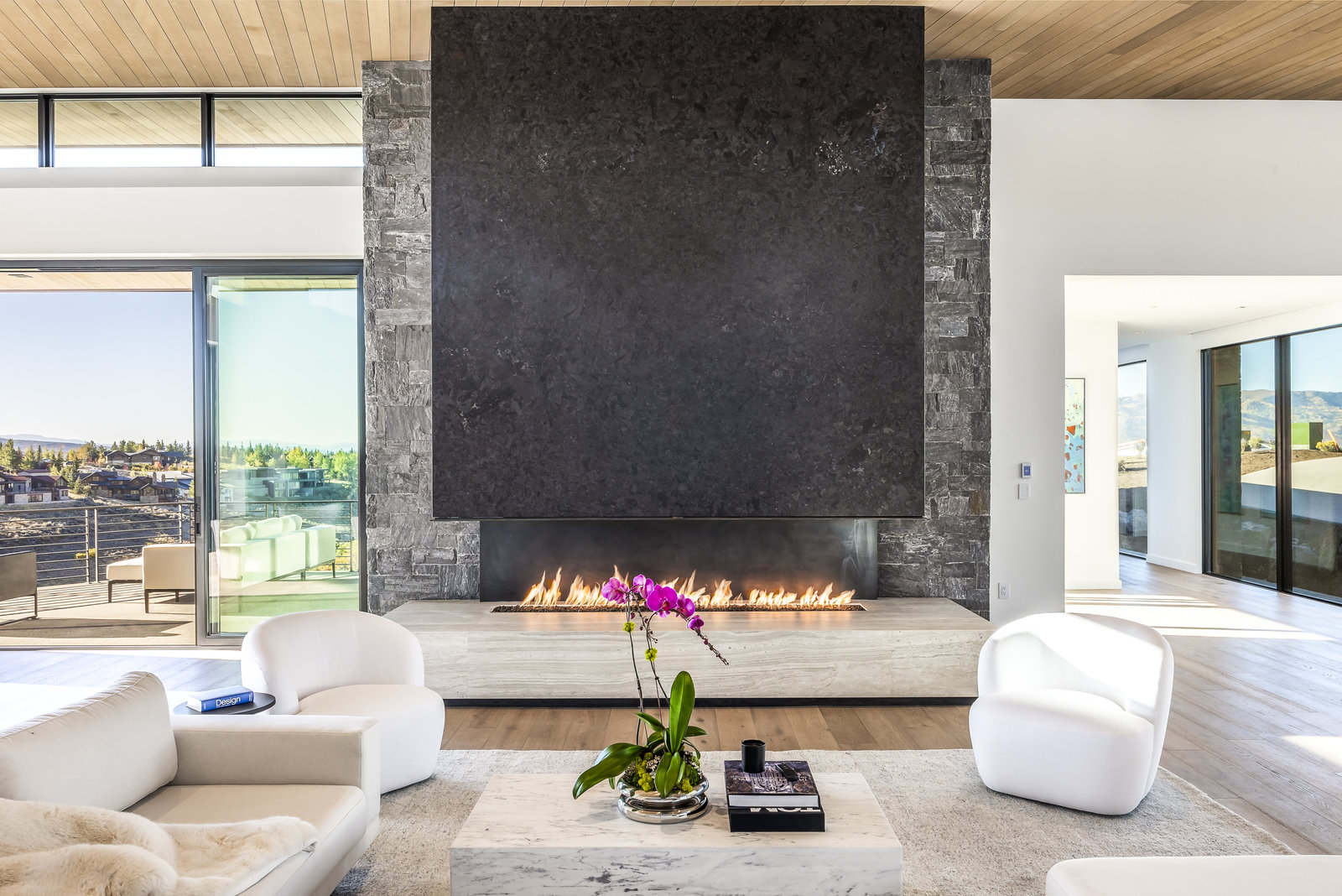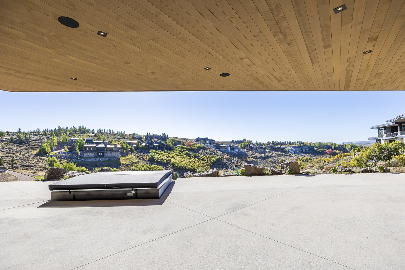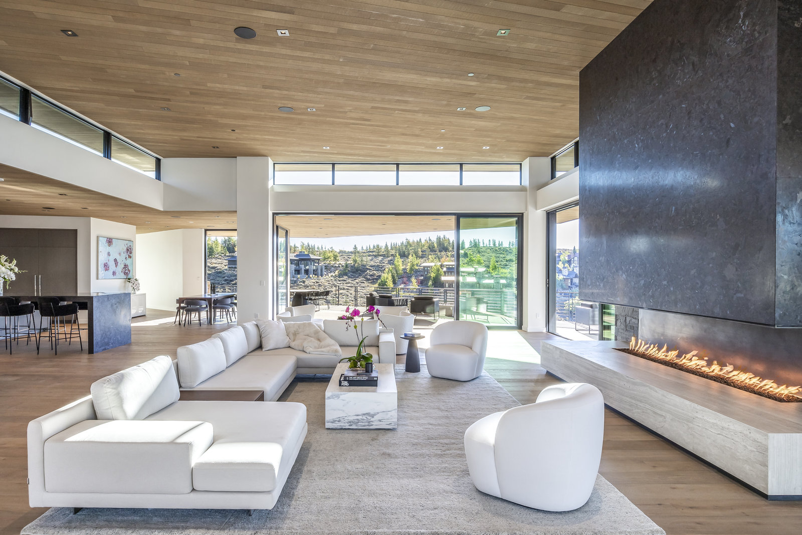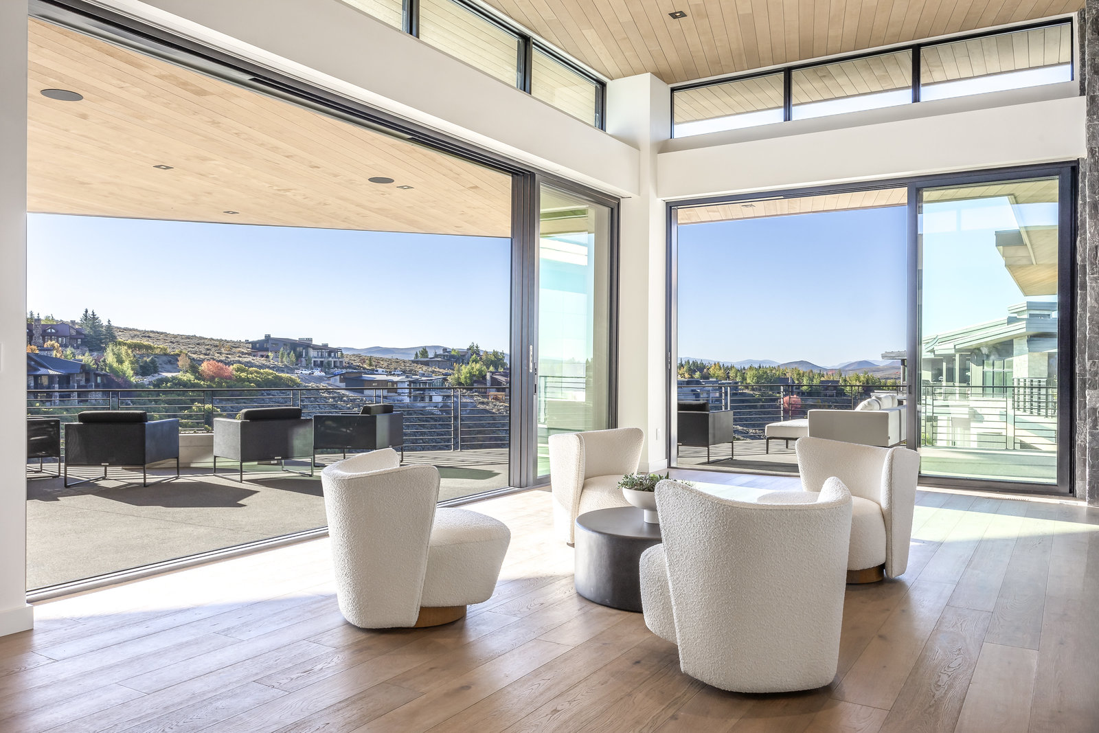 New Construction in the coveted gated Pinnacle within Promontory, this contemporary style home combines the sleek clean lines of wood, metal, stone, and glass with smart comforts. Golf Membership available. Focused on the spectacular mountain and golf course views, the interior and exterior living spaces are seamlessly blended by floor-to-ceiling windows and an expansive open floor plan on two levels with gracious decks. Thoughtful design details are evident from the white oak wood flooring to the custom ceiling treatments, lighting, cabinetry, and fixtures. Main-level living is optimized with a great room, a gourmet kitchen featuring Wolf and Sub Zero appliances, a butler's pantry, a statement Wine Wall, and a hearth room. Beyond the dedicated office, the primary bedroom is a private oasis with a spa bathroom, a large walk-in closet, and a secluded deck. Access the lower level via the custom single stringer staircase where the family room, game area, flex room, wet bar, and patio with a hot tub are convenient amenities to the four guest rooms with ensuite bathrooms and a custom bunk room. Radiant heated floors throughout, including the entire concrete driveway and spacious three-car garage with a large flex area. Designed by Michael Upwall and built by Germania Construction, this masterful home is nestled on one of the 64 homesites in Pinnacle, a multi-generational, private enclave within the gated community of Promontory. Each lot was curated to be exceptional in every way from amazing vistas to sublime topography. Pinnacle is a coveted neighborhood catering to aspiring buyers desiring seclusion and privacy within the amenity-rich Promontory neighborhoods, all with easy accessibility to the Salt Lake City airport and the dining, retail, and ski resorts of Park City. Skyhouse, a dedicated oasis to Pinnacle families will include a lap pool, hot tub, cold plunge, outdoor gathering area, catering kitchen, concierge services, and treatment rooms for private bookings. Construction to be completed in 2024.