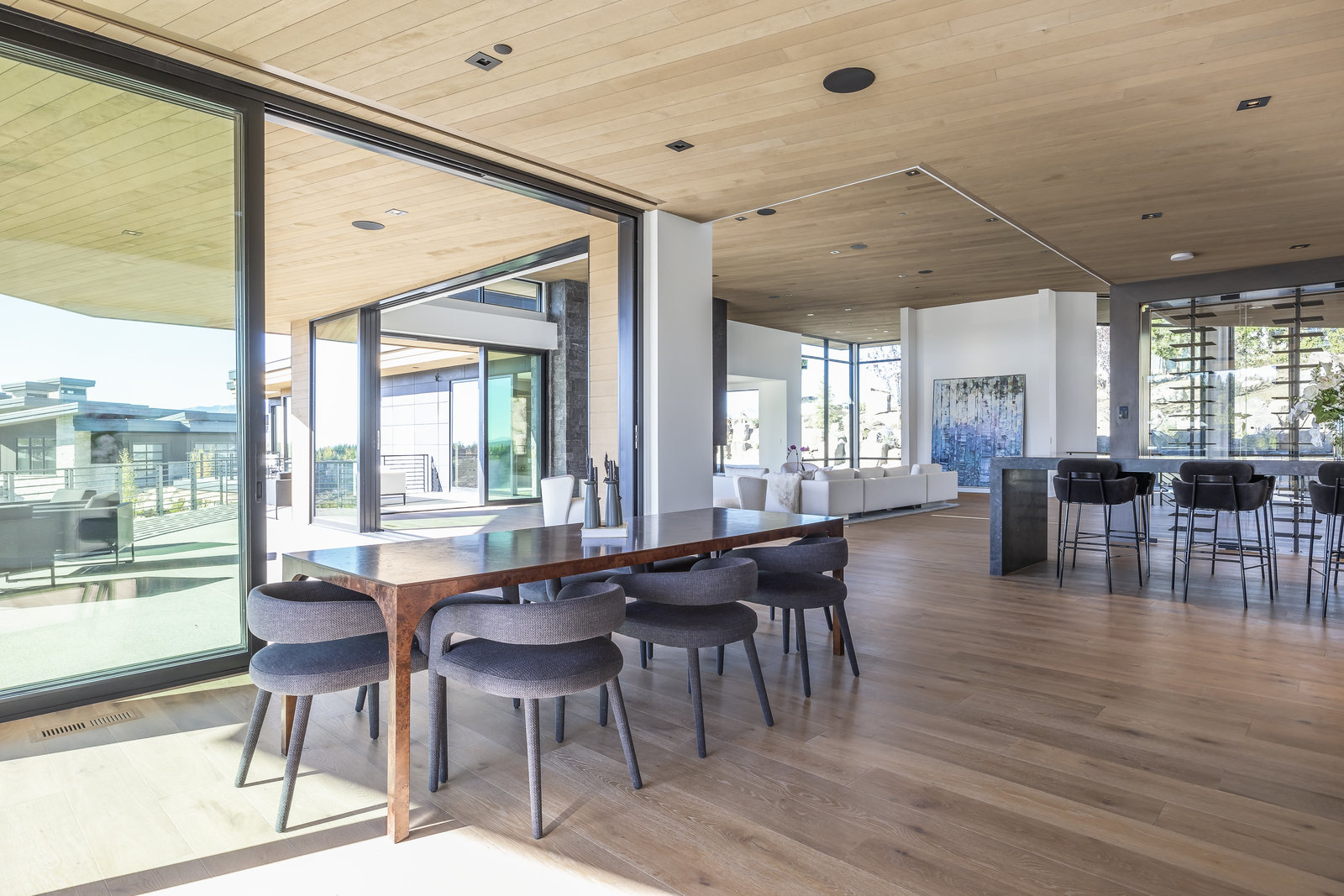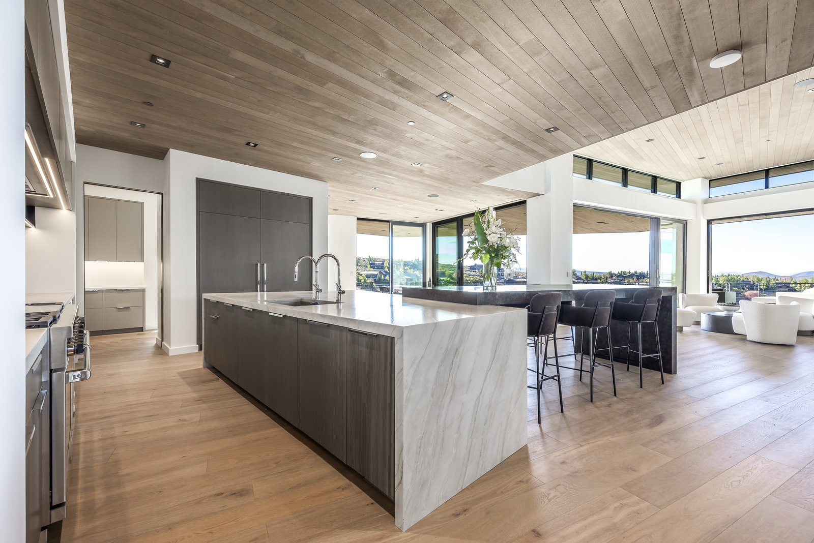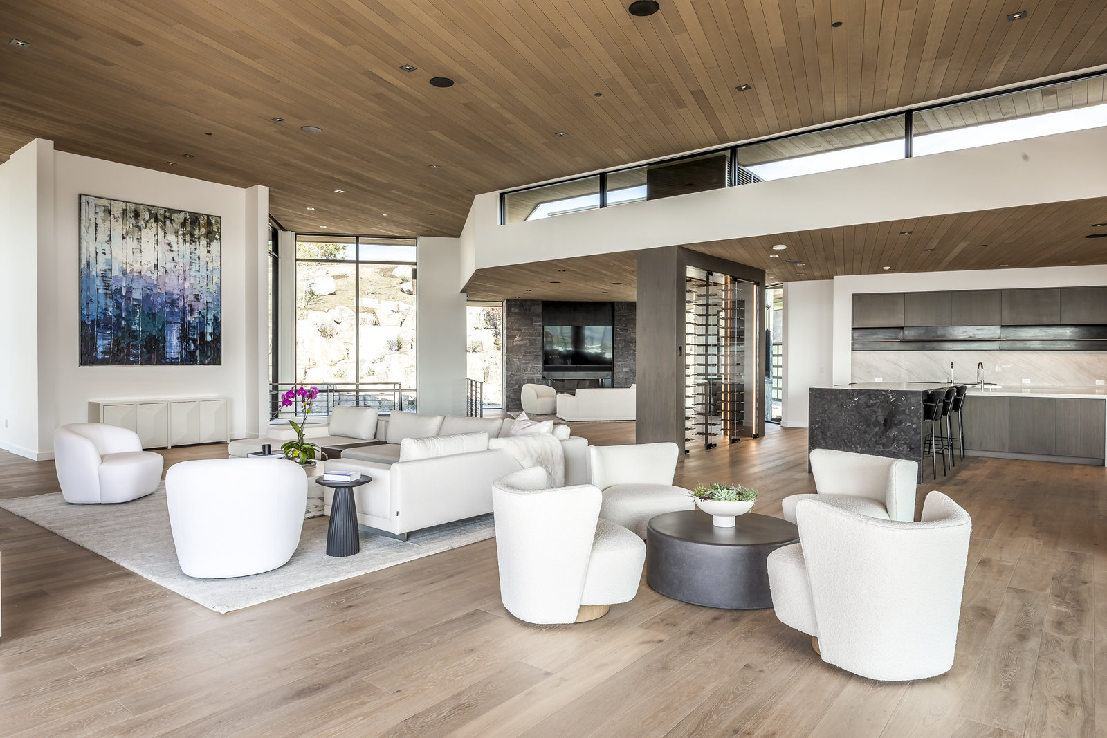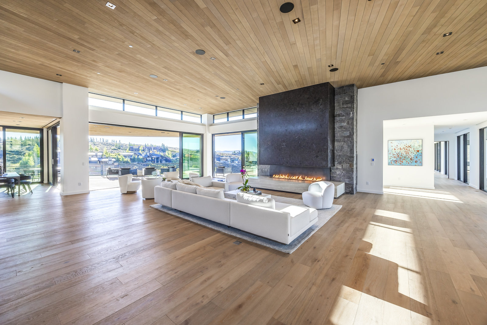 New Construction in the coveted gated Pinnacle within Promontory, this contemporary style home combines the sleek clean lines of wood, metal, stone, and glass with smart comforts. Golf Membership available. Focused on the spectacular mountain and golf course views, the interior and exterior living spaces are seamlessly blended by floor-to-ceiling windows and an expansive open floor plan on two levels with gracious decks. Thoughtful design details are evident from the white oak wood flooring to the custom ceiling treatments, lighting, cabinetry, and fixtures. Main-level living is optimized with a great room, a gourmet kitchen featuring Wolf and Sub Zero appliances, a butler's pantry, a statement Wine Wall, and a hearth room. Beyond the dedicated office, the primary bedroom is a private oasis with a spa bathroom, a large walk-in closet, and a secluded deck. Access the lower level via the custom single stringer staircase where the family room, game area, flex room, wet bar, and patio with a hot tub are convenient amenities to the four guest rooms with ensuite bathrooms and a custom bunk room. Radiant heated floors throughout, including the entire concrete driveway and spacious three-car garage with a large flex area. Designed by Michael Upwall and built by Germania Construction, this masterful home is nestled on one of the 64 homesites in Pinnacle, a multi-generational, private enclave within the gated community of Promontory. Each lot was curated to be exceptional in every way from amazing vistas to sublime topography. Pinnacle is a coveted neighborhood catering to aspiring buyers desiring seclusion and privacy within the amenity-rich Promontory neighborhoods, all with easy accessibility to the Salt Lake City airport and the dining, retail, and ski resorts of Park City. Skyhouse, a dedicated oasis to Pinnacle families will include a lap pool, hot tub, cold plunge, outdoor gathering area, catering kitchen, concierge services, and treatment rooms for private bookings. Construction to be completed in 2024.