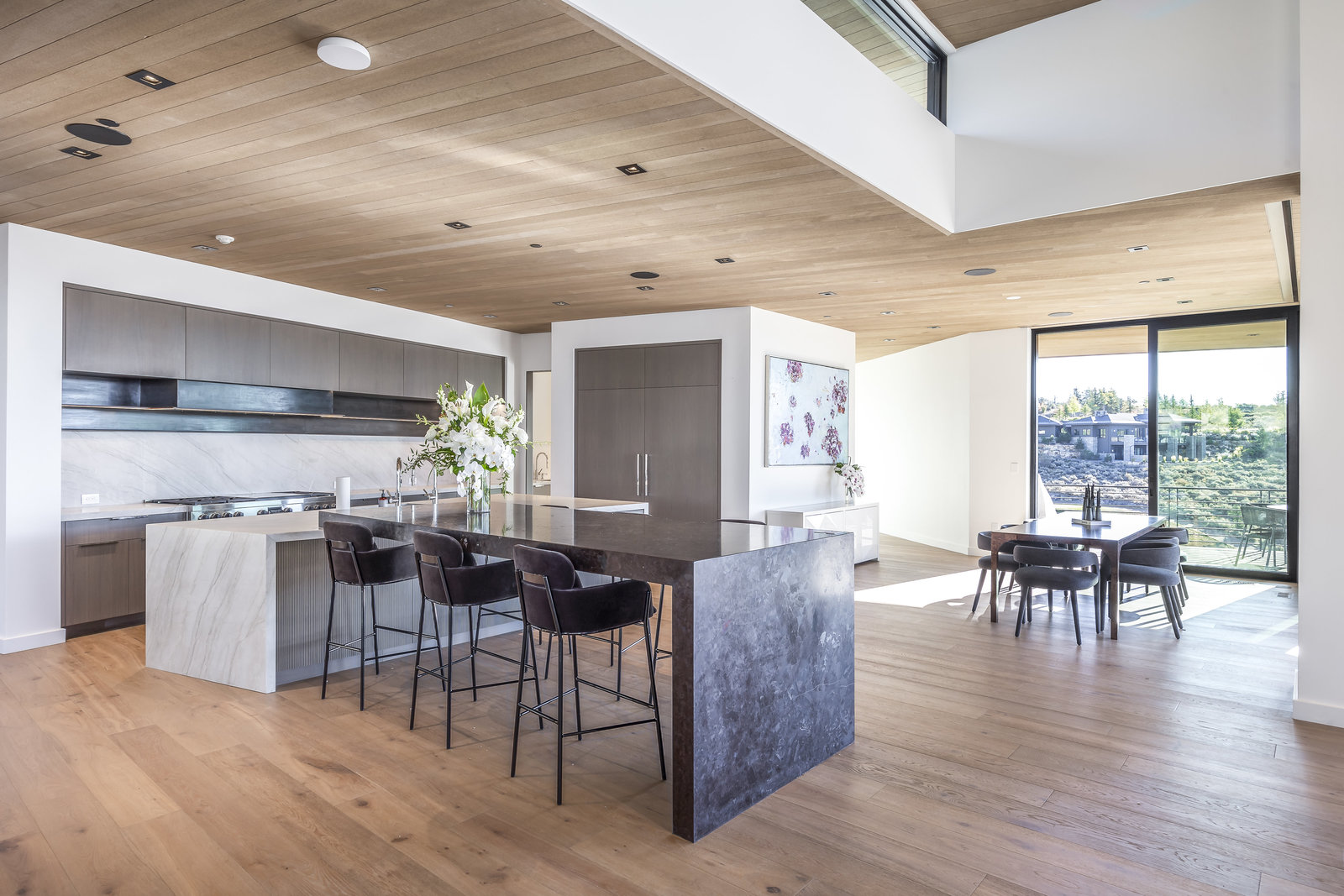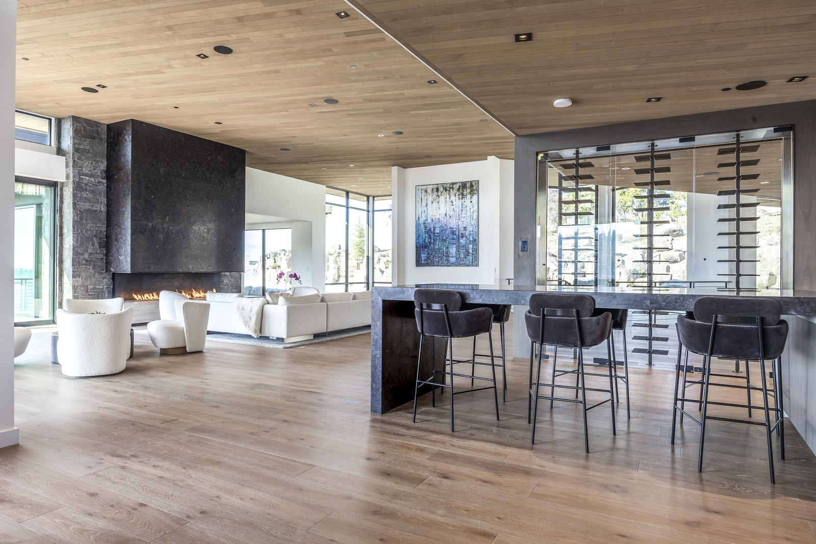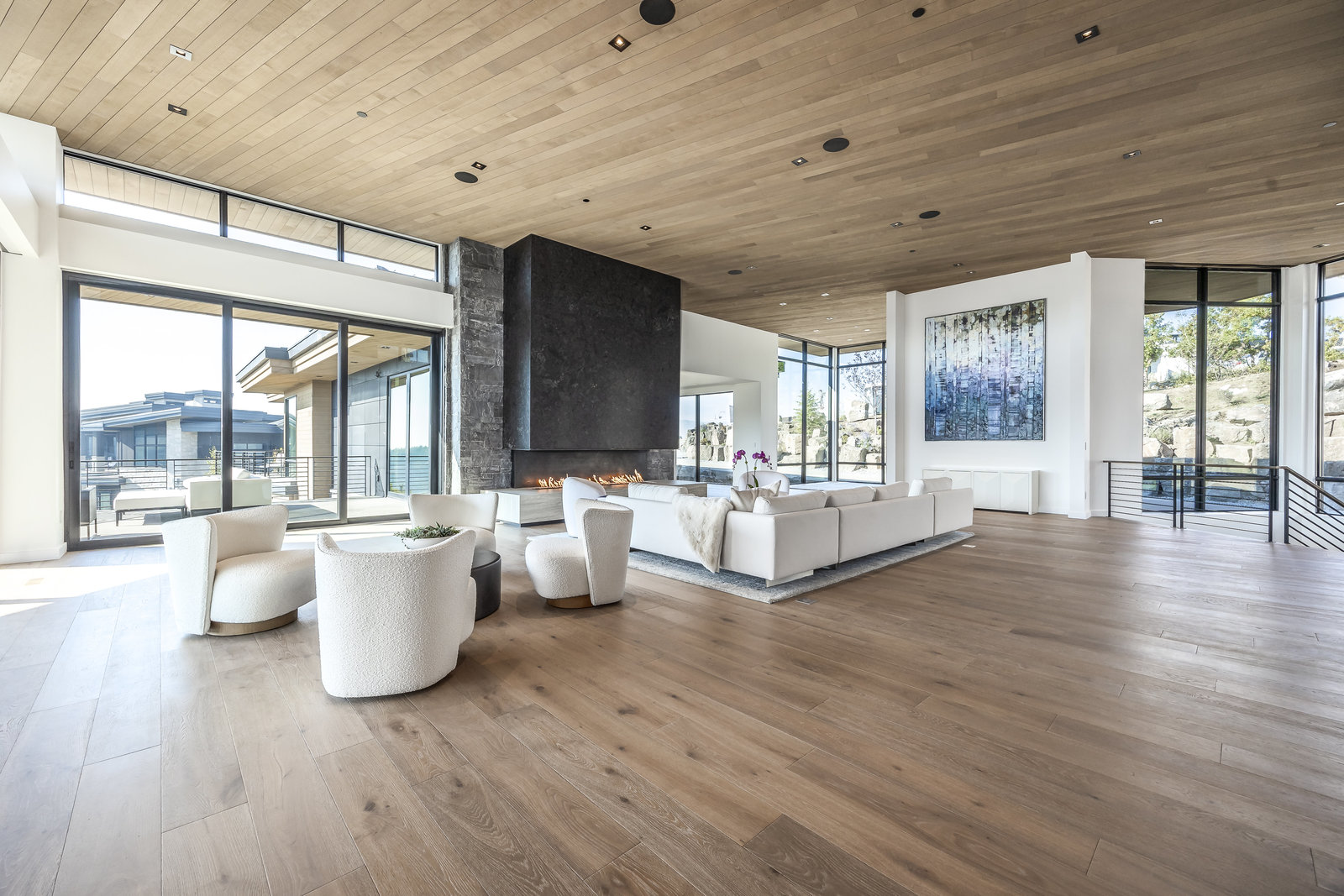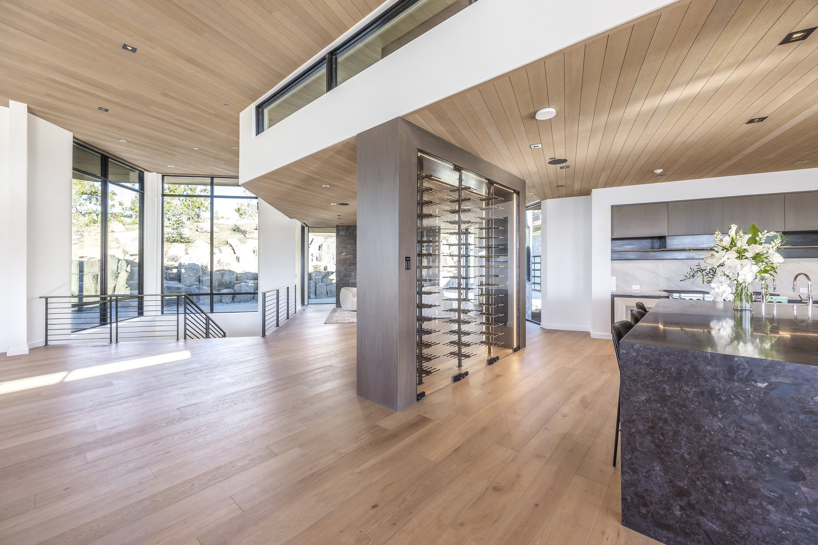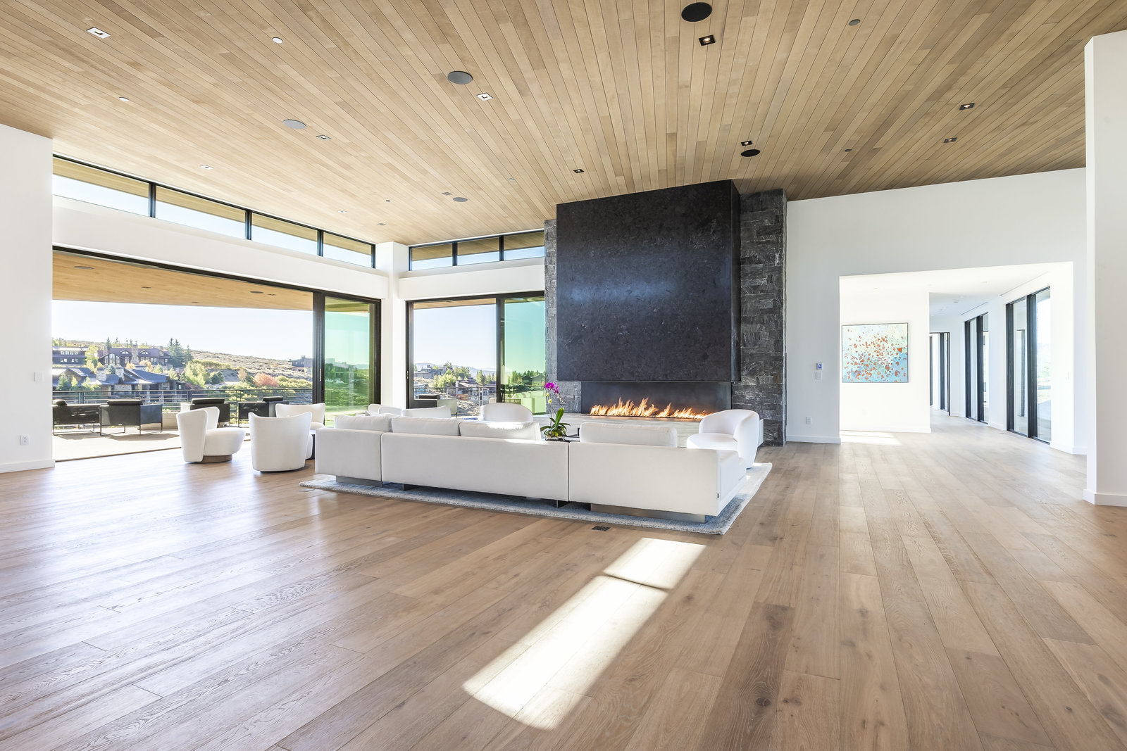 New Construction in the coveted gated Pinnacle within Promontory, this contemporary style home combines the sleek clean lines of wood, metal, stone, and glass with smart comforts. Golf Membership available. Focused on the spectacular mountain and golf course views, the interior and exterior living spaces are seamlessly blended by floor-to-ceiling windows and an expansive open floor plan on two levels with gracious decks. Thoughtful design details are evident from the white oak wood flooring to the custom ceiling treatments, lighting, cabinetry, and fixtures. Main-level living is optimized with a great room, a gourmet kitchen featuring Wolf and Sub Zero appliances, a butler's pantry, a statement Wine Wall, and a hearth room. Beyond the dedicated office, the primary bedroom is a private oasis with a spa bathroom, a large walk-in closet, and a secluded deck. Access the lower level via the custom single stringer staircase where the family room, game area, flex room, wet bar, and patio with a hot tub are convenient amenities to the four guest rooms with ensuite bathrooms and a custom bunk room. Radiant heated floors throughout, including the entire concrete driveway and spacious three-car garage with a large flex area. Designed by Michael Upwall and built by Germania Construction, this masterful home is nestled on one of the 64 homesites in Pinnacle, a multi-generational, private enclave within the gated community of Promontory. Each lot was curated to be exceptional in every way from amazing vistas to sublime topography. Pinnacle is a coveted neighborhood catering to aspiring buyers desiring seclusion and privacy within the amenity-rich Promontory neighborhoods, all with easy accessibility to the Salt Lake City airport and the dining, retail, and ski resorts of Park City. Skyhouse, a dedicated oasis to Pinnacle families will include a lap pool, hot tub, cold plunge, outdoor gathering area, catering kitchen, concierge services, and treatment rooms for private bookings. Construction to be completed in 2024.
