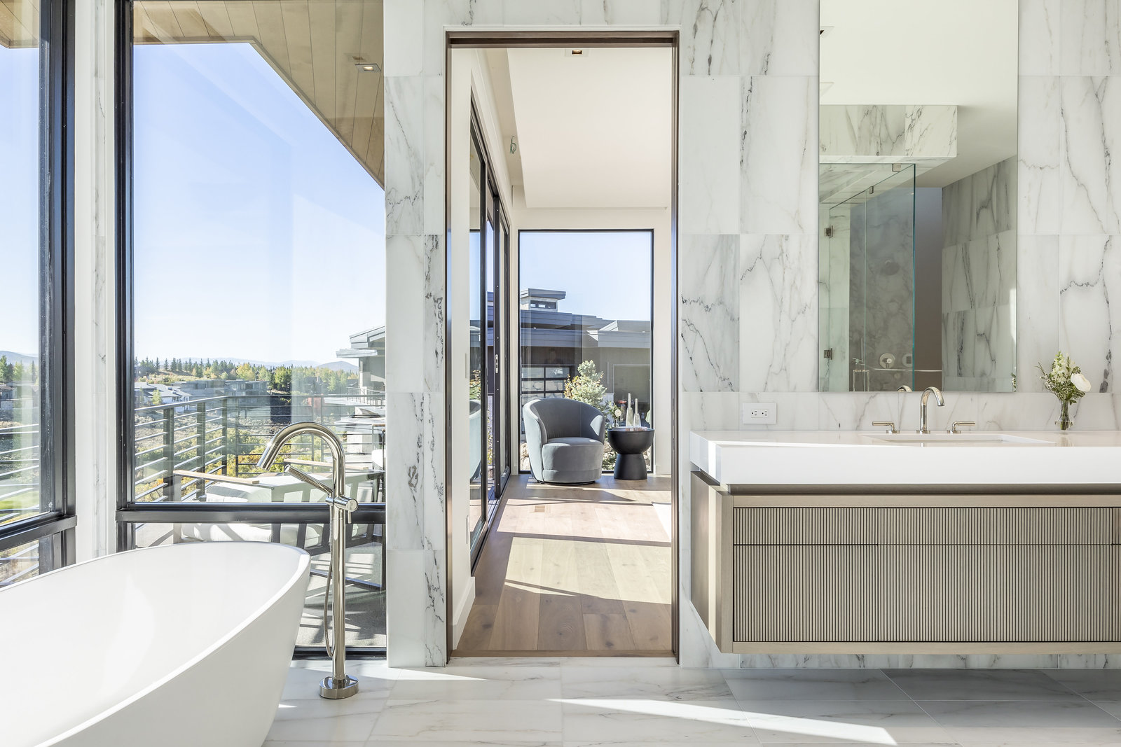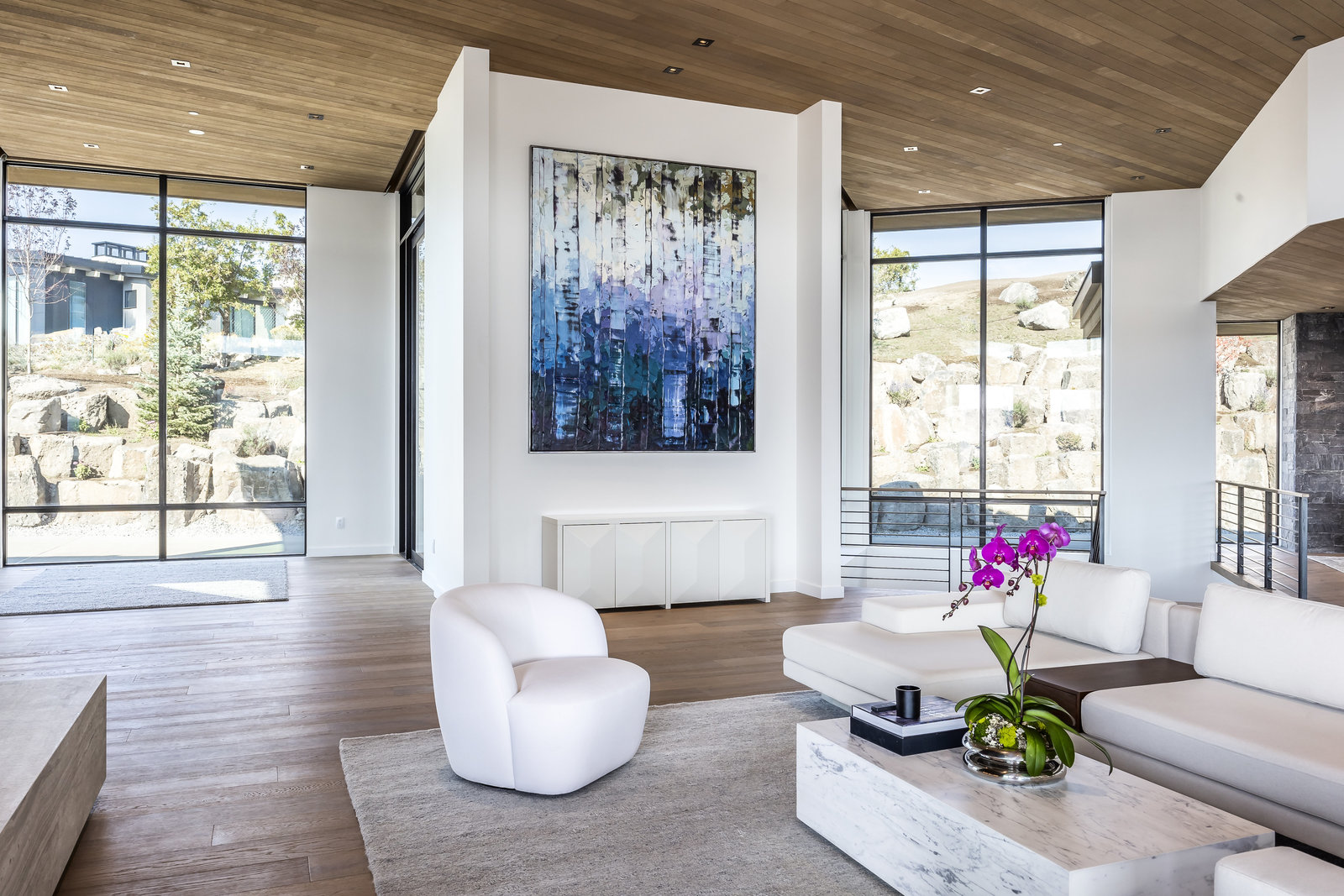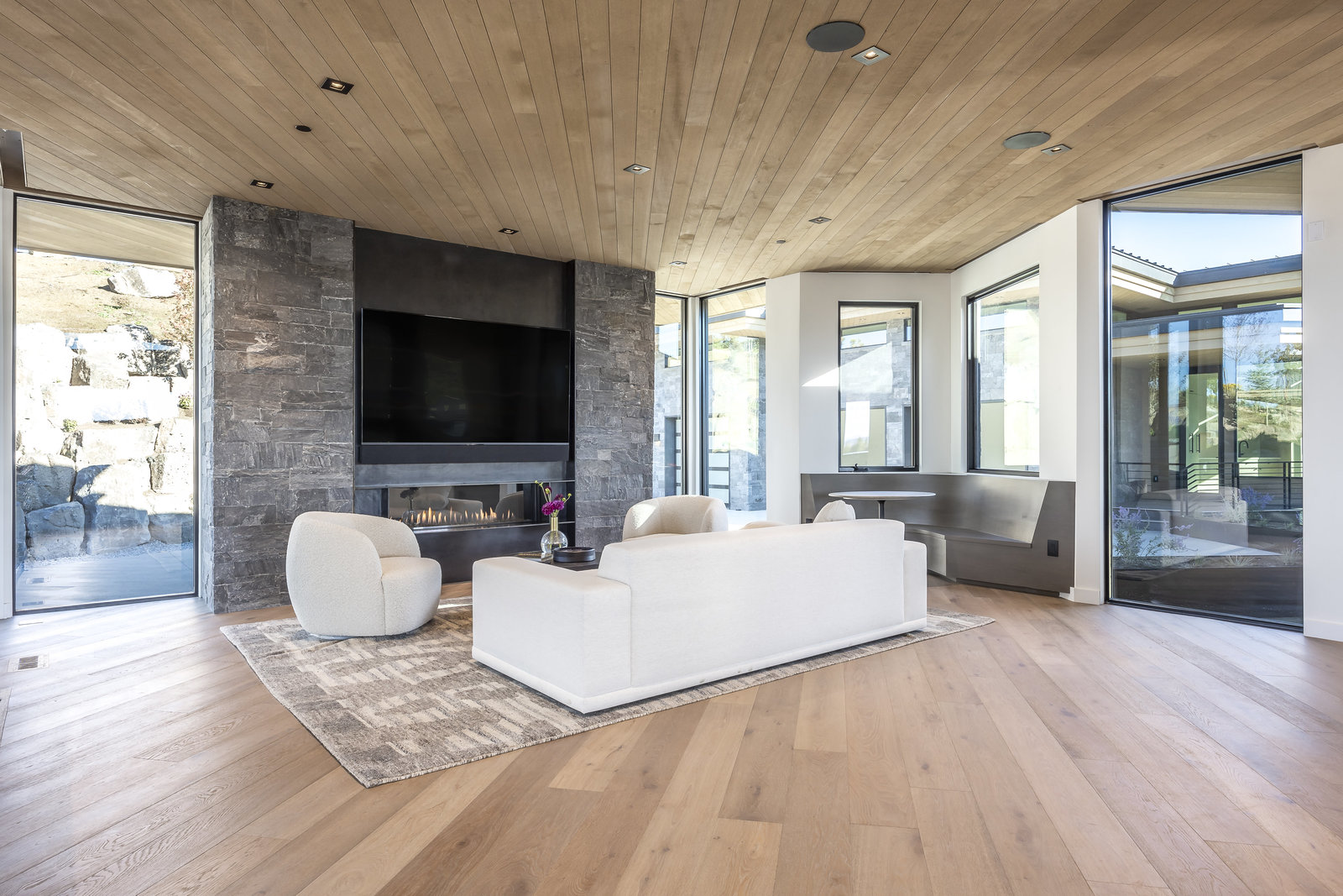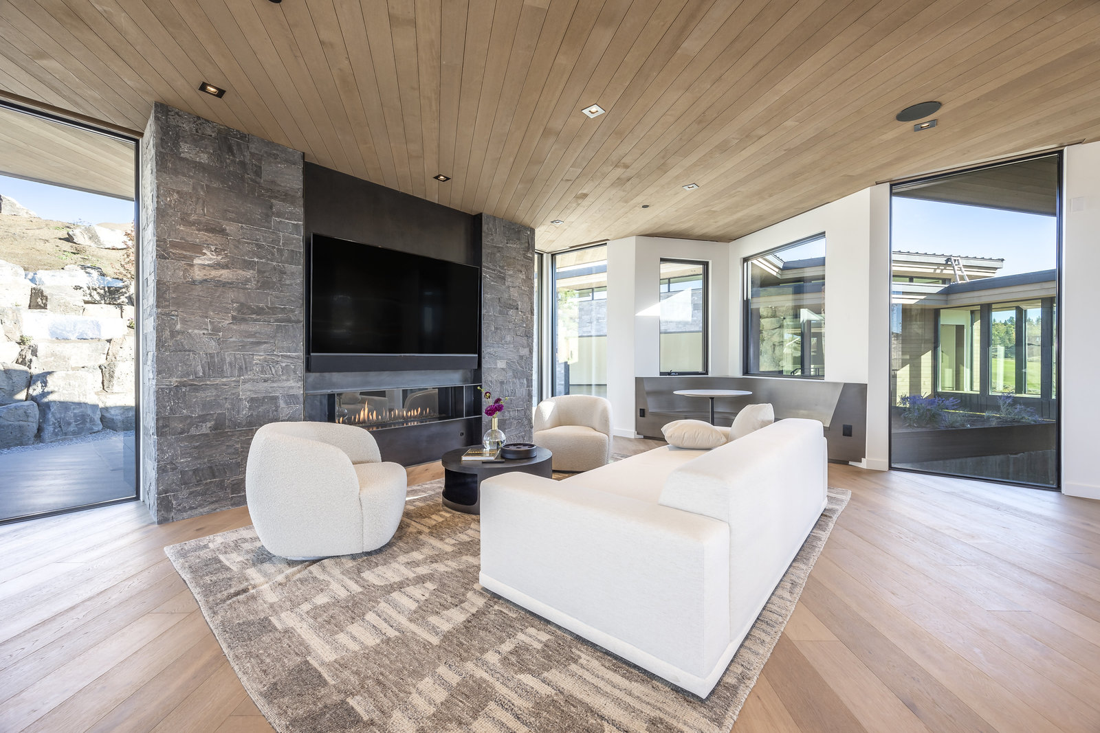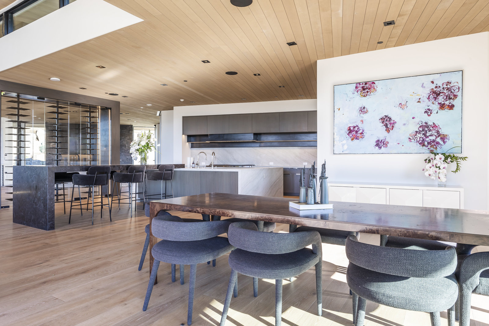 New Construction in the coveted gated Pinnacle within Promontory, this contemporary style home combines the sleek clean lines of wood, metal, stone, and glass with smart comforts. Golf Membership available. Focused on the spectacular mountain and golf course views, the interior and exterior living spaces are seamlessly blended by floor-to-ceiling windows and an expansive open floor plan on two levels with gracious decks. Thoughtful design details are evident from the white oak wood flooring to the custom ceiling treatments, lighting, cabinetry, and fixtures. Main-level living is optimized with a great room, a gourmet kitchen featuring Wolf and Sub Zero appliances, a butler's pantry, a statement Wine Wall, and a hearth room. Beyond the dedicated office, the primary bedroom is a private oasis with a spa bathroom, a large walk-in closet, and a secluded deck. Access the lower level via the custom single stringer staircase where the family room, game area, flex room, wet bar, and patio with a hot tub are convenient amenities to the four guest rooms with ensuite bathrooms and a custom bunk room. Radiant heated floors throughout, including the entire concrete driveway and spacious three-car garage with a large flex area. Designed by Michael Upwall and built by Germania Construction, this masterful home is nestled on one of the 64 homesites in Pinnacle, a multi-generational, private enclave within the gated community of Promontory. Each lot was curated to be exceptional in every way from amazing vistas to sublime topography. Pinnacle is a coveted neighborhood catering to aspiring buyers desiring seclusion and privacy within the amenity-rich Promontory neighborhoods, all with easy accessibility to the Salt Lake City airport and the dining, retail, and ski resorts of Park City. Skyhouse, a dedicated oasis to Pinnacle families will include a lap pool, hot tub, cold plunge, outdoor gathering area, catering kitchen, concierge services, and treatment rooms for private bookings. Construction to be completed in 2024.