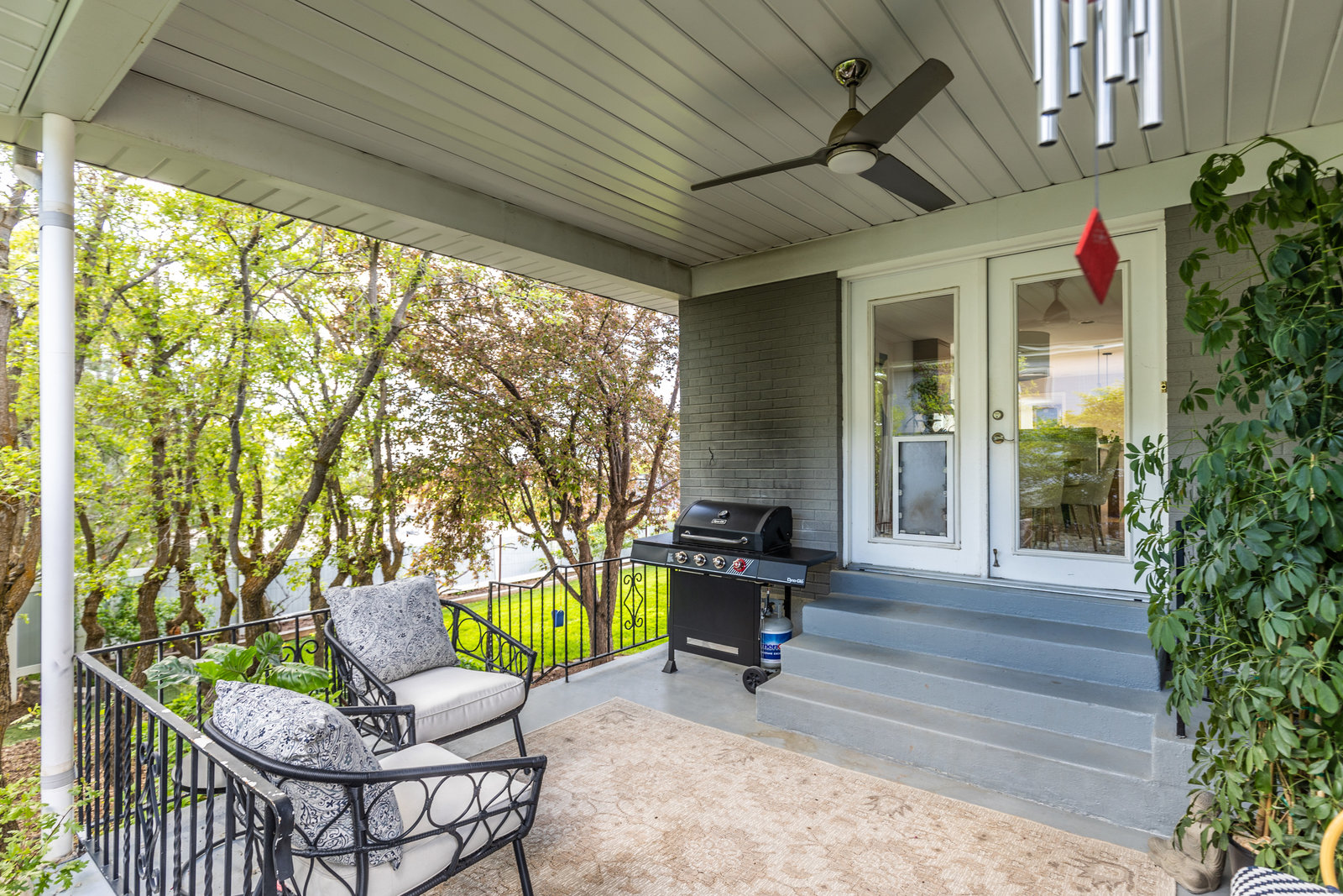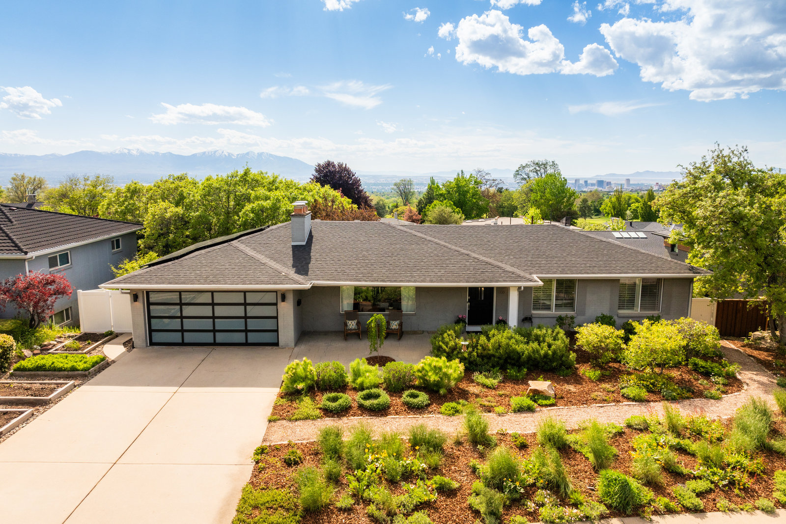 Immerse yourself in the amazing views of the Great Salt Lake and valley while enjoying dinner at home in this stunning residence! Situated in the prestigious St. Mary's / Oak Hills neighborhood, this home offers unparalleled access to scenic trails, urban amenities, and sweeping views of Antelope Island and majestic mountains from the kitchen and back patio. The heart of this remarkable home is its beautifully updated chef's kitchen, meticulously remodeled to blend style and functionality. Whether you're refining your culinary skills or savoring a leisurely meal, this culinary haven promises an unmatched experience. Retreat to the primary suite, a versatile space featuring breathtaking sunset views from the balcony overlooking Salt Lake Valley. It offers his and hers closets and an adjacent work space, exercise, or nursery room with ample potential for expansion. Outside, the front yard boasts mature native plants requiring minimal upkeep, with a sweeping patio to enjoy the sunrise over adjacent hilltops. Outside, the front yard boasts a butterfly and hummingbird haven with native flowering plants requiring minimal upkeep. Enjoy the sunrise over adjacent hilltops from the sweeping front patio. Raised vegetable beds line the side, with a walkway and additional patio leading toward the gated backyard oasis. The fully finished terrace level offers copious space for relaxation and entertainment, walking out to a level grassy expanse large enough for a volleyball match or a future pool addition. Mature flora line the property with abundant apple and pear trees, two grape varietals, raspberries, blackberries, and a shady oak grove. Equipped with paid-off solar panels, this home ensures minimal electricity costs, with the current owners spending less than $10 on their electric bill last month. Experience the perfect blend of luxury, functionality, and natural beauty in this extraordinary residence. Enjoy easy access to downtown, University and hospital systems, nearby mountains for outdoor adventures, plus renowned ski resorts just a short drive away. Experience the perfect blend of urban convenience and natural beauty in this remarkable residence.