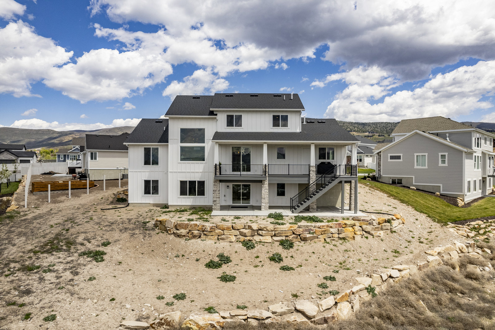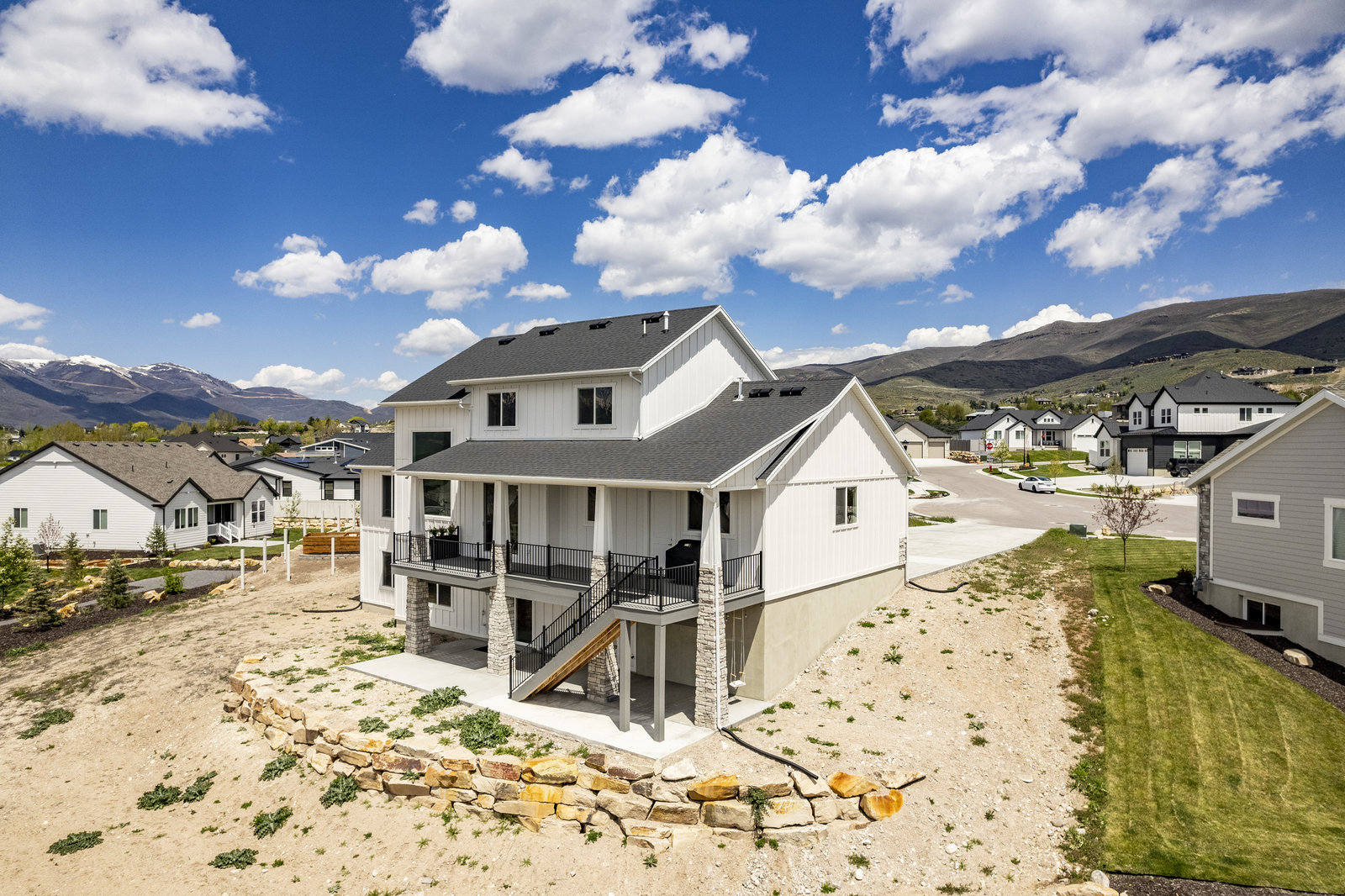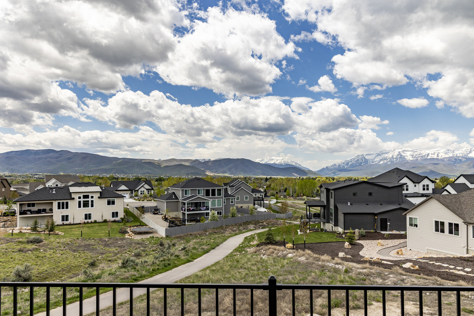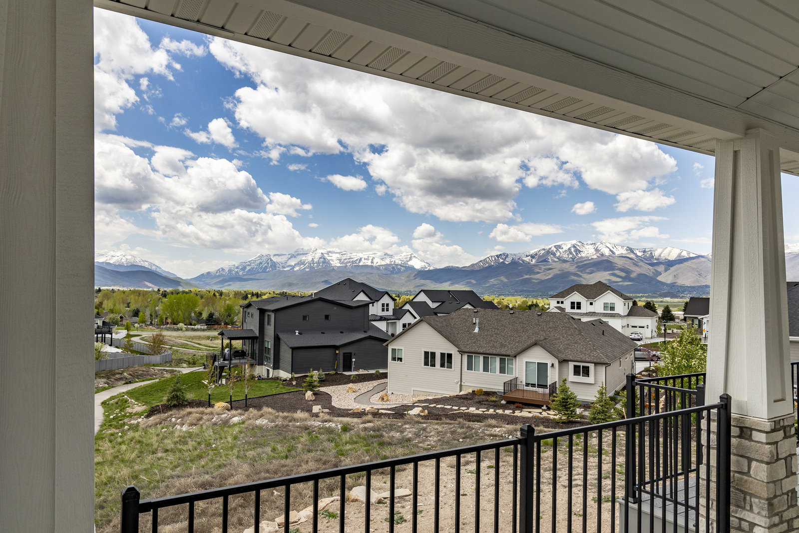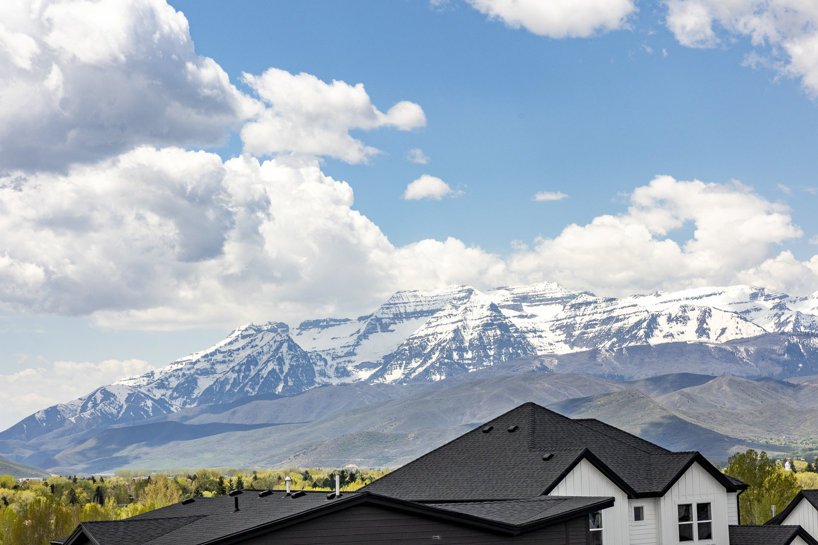 Welcome to your sanctuary in Heber, tucked away in a peaceful cul-de-sac. From the moment you step inside, you'll be greeted by panoramic views of Mount Timpanogos, visible from every window of this magnificent home. The main level master bedroom offers a sanctuary of its own, where you can wake up to the sight of the sun kissing the snow-capped peaks. As you start your day, the views continue to inspire and uplift, creating a serene backdrop for your daily routine. Step into the chef's kitchen, featuring sleek waterfall quartz countertops, a spacious butler's pantry, and high-end Bertazzoni appliances. Whether you're cooking breakfast or preparing a gourmet dinner, you'll find joy in the natural beauty that surrounds you. Venture downstairs to the fully finished basement, where an additional master bedroom is available for your guests. Enjoy a giant game/family room or the walkout patio that invites you to unwind amidst the tranquility of the landscape. From there, walk up the stairs where the expansive deck beckons you to enjoy outdoor dining and entertaining while soaking in spectacular sunsets over Mount Timpanogos. Step outside your back door and onto the neighborhood walking/biking trails, where you can explore the beauty of the area at your leisure. With an oversized 3-car garage providing ample storage and parking space, this home offers both luxury and practicality in equal measure. From high-end finishes to walk-in closets and a large laundry room with a sink (additional laundry hookups upstairs), every detail has been thoughtfully designed to enhance your lifestyle. Only 10 min from world class skiing, including Deer Valley which will be the largest ski resort in the country after the expansion opens for the 2024/25 season. Don't miss the opportunity to make this Heber retreat your own – a place where you can truly experience the magic of mountain living.