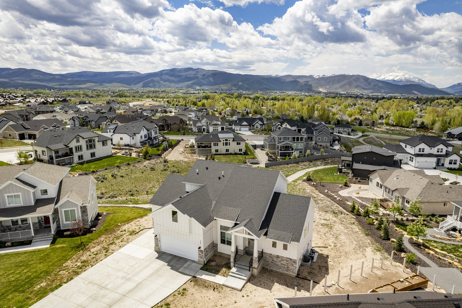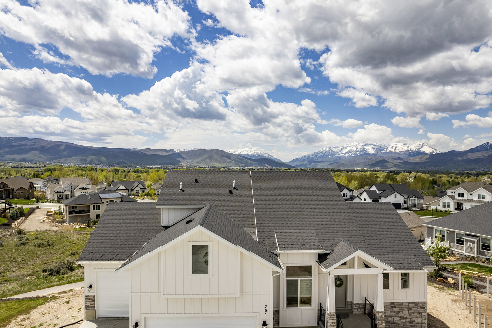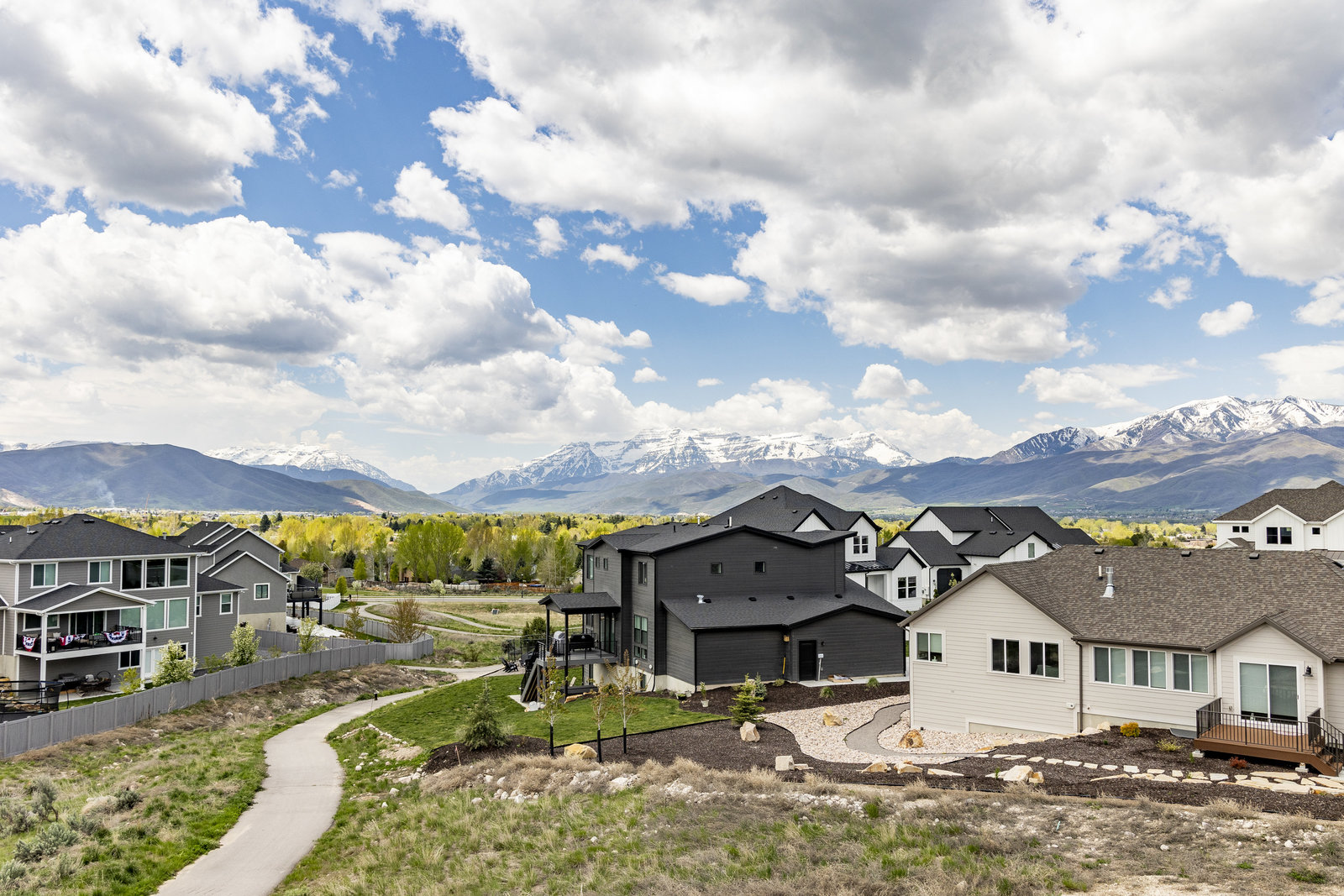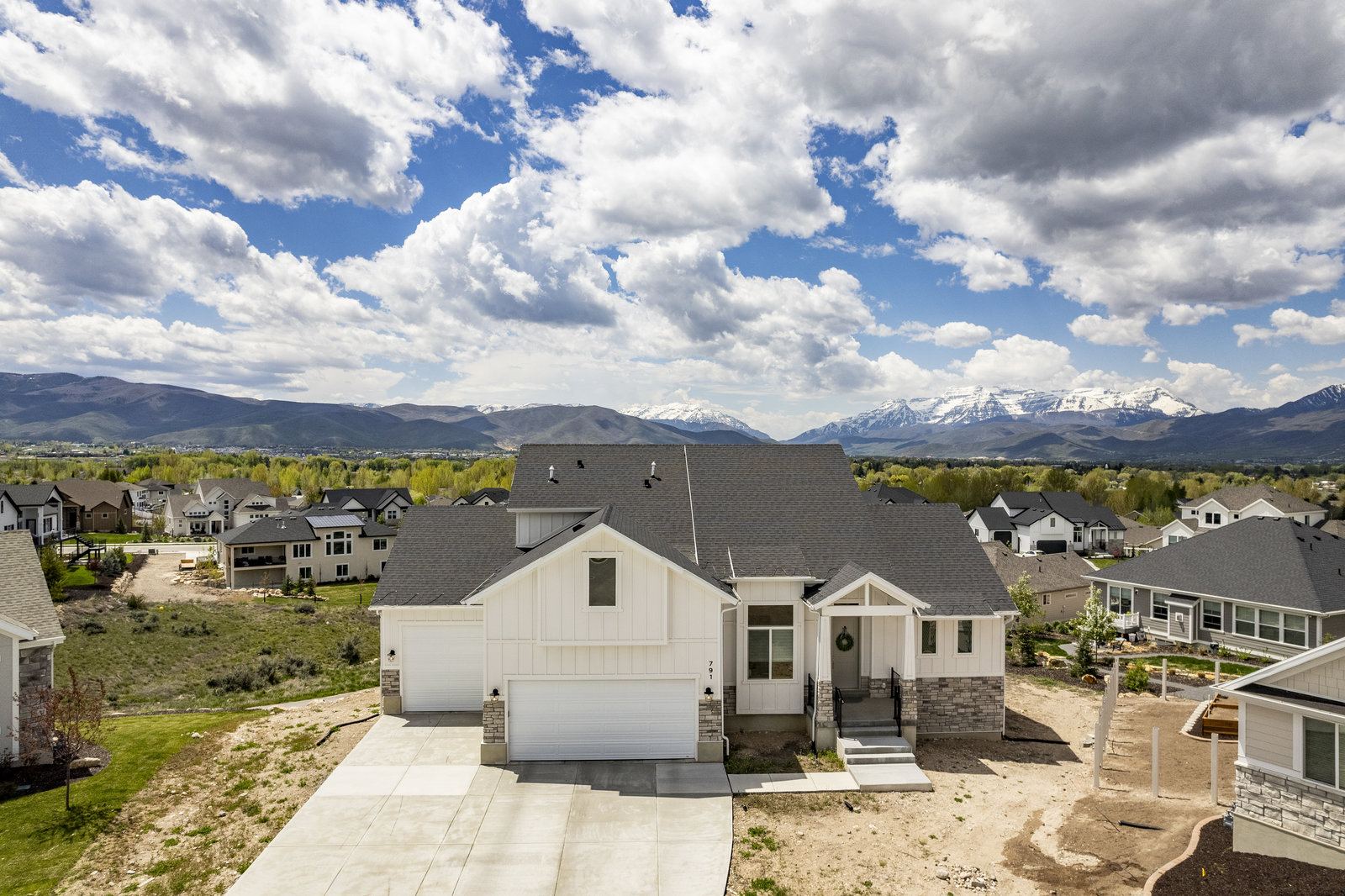 Welcome to your sanctuary in Heber, tucked away in a peaceful cul-de-sac. From the moment you step inside, you'll be greeted by panoramic views of Mount Timpanogos, visible from every window of this magnificent home. The main level master bedroom offers a sanctuary of its own, where you can wake up to the sight of the sun kissing the snow-capped peaks. As you start your day, the views continue to inspire and uplift, creating a serene backdrop for your daily routine. Step into the chef's kitchen, featuring sleek waterfall quartz countertops, a spacious butler's pantry, and high-end Bertazzoni appliances. Whether you're cooking breakfast or preparing a gourmet dinner, you'll find joy in the natural beauty that surrounds you. Venture downstairs to the fully finished basement, where an additional master bedroom is available for your guests. Enjoy a giant game/family room or the walkout patio that invites you to unwind amidst the tranquility of the landscape. From there, walk up the stairs where the expansive deck beckons you to enjoy outdoor dining and entertaining while soaking in spectacular sunsets over Mount Timpanogos. Step outside your back door and onto the neighborhood walking/biking trails, where you can explore the beauty of the area at your leisure. With an oversized 3-car garage providing ample storage and parking space, this home offers both luxury and practicality in equal measure. From high-end finishes to walk-in closets and a large laundry room with a sink (additional laundry hookups upstairs), every detail has been thoughtfully designed to enhance your lifestyle. Only 10 min from world class skiing, including Deer Valley which will be the largest ski resort in the country after the expansion opens for the 2024/25 season. Don't miss the opportunity to make this Heber retreat your own – a place where you can truly experience the magic of mountain living.