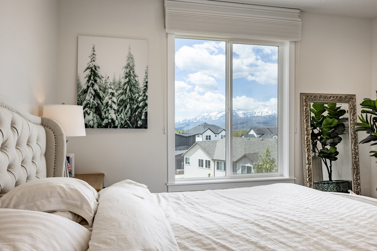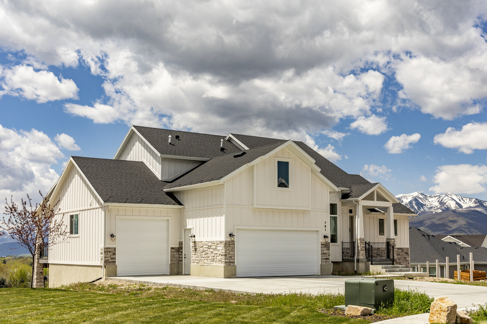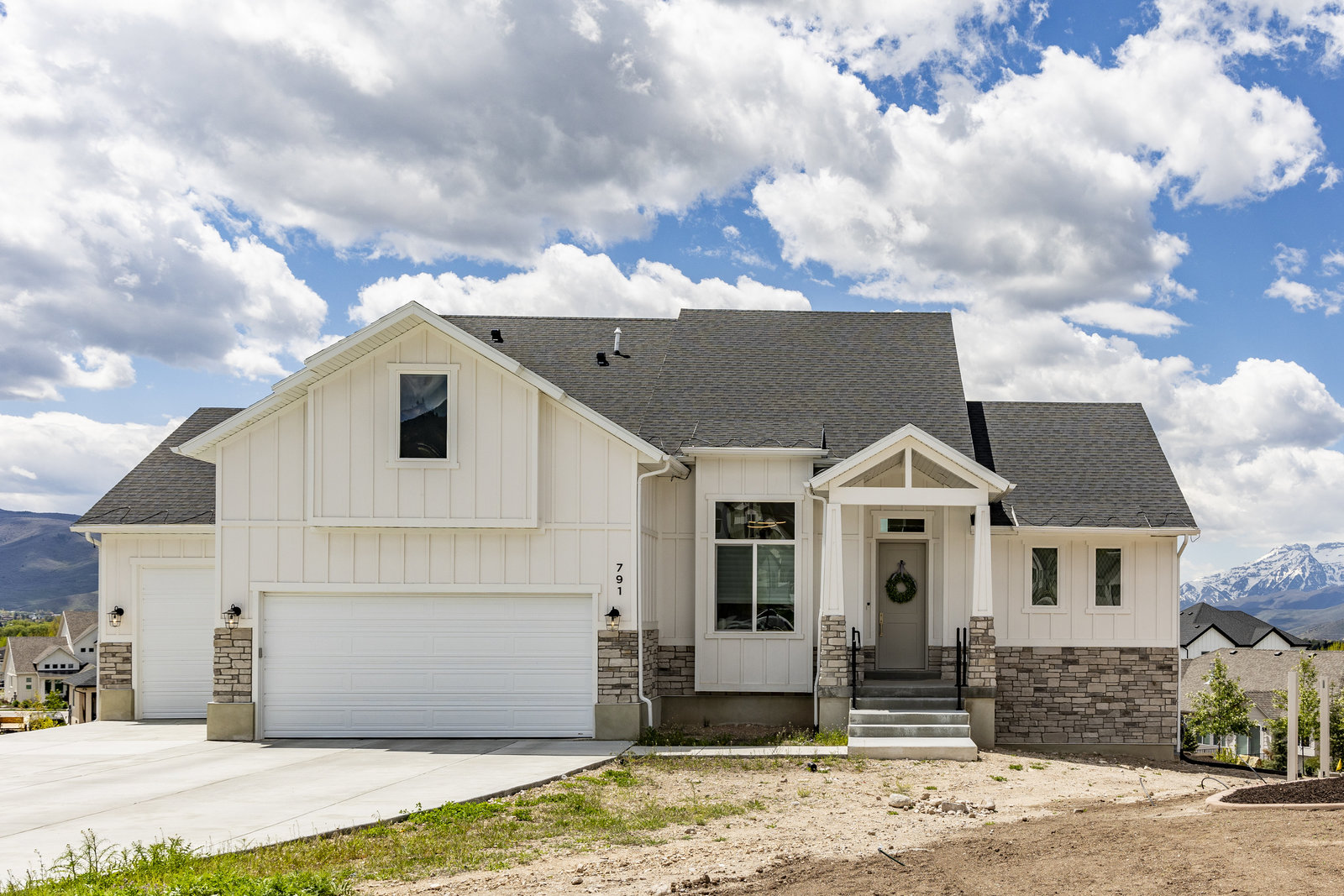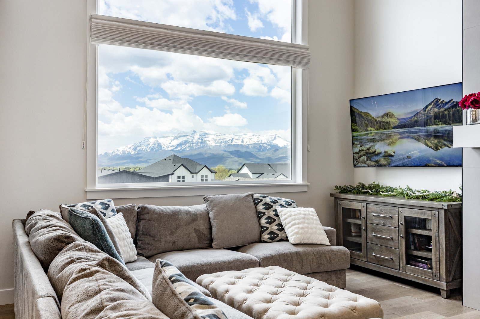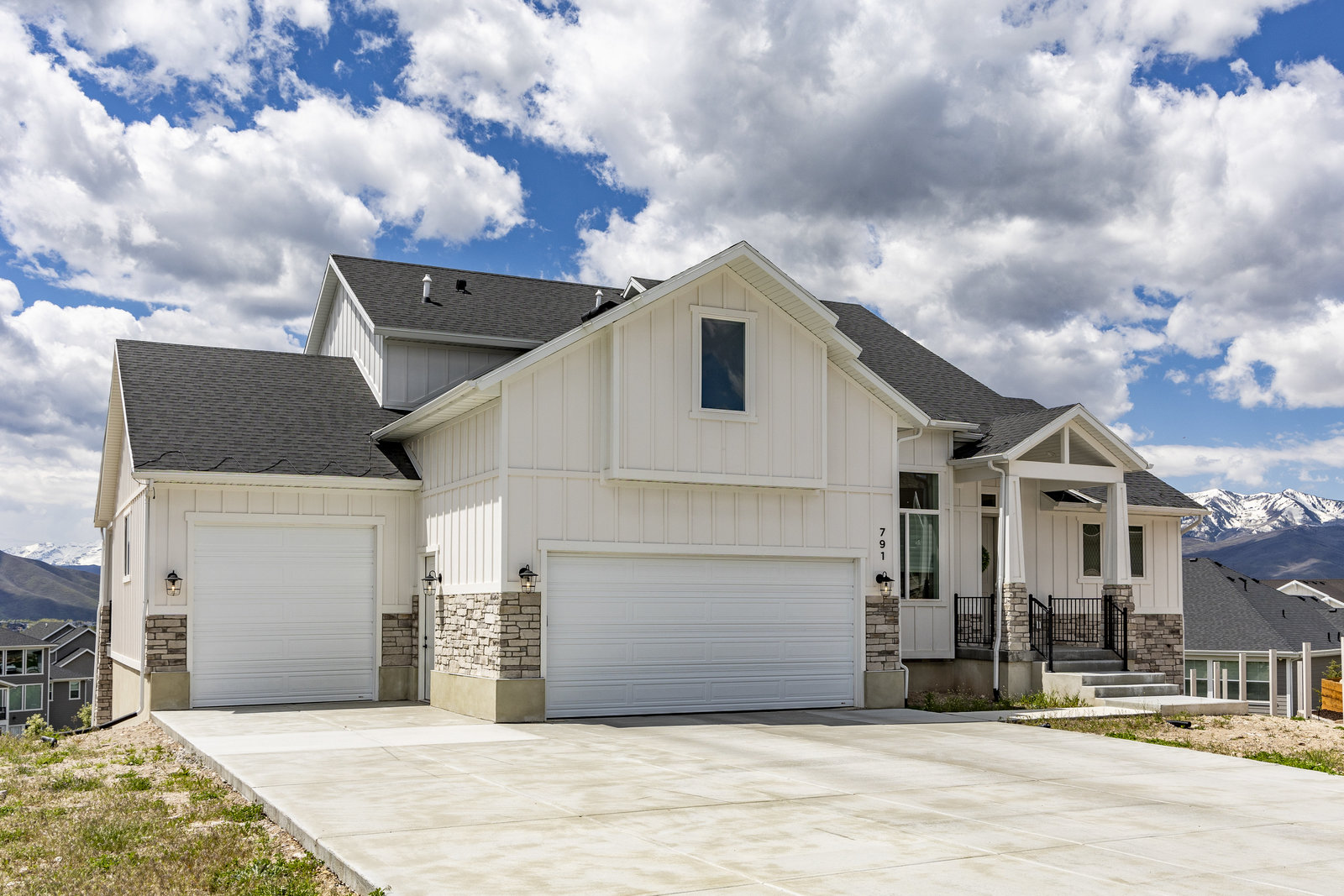 Welcome to your sanctuary in Heber, tucked away in a peaceful cul-de-sac. From the moment you step inside, you'll be greeted by panoramic views of Mount Timpanogos, visible from every window of this magnificent home. The main level master bedroom offers a sanctuary of its own, where you can wake up to the sight of the sun kissing the snow-capped peaks. As you start your day, the views continue to inspire and uplift, creating a serene backdrop for your daily routine. Step into the chef's kitchen, featuring sleek waterfall quartz countertops, a spacious butler's pantry, and high-end Bertazzoni appliances. Whether you're cooking breakfast or preparing a gourmet dinner, you'll find joy in the natural beauty that surrounds you. Venture downstairs to the fully finished basement, where an additional master bedroom is available for your guests. Enjoy a giant game/family room or the walkout patio that invites you to unwind amidst the tranquility of the landscape. From there, walk up the stairs where the expansive deck beckons you to enjoy outdoor dining and entertaining while soaking in spectacular sunsets over Mount Timpanogos. Step outside your back door and onto the neighborhood walking/biking trails, where you can explore the beauty of the area at your leisure. With an oversized 3-car garage providing ample storage and parking space, this home offers both luxury and practicality in equal measure. From high-end finishes to walk-in closets and a large laundry room with a sink (additional laundry hookups upstairs), every detail has been thoughtfully designed to enhance your lifestyle. Only 10 min from world class skiing, including Deer Valley which will be the largest ski resort in the country after the expansion opens for the 2024/25 season. Don't miss the opportunity to make this Heber retreat your own – a place where you can truly experience the magic of mountain living.
