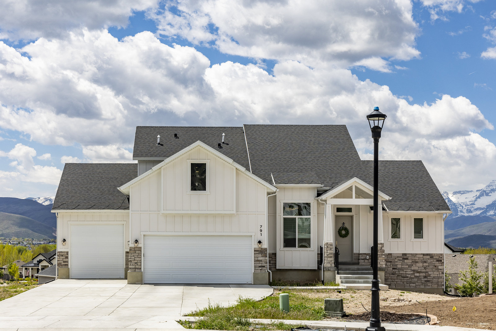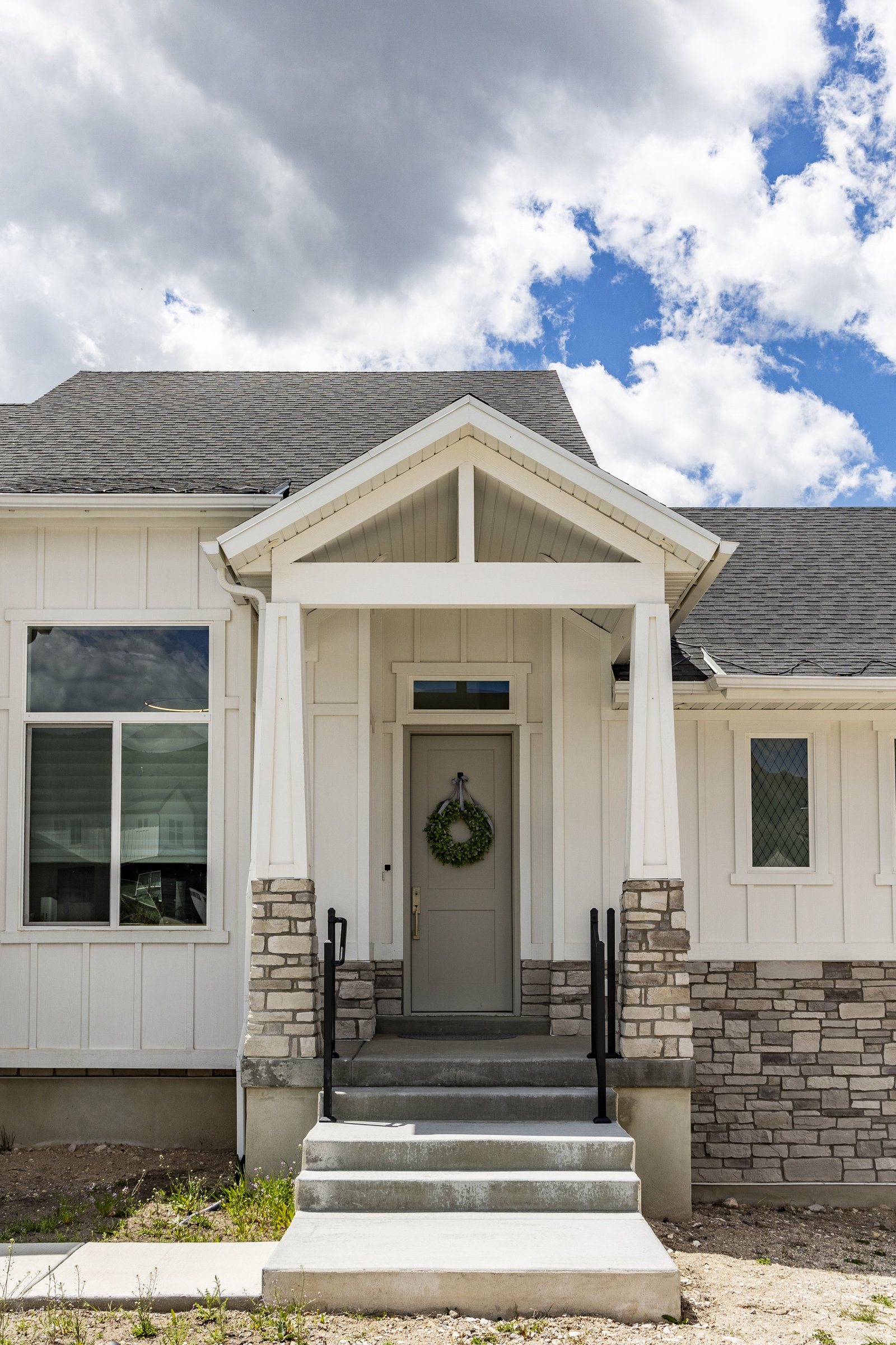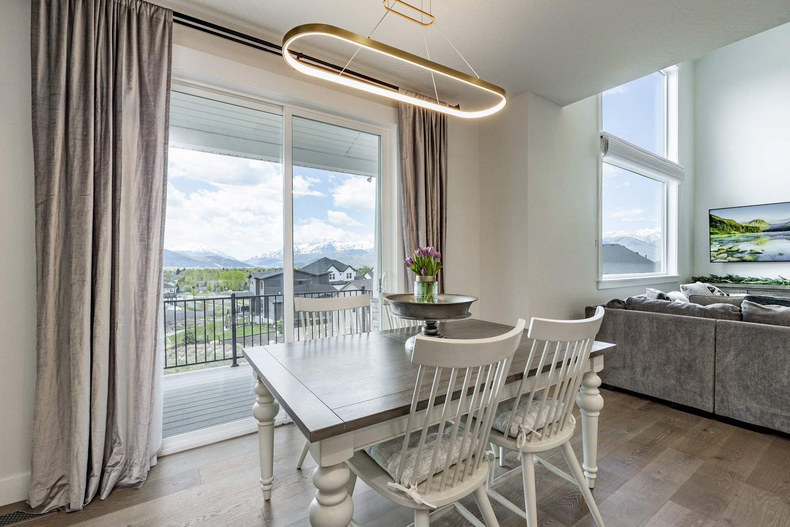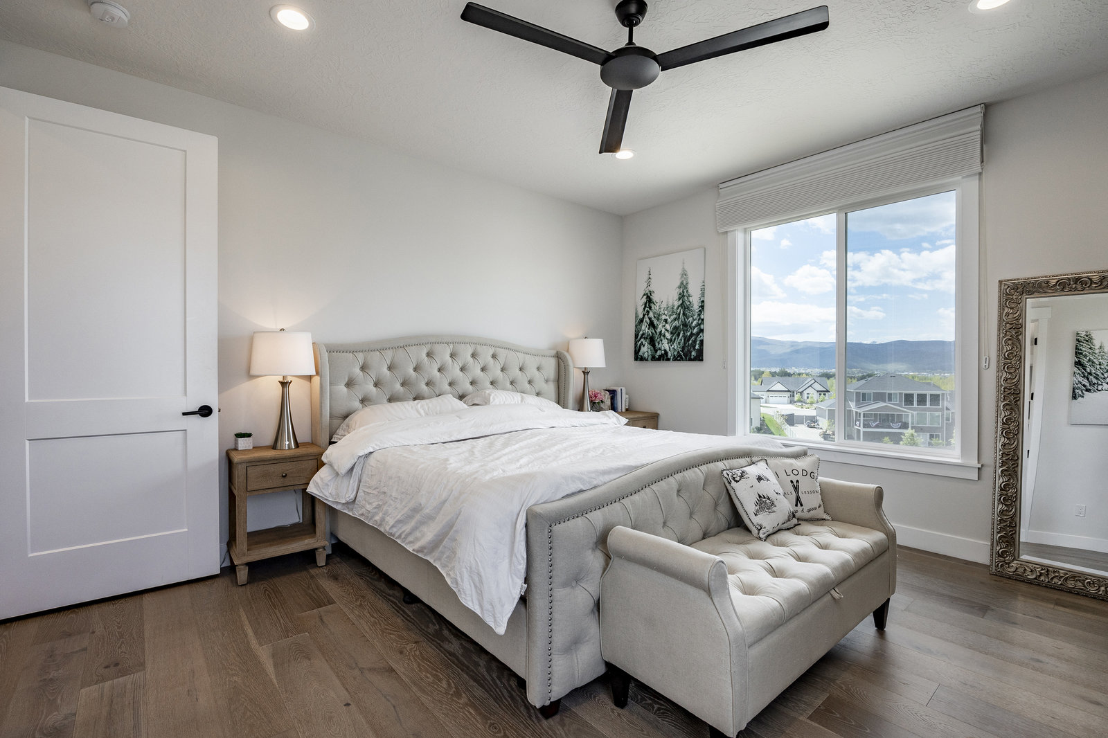 Welcome to your sanctuary in Heber, tucked away in a peaceful cul-de-sac. From the moment you step inside, you'll be greeted by panoramic views of Mount Timpanogos, visible from every window of this magnificent home. The main level master bedroom offers a sanctuary of its own, where you can wake up to the sight of the sun kissing the snow-capped peaks. As you start your day, the views continue to inspire and uplift, creating a serene backdrop for your daily routine. Step into the chef's kitchen, featuring sleek waterfall quartz countertops, a spacious butler's pantry, and high-end Bertazzoni appliances. Whether you're cooking breakfast or preparing a gourmet dinner, you'll find joy in the natural beauty that surrounds you. Venture downstairs to the fully finished basement, where an additional master bedroom is available for your guests. Enjoy a giant game/family room or the walkout patio that invites you to unwind amidst the tranquility of the landscape. From there, walk up the stairs where the expansive deck beckons you to enjoy outdoor dining and entertaining while soaking in spectacular sunsets over Mount Timpanogos. Step outside your back door and onto the neighborhood walking/biking trails, where you can explore the beauty of the area at your leisure. With an oversized 3-car garage providing ample storage and parking space, this home offers both luxury and practicality in equal measure. From high-end finishes to walk-in closets and a large laundry room with a sink (additional laundry hookups upstairs), every detail has been thoughtfully designed to enhance your lifestyle. Only 10 min from world class skiing, including Deer Valley which will be the largest ski resort in the country after the expansion opens for the 2024/25 season. Don't miss the opportunity to make this Heber retreat your own – a place where you can truly experience the magic of mountain living.