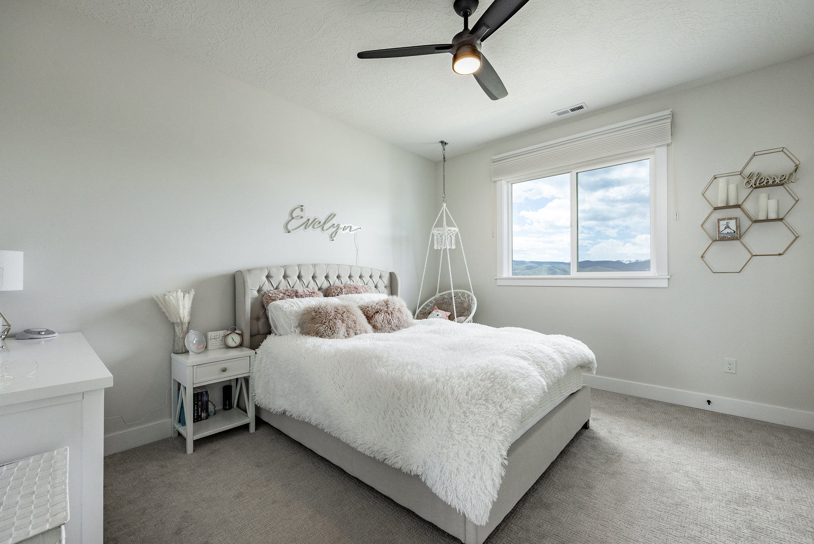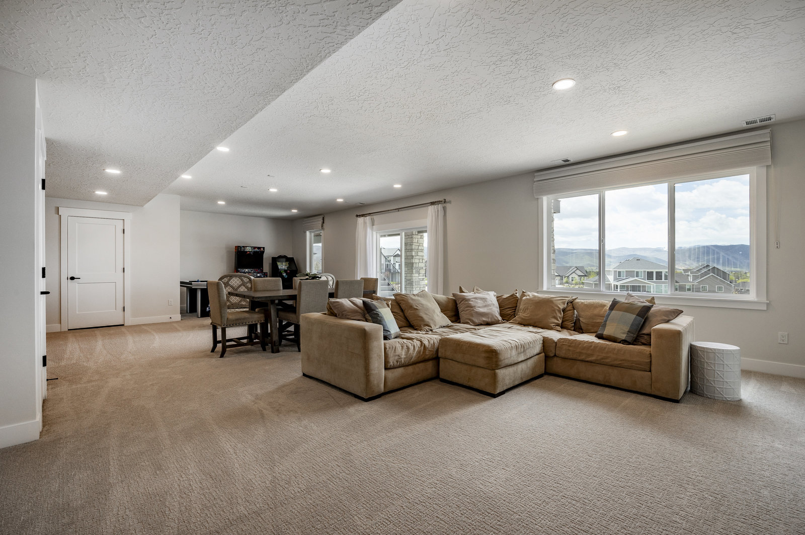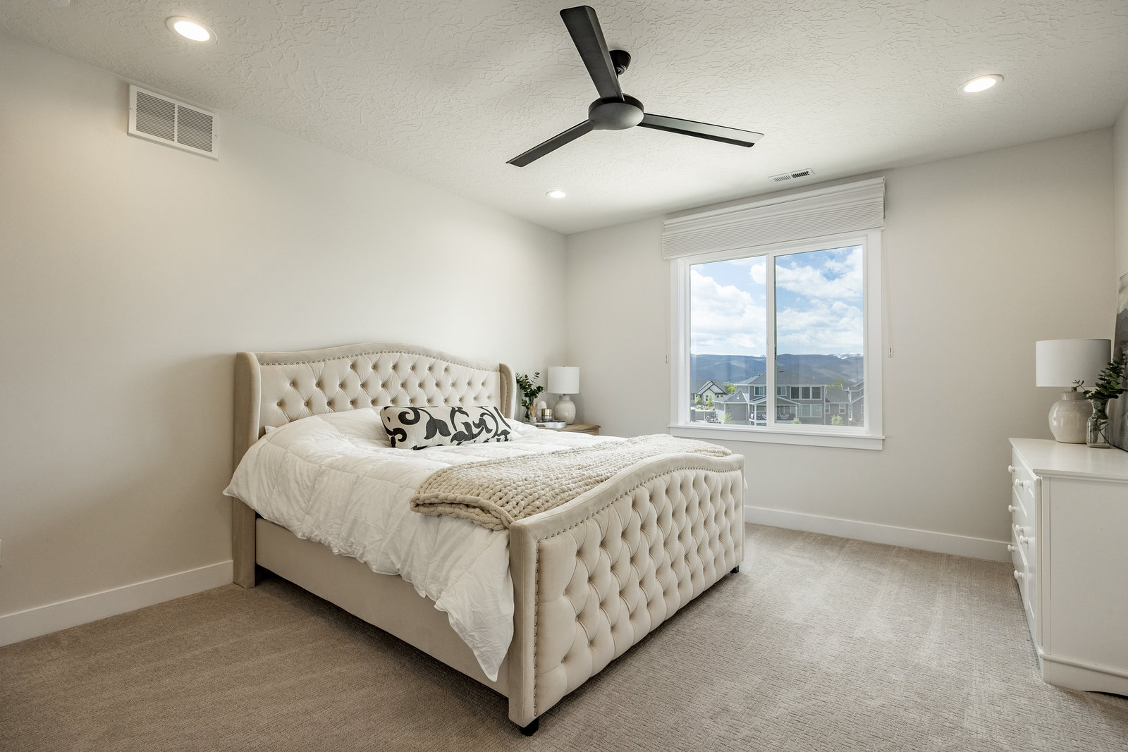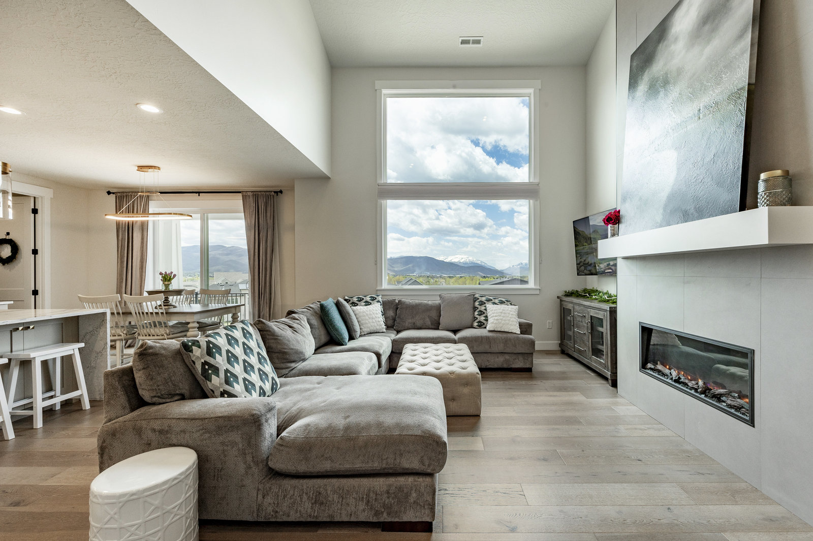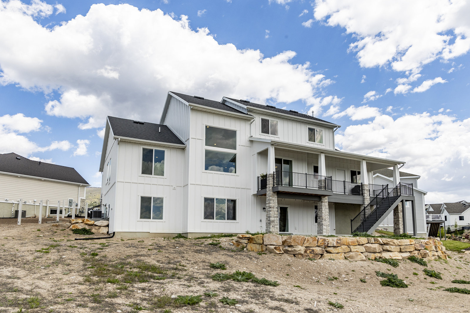 Welcome to your sanctuary in Heber, tucked away in a peaceful cul-de-sac. From the moment you step inside, you'll be greeted by panoramic views of Mount Timpanogos, visible from every window of this magnificent home. The main level master bedroom offers a sanctuary of its own, where you can wake up to the sight of the sun kissing the snow-capped peaks. As you start your day, the views continue to inspire and uplift, creating a serene backdrop for your daily routine. Step into the chef's kitchen, featuring sleek waterfall quartz countertops, a spacious butler's pantry, and high-end Bertazzoni appliances. Whether you're cooking breakfast or preparing a gourmet dinner, you'll find joy in the natural beauty that surrounds you. Venture downstairs to the fully finished basement, where an additional master bedroom is available for your guests. Enjoy a giant game/family room or the walkout patio that invites you to unwind amidst the tranquility of the landscape. From there, walk up the stairs where the expansive deck beckons you to enjoy outdoor dining and entertaining while soaking in spectacular sunsets over Mount Timpanogos. Step outside your back door and onto the neighborhood walking/biking trails, where you can explore the beauty of the area at your leisure. With an oversized 3-car garage providing ample storage and parking space, this home offers both luxury and practicality in equal measure. From high-end finishes to walk-in closets and a large laundry room with a sink (additional laundry hookups upstairs), every detail has been thoughtfully designed to enhance your lifestyle. Only 10 min from world class skiing, including Deer Valley which will be the largest ski resort in the country after the expansion opens for the 2024/25 season. Don't miss the opportunity to make this Heber retreat your own – a place where you can truly experience the magic of mountain living.