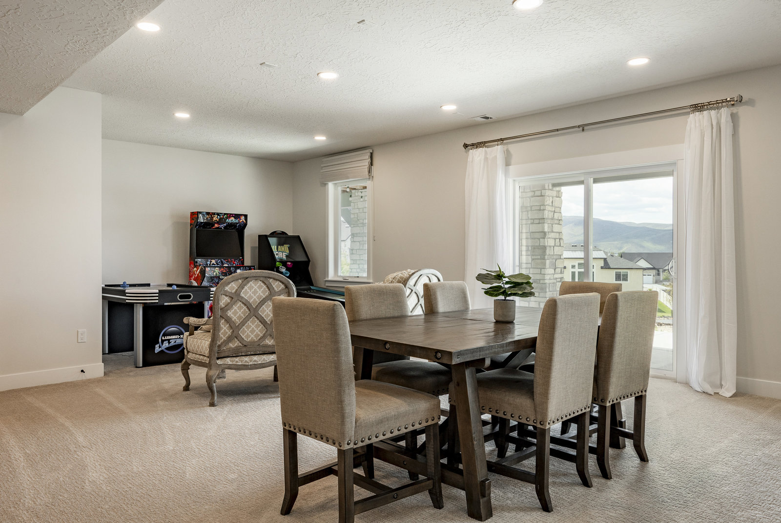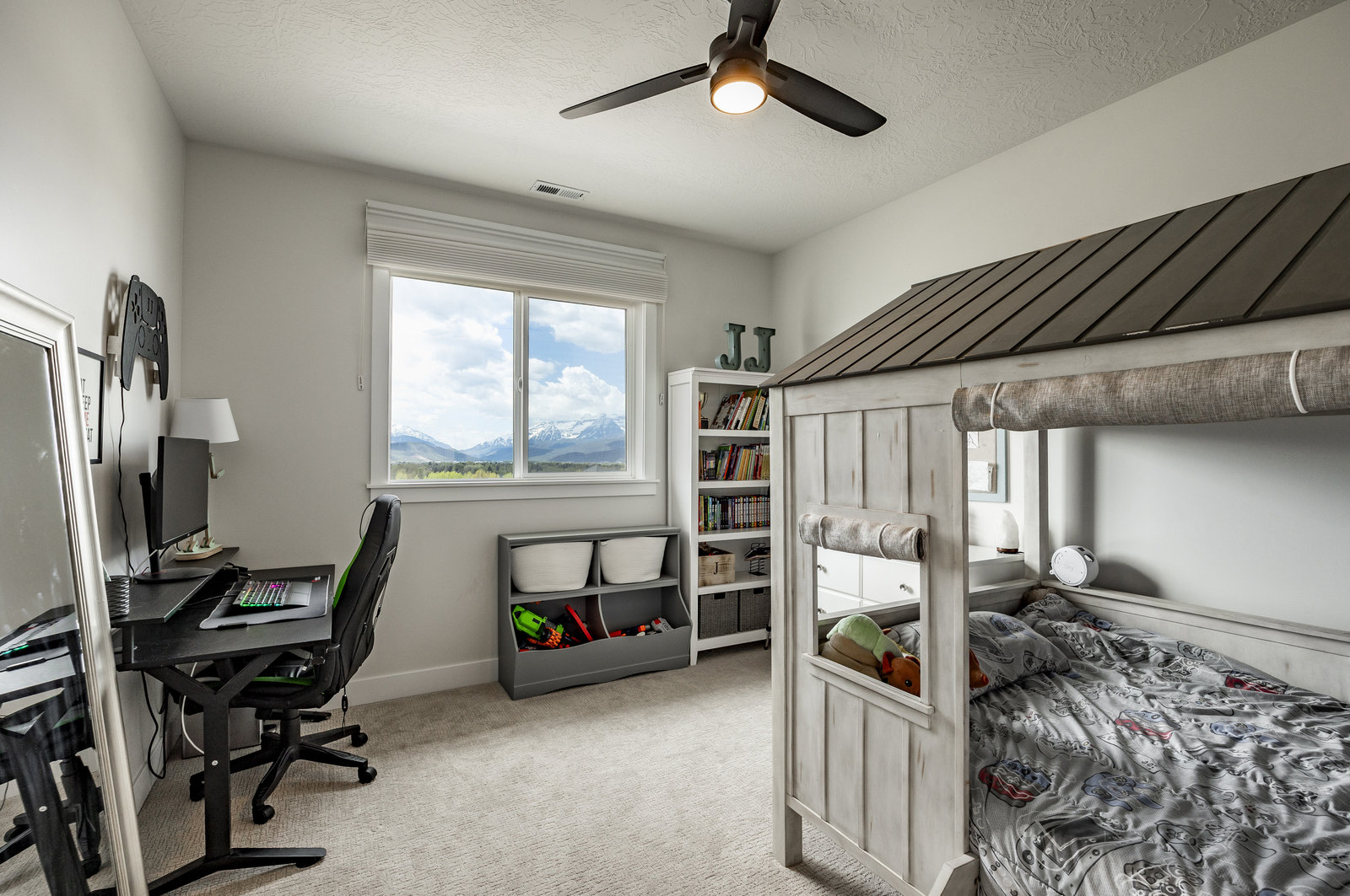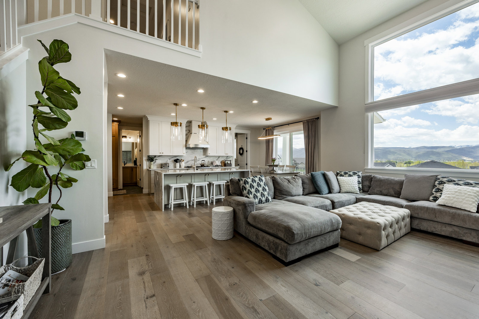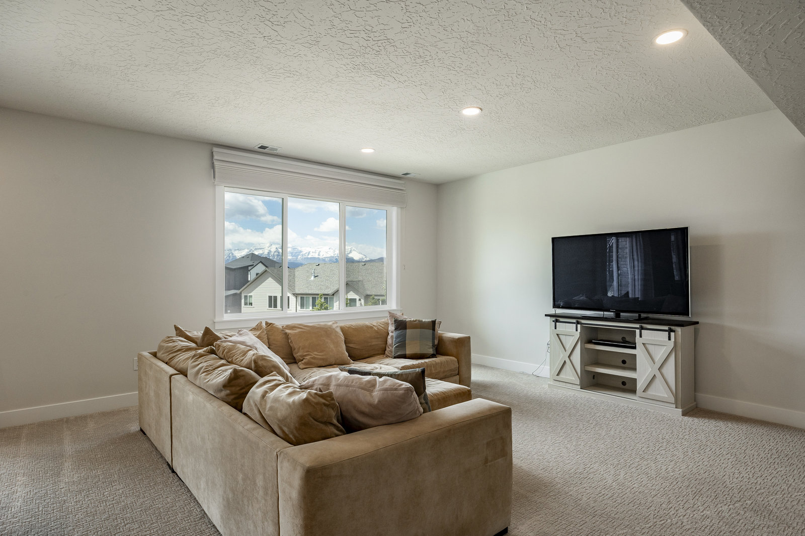 Welcome to your sanctuary in Heber, tucked away in a peaceful cul-de-sac. From the moment you step inside, you'll be greeted by panoramic views of Mount Timpanogos, visible from every window of this magnificent home. The main level master bedroom offers a sanctuary of its own, where you can wake up to the sight of the sun kissing the snow-capped peaks. As you start your day, the views continue to inspire and uplift, creating a serene backdrop for your daily routine. Step into the chef's kitchen, featuring sleek waterfall quartz countertops, a spacious butler's pantry, and high-end Bertazzoni appliances. Whether you're cooking breakfast or preparing a gourmet dinner, you'll find joy in the natural beauty that surrounds you. Venture downstairs to the fully finished basement, where an additional master bedroom is available for your guests. Enjoy a giant game/family room or the walkout patio that invites you to unwind amidst the tranquility of the landscape. From there, walk up the stairs where the expansive deck beckons you to enjoy outdoor dining and entertaining while soaking in spectacular sunsets over Mount Timpanogos. Step outside your back door and onto the neighborhood walking/biking trails, where you can explore the beauty of the area at your leisure. With an oversized 3-car garage providing ample storage and parking space, this home offers both luxury and practicality in equal measure. From high-end finishes to walk-in closets and a large laundry room with a sink (additional laundry hookups upstairs), every detail has been thoughtfully designed to enhance your lifestyle. Only 10 min from world class skiing, including Deer Valley which will be the largest ski resort in the country after the expansion opens for the 2024/25 season. Don't miss the opportunity to make this Heber retreat your own – a place where you can truly experience the magic of mountain living.