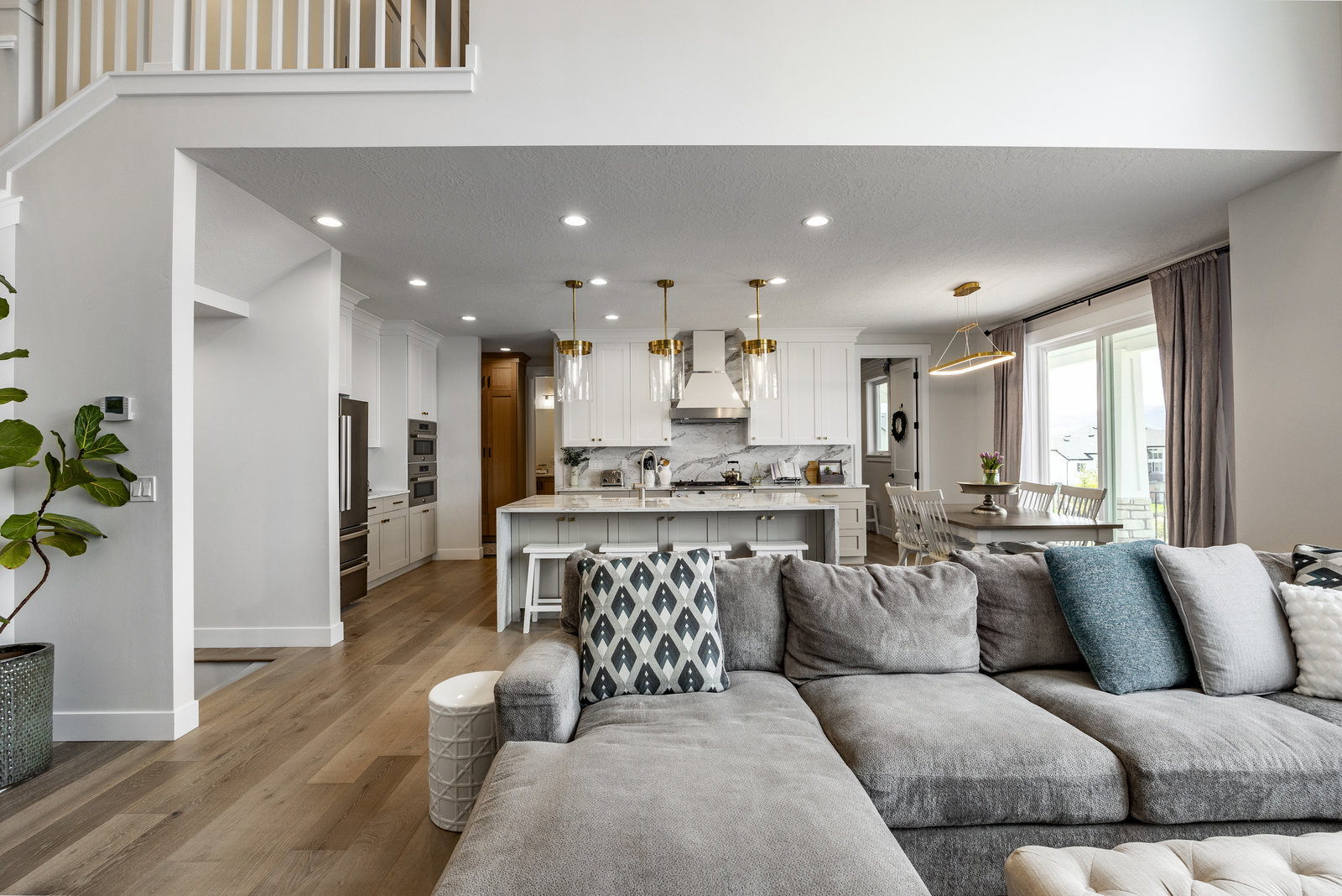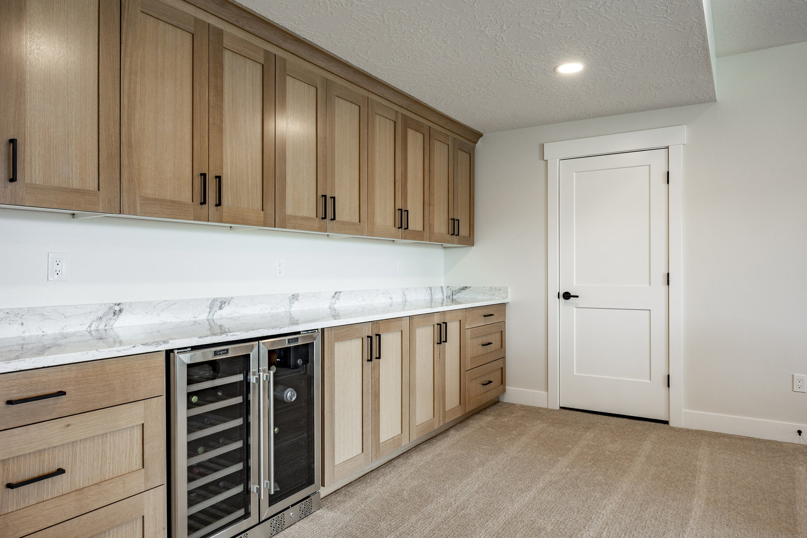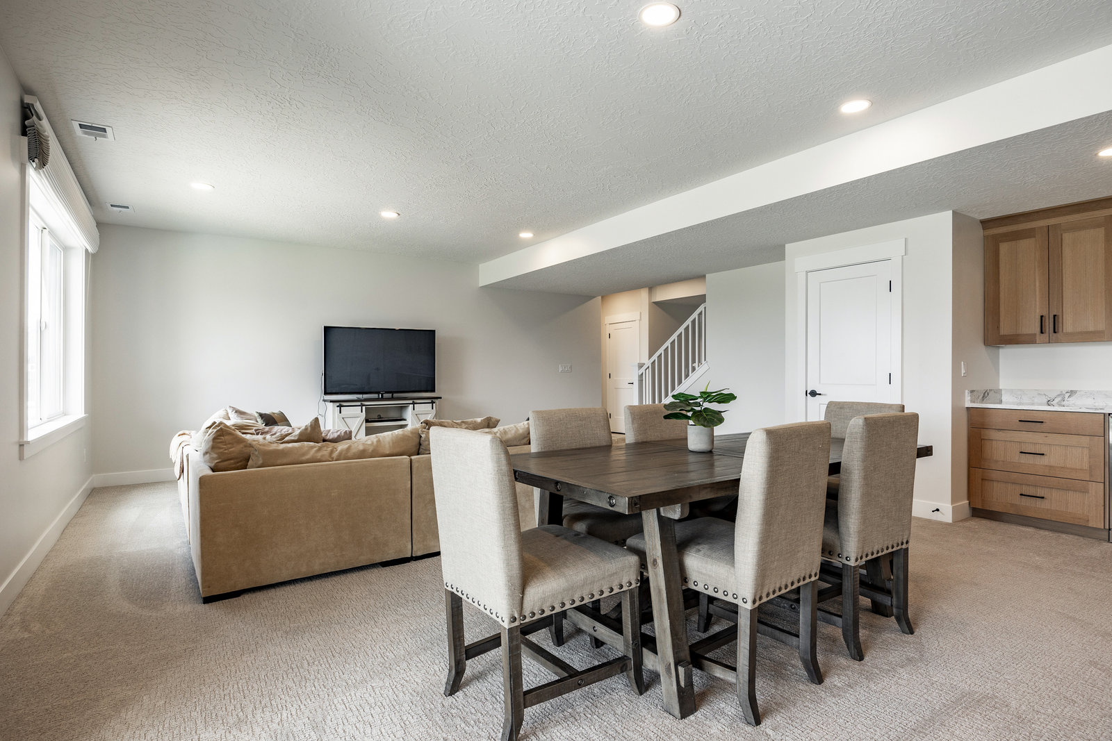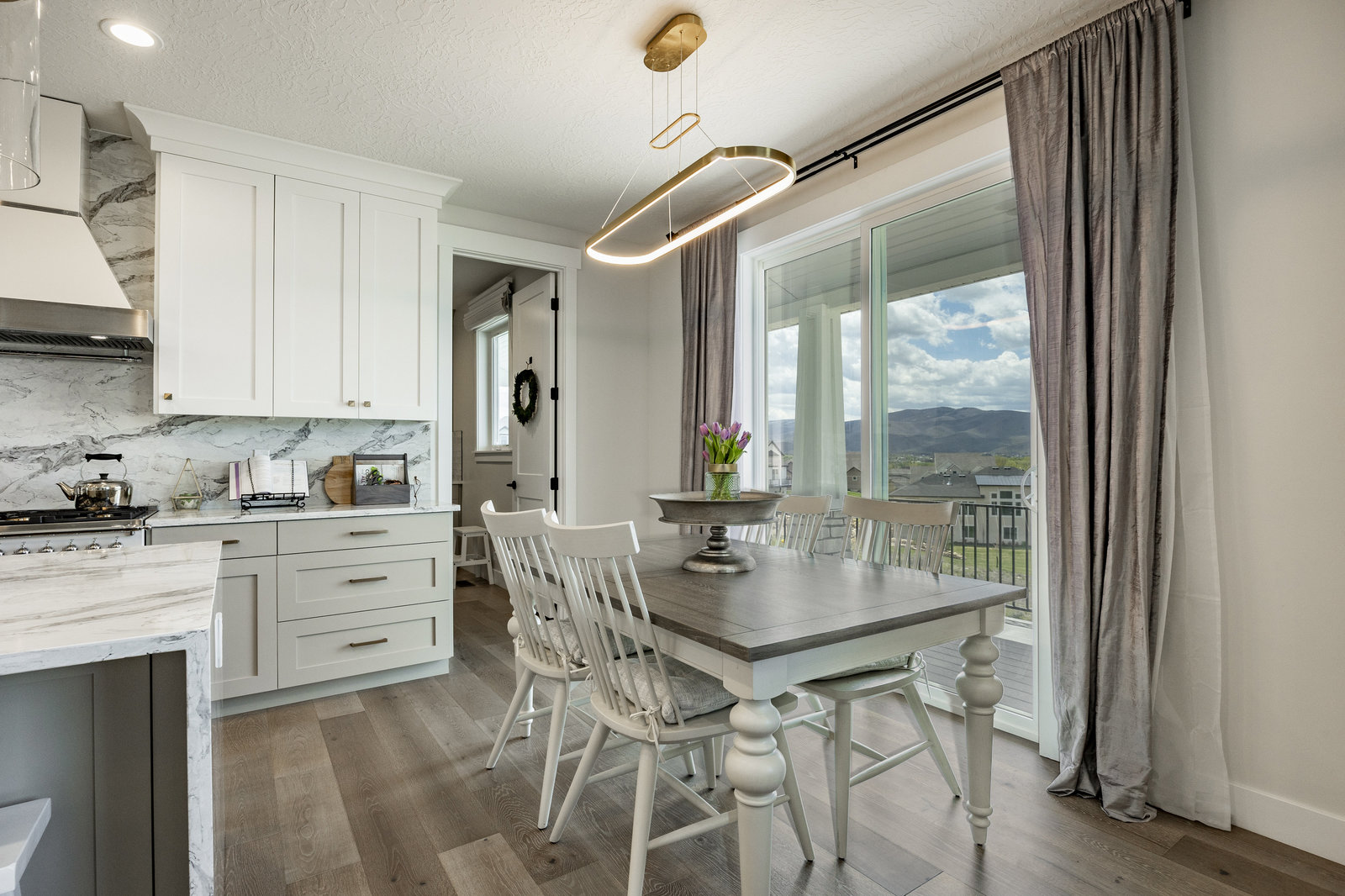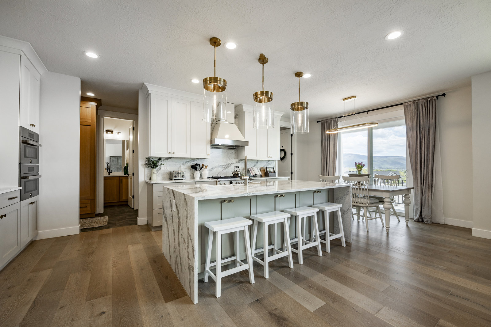 Welcome to your sanctuary in Heber, tucked away in a peaceful cul-de-sac. From the moment you step inside, you'll be greeted by panoramic views of Mount Timpanogos, visible from every window of this magnificent home. The main level master bedroom offers a sanctuary of its own, where you can wake up to the sight of the sun kissing the snow-capped peaks. As you start your day, the views continue to inspire and uplift, creating a serene backdrop for your daily routine. Step into the chef's kitchen, featuring sleek waterfall quartz countertops, a spacious butler's pantry, and high-end Bertazzoni appliances. Whether you're cooking breakfast or preparing a gourmet dinner, you'll find joy in the natural beauty that surrounds you. Venture downstairs to the fully finished basement, where an additional master bedroom is available for your guests. Enjoy a giant game/family room or the walkout patio that invites you to unwind amidst the tranquility of the landscape. From there, walk up the stairs where the expansive deck beckons you to enjoy outdoor dining and entertaining while soaking in spectacular sunsets over Mount Timpanogos. Step outside your back door and onto the neighborhood walking/biking trails, where you can explore the beauty of the area at your leisure. With an oversized 3-car garage providing ample storage and parking space, this home offers both luxury and practicality in equal measure. From high-end finishes to walk-in closets and a large laundry room with a sink (additional laundry hookups upstairs), every detail has been thoughtfully designed to enhance your lifestyle. Only 10 min from world class skiing, including Deer Valley which will be the largest ski resort in the country after the expansion opens for the 2024/25 season. Don't miss the opportunity to make this Heber retreat your own – a place where you can truly experience the magic of mountain living.