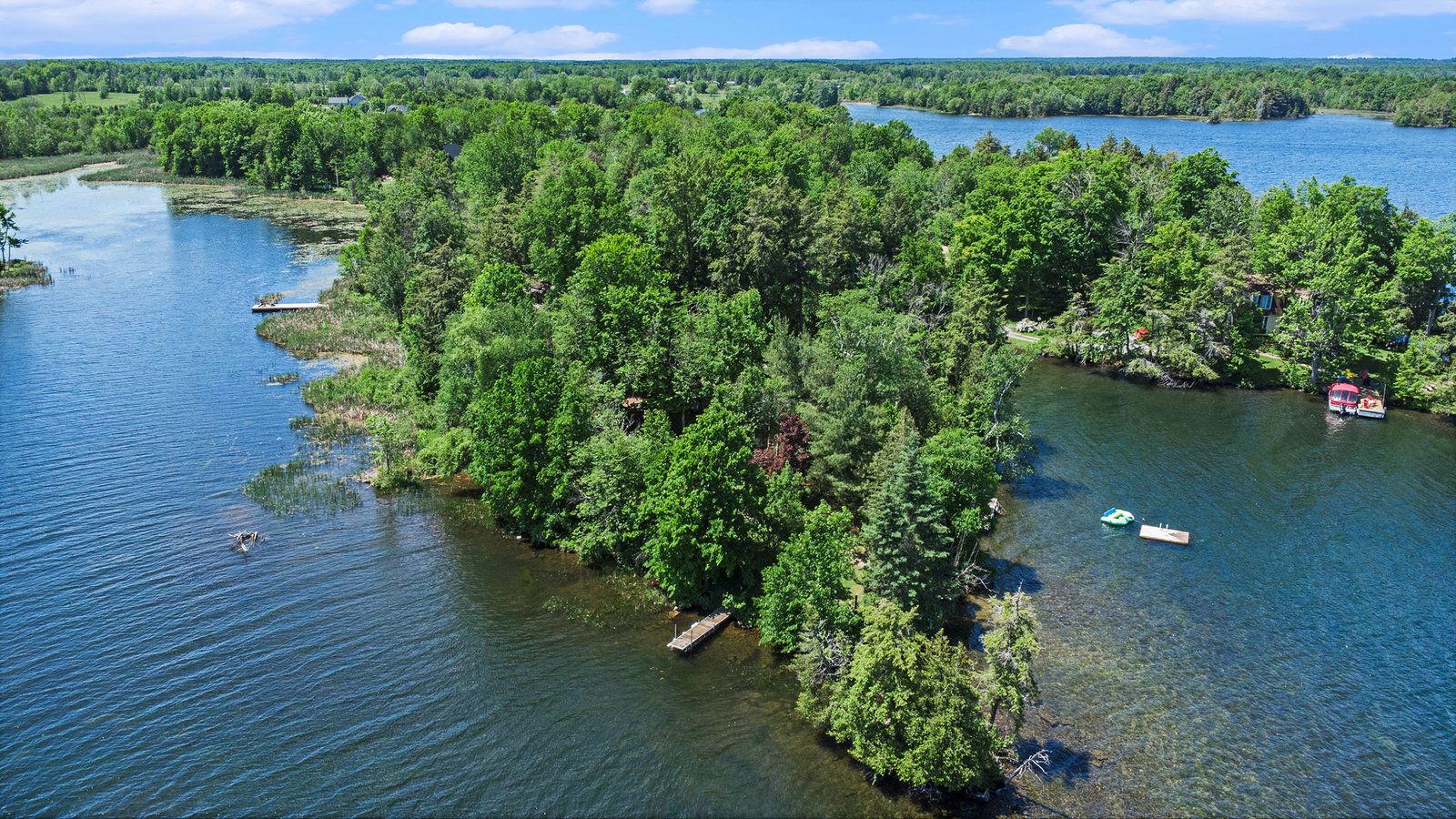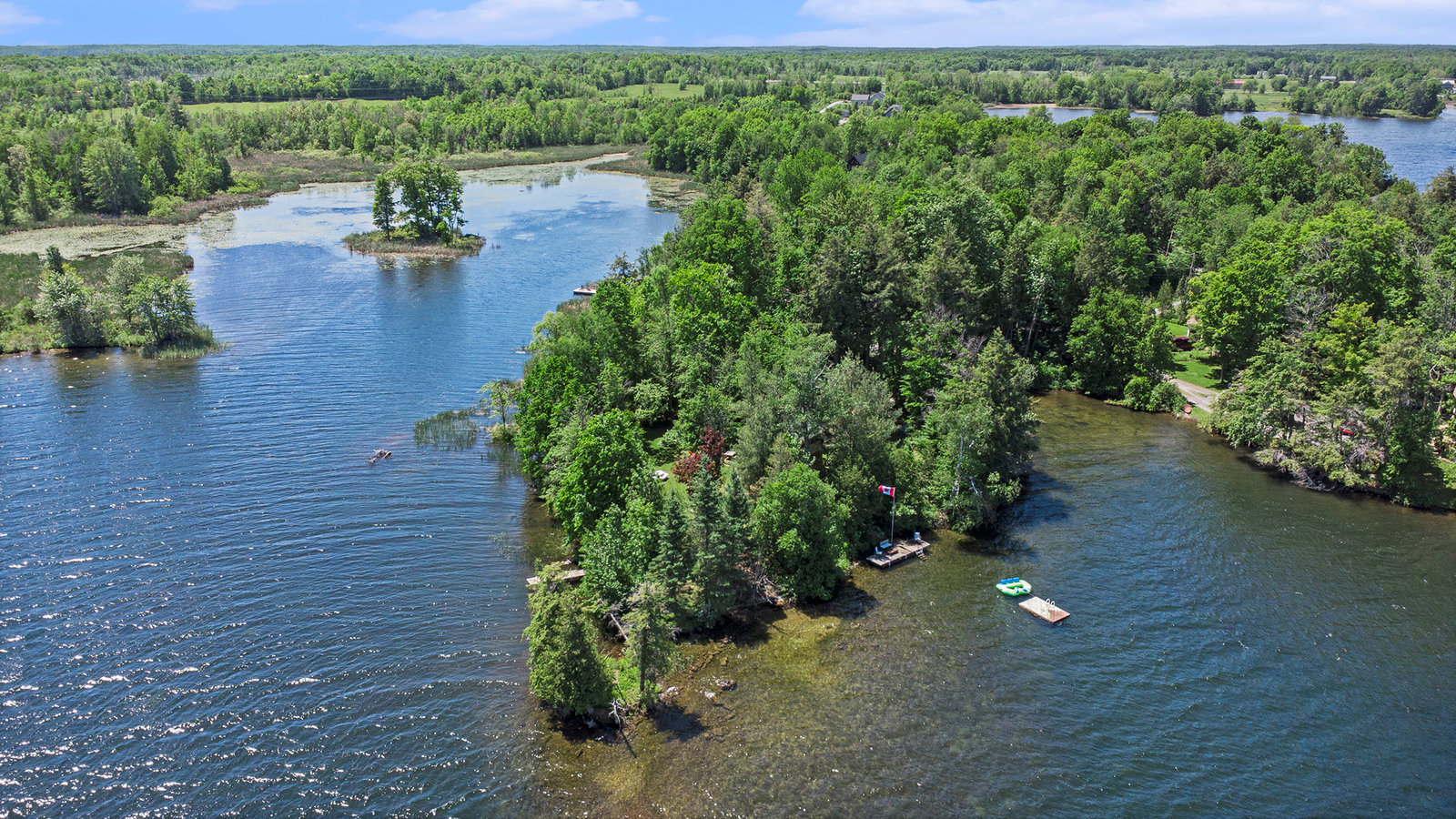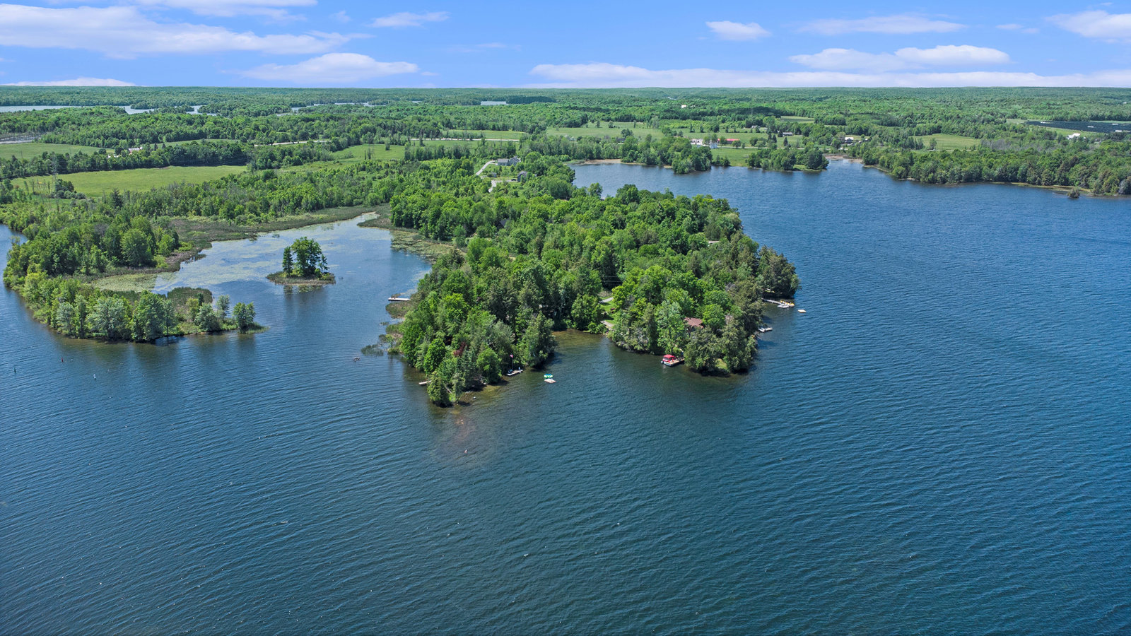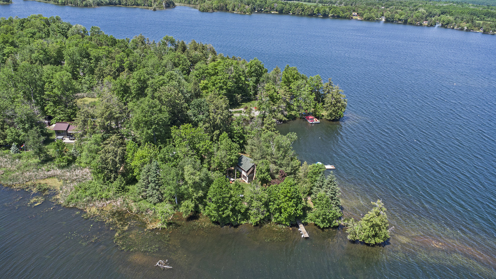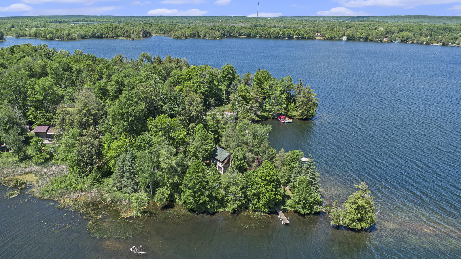 Not only is there a charming 190 year old log dwelling, lovingly preserved, updated and steeped in history.... a dwelling that Hansel and Gretel might have stubbled upon in the forest, there also a perfect property with almost 1000 feet of excellent waterfront on one of the premier lakes of the Unesco Heritage Site and the headwater of the Rideau System - Upper Rideau Lake. Relish in complete privacy at the end of a four season road, just minutes from the excitement of Westport and Newboro. Find a deep water dock on one side for boats, a sand beach walk-in on the end and a weed freeswim dock and raft on the other side. This oasis property is surrounded by water - like living on an island that you can drive to. Ample outbuildings add a workshop, storage, garage an bunkie opportunity. This property is evidence that the best lakeside properties were chosen first. It is truly magical and must be seen if you are in search of a family legacy investment.