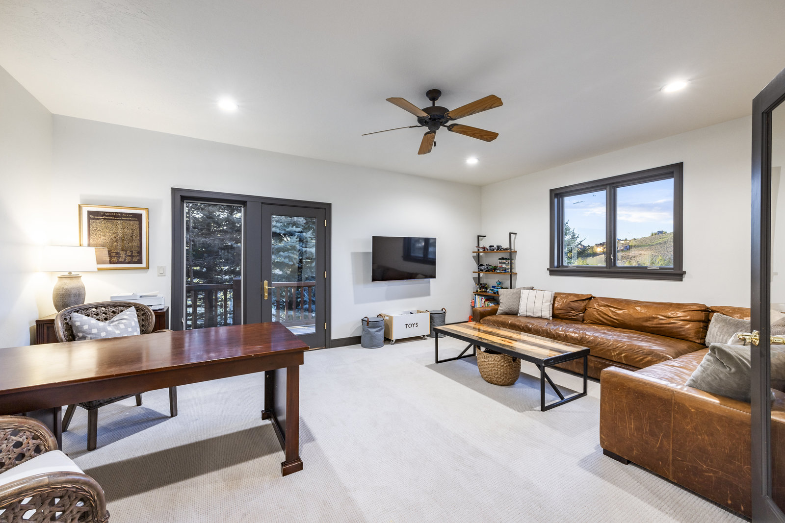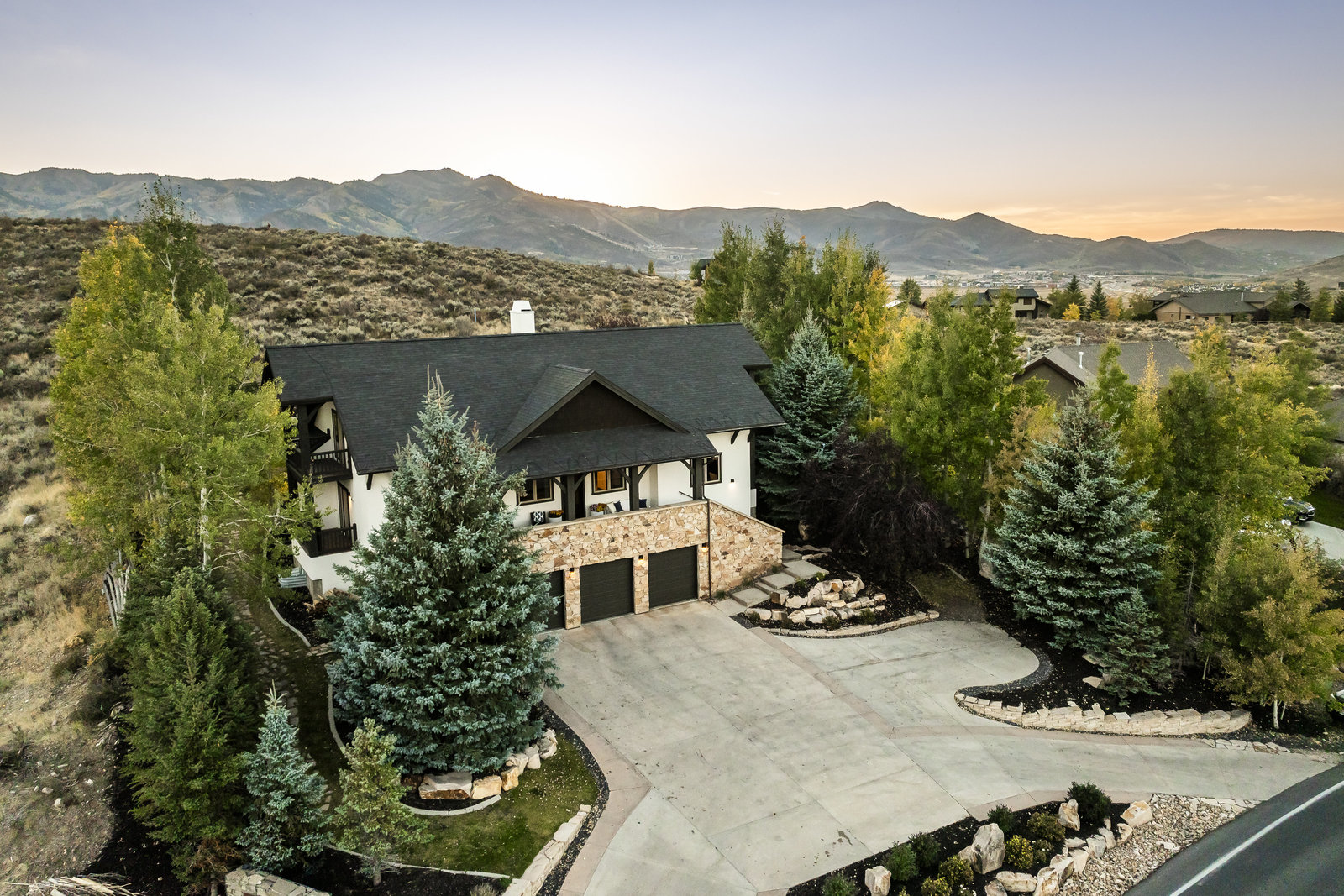 Welcome to your dream home in the heart of the greater Park City Area! Step inside the spacious great room, featuring vaulted ceilings and a cozy fireplace, alongside a generous office/family room. The main-level primary bedroom allows for convenient living, ideal for those seeking easy access and comfort. The kitchen opens to a large backyard, perfect for entertaining and outdoor play, all while offering stunning views of Round Valley. Downstairs, you'll find additional bedrooms and a newly renovated family room with a kitchenette, providing ample space to relax and enjoy movie nights with family and friends. The three-car garage accommodates vehicles and all your Park City toys, and leads directly inside to a fully-outfitted mudroom.