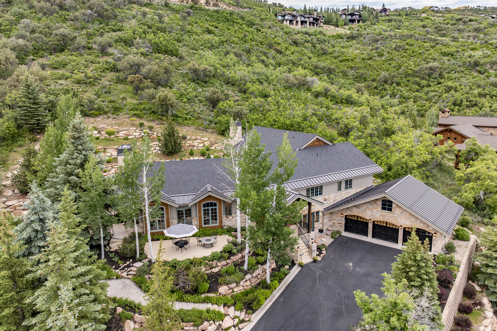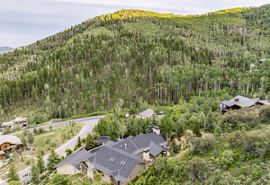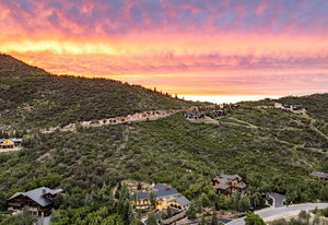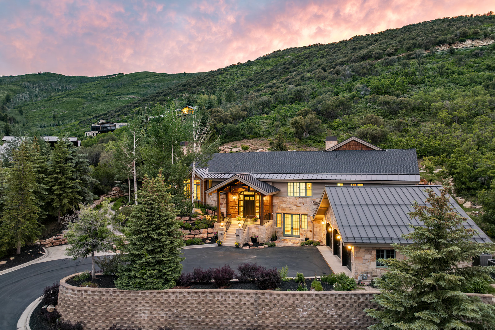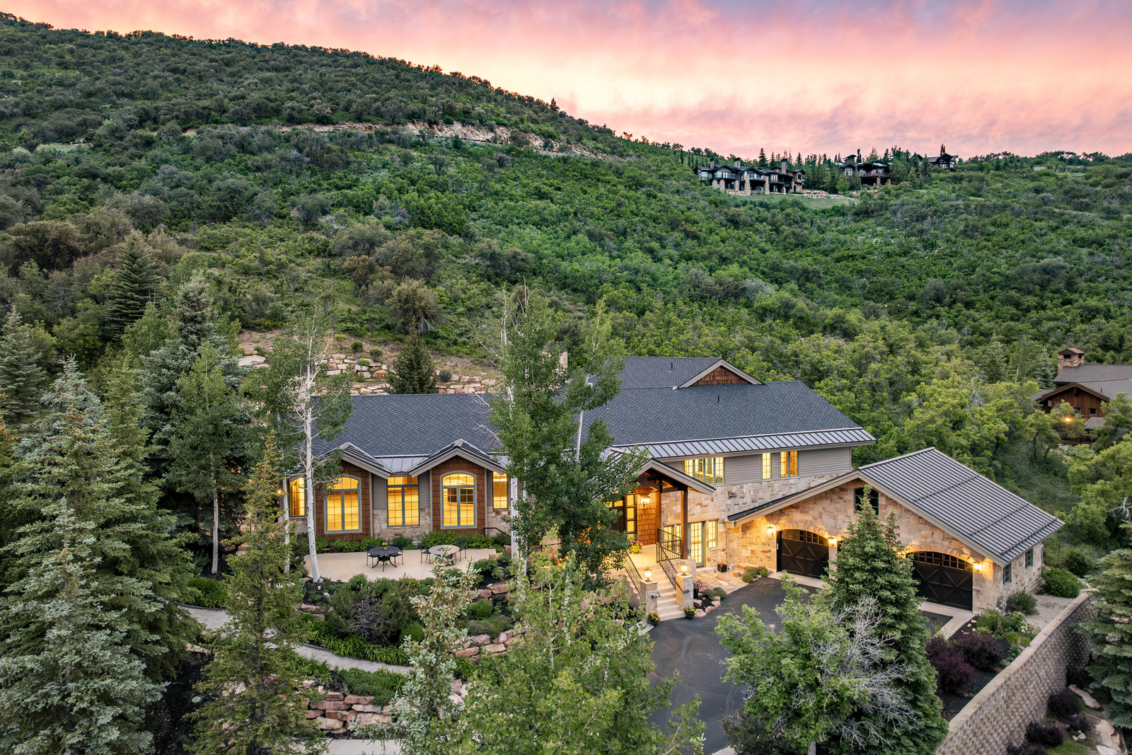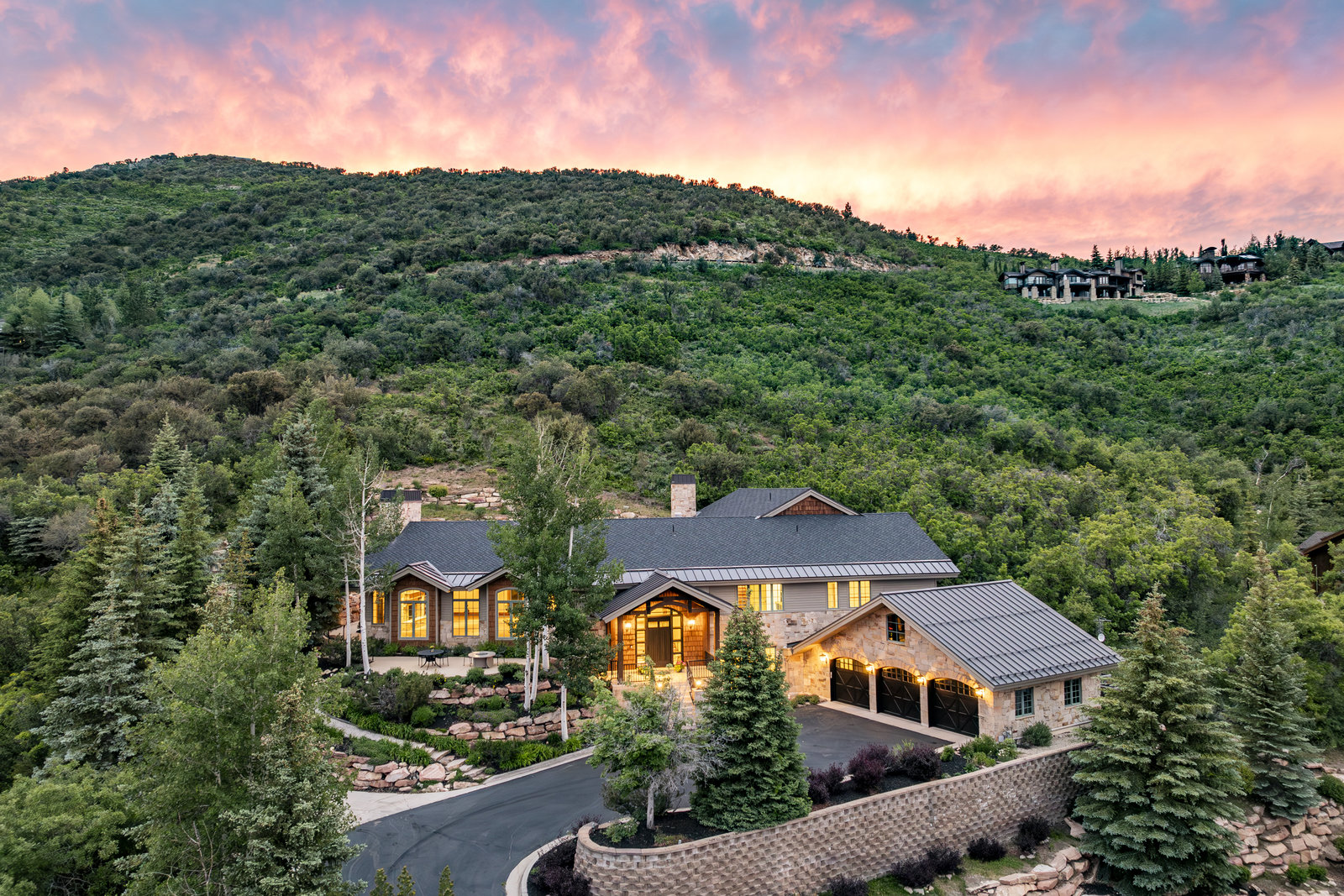 At the top of Sun Peak, 4810 Bear View Drive, with stunning mountain and valley views and surrounded by HOA owned open spaces, offers the perfect blend of tranquility and privacy. It provides easy access to the best of Park City 's adventures. Nestled between the world renown Olympic Winter Sports Park and The Canyons Ski and Golf Resort, it is a half hour from SLC International Airport and minutes from ski slopes, golf courses, world-class hiking and biking trails, restaurants, the Kimball Junction shopping area, and Park City's Historic District. The Great Room features an open floor plan with a warm fireplace, flowing seamlessly into the dining room and bespoke chef's kitchen, and is illuminated by walls of generous windows. A large wrap-around patio with an outdoor kitchen and beautifully landscaped garden makes the outdoor living space feel like a true extension of the home, perfect for entertaining. Down the hallway, three bedrooms with walk-in closets and meticulously designed en-suite bathrooms provide ample space and light for family and guests. Up a couple stairs, the private generous primary suite features a beautiful fireplace, recently restored caramel-colored hardwood floors, a spacious designer bathroom with a steam shower, a double vanity, and a generous walk-in closet. The lower level includes an additional bedroom, bathroom, family room, and a temperature-controlled wine cellar. A spacious three-car garage with additional storage offers plenty of space for vehicles and recreational equipment. An elevator provides easy access to the first two floors of the home.