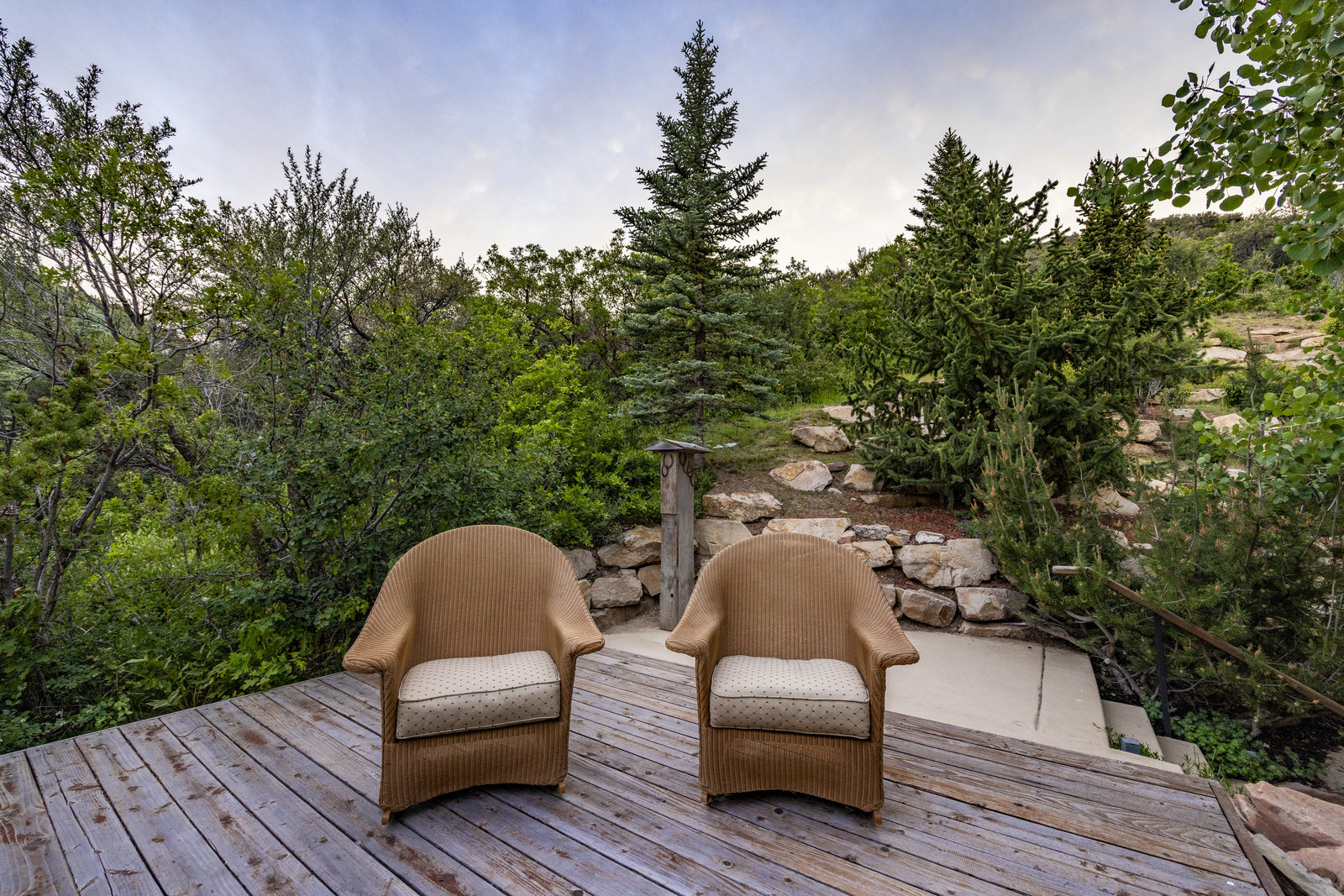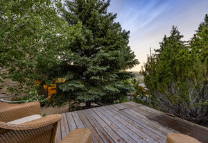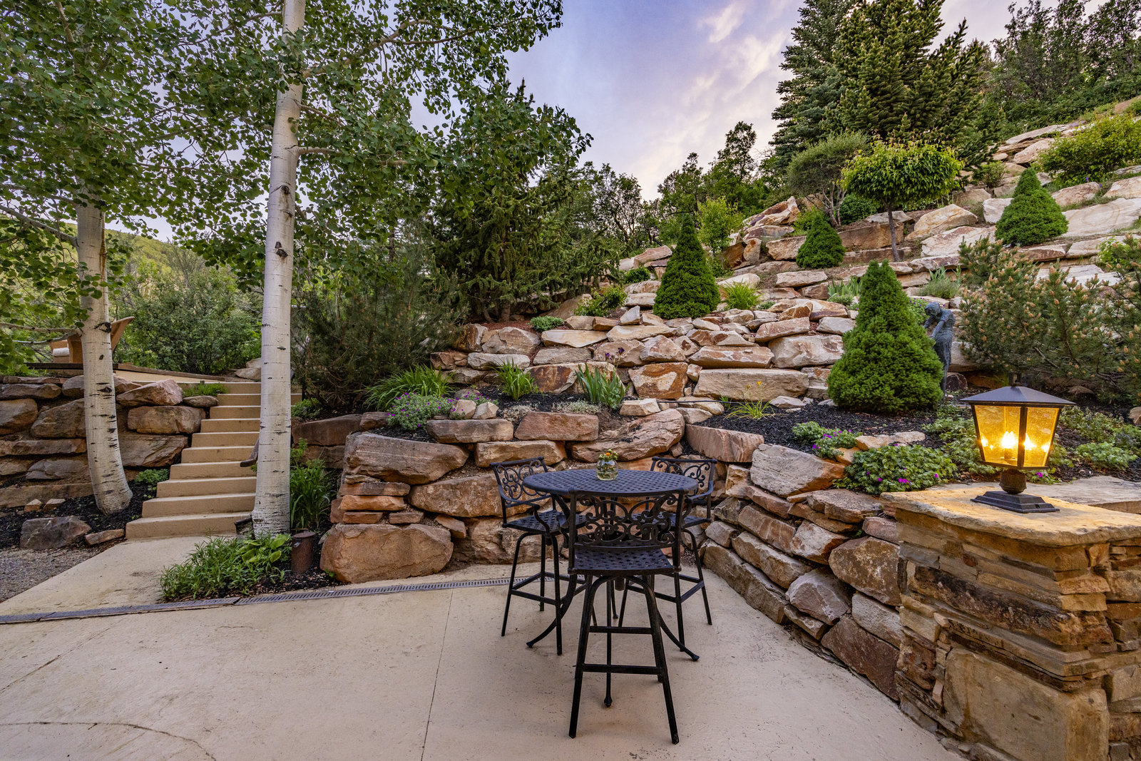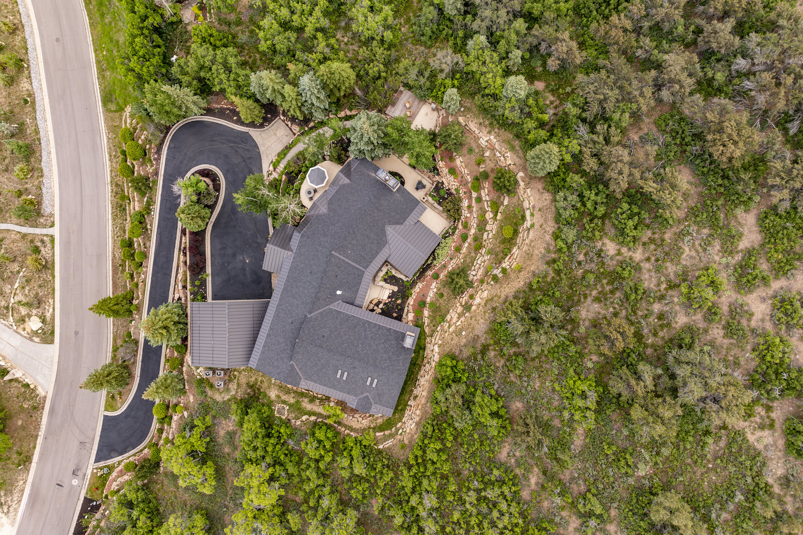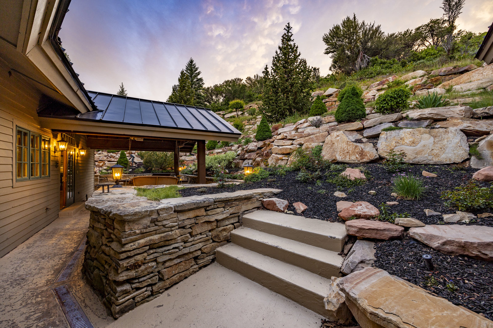 At the top of Sun Peak, 4810 Bear View Drive, with stunning mountain and valley views and surrounded by HOA owned open spaces, offers the perfect blend of tranquility and privacy. It provides easy access to the best of Park City 's adventures. Nestled between the world renown Olympic Winter Sports Park and The Canyons Ski and Golf Resort, it is a half hour from SLC International Airport and minutes from ski slopes, golf courses, world-class hiking and biking trails, restaurants, the Kimball Junction shopping area, and Park City's Historic District. The Great Room features an open floor plan with a warm fireplace, flowing seamlessly into the dining room and bespoke chef's kitchen, and is illuminated by walls of generous windows. A large wrap-around patio with an outdoor kitchen and beautifully landscaped garden makes the outdoor living space feel like a true extension of the home, perfect for entertaining. Down the hallway, three bedrooms with walk-in closets and meticulously designed en-suite bathrooms provide ample space and light for family and guests. Up a couple stairs, the private generous primary suite features a beautiful fireplace, recently restored caramel-colored hardwood floors, a spacious designer bathroom with a steam shower, a double vanity, and a generous walk-in closet. The lower level includes an additional bedroom, bathroom, family room, and a temperature-controlled wine cellar. A spacious three-car garage with additional storage offers plenty of space for vehicles and recreational equipment. An elevator provides easy access to the first two floors of the home.