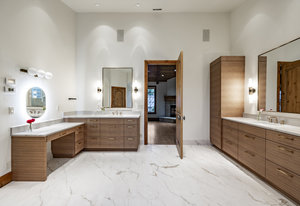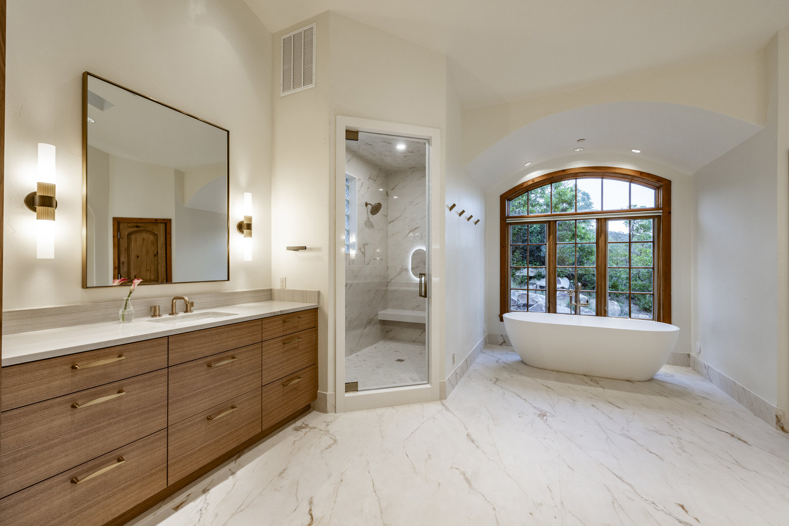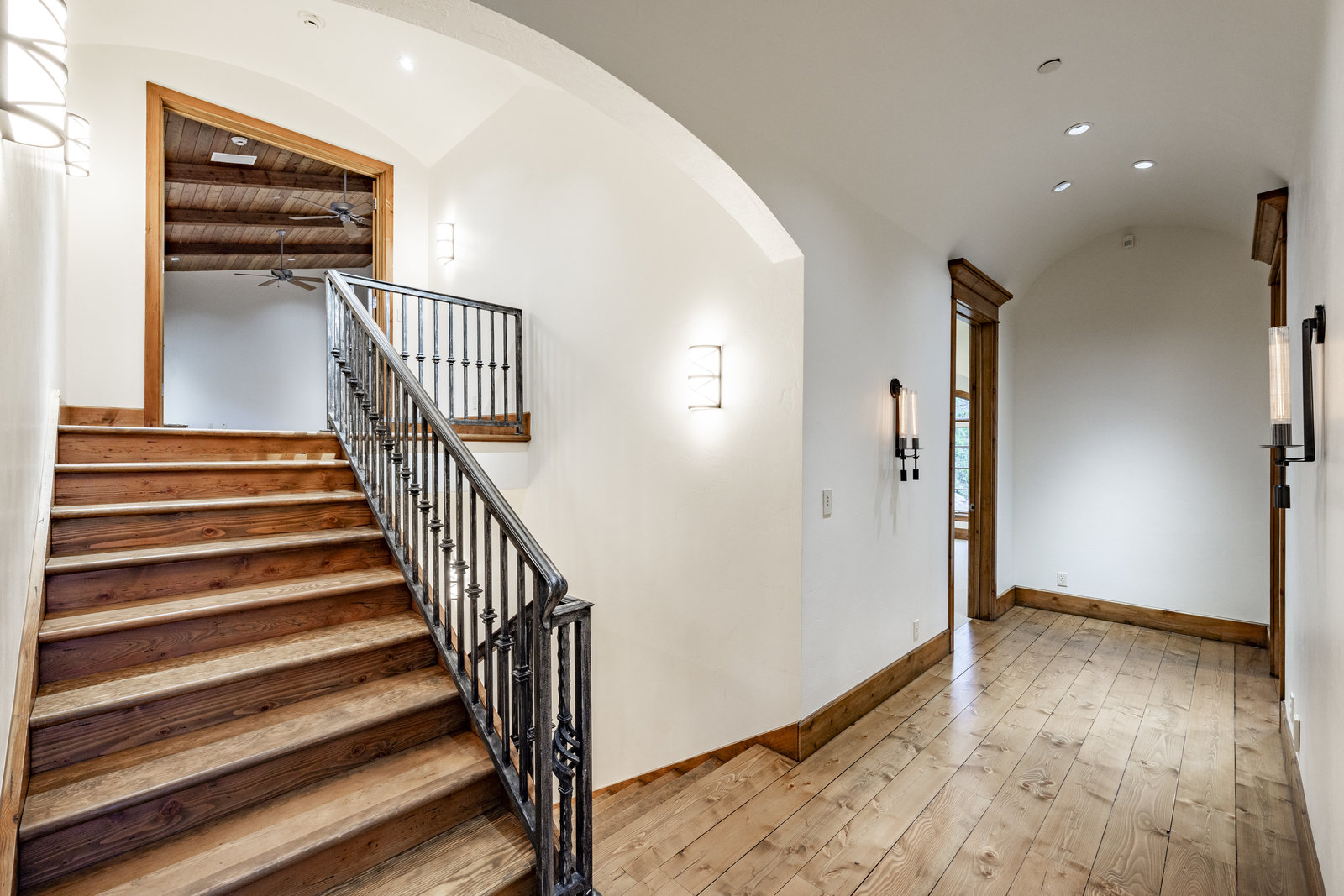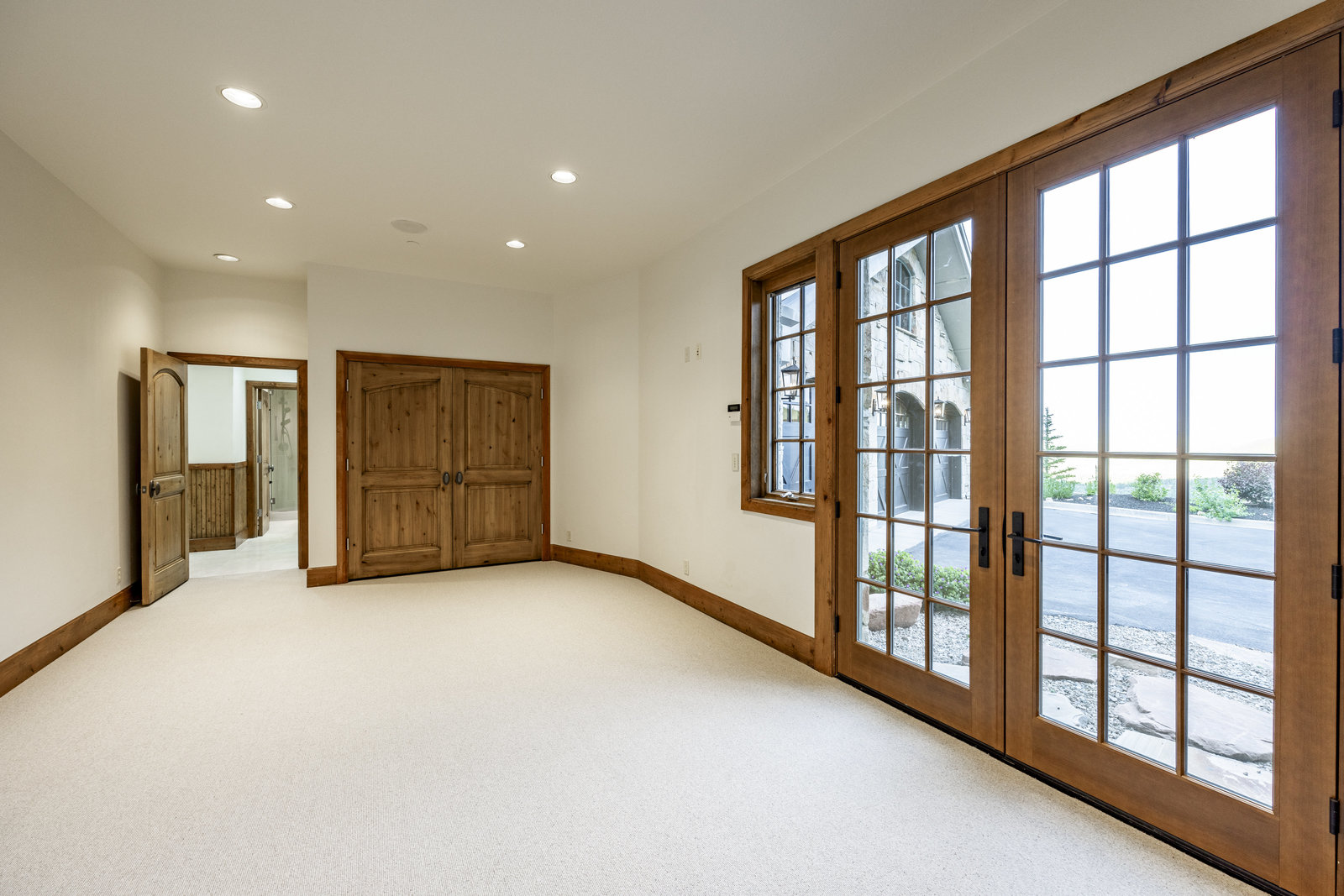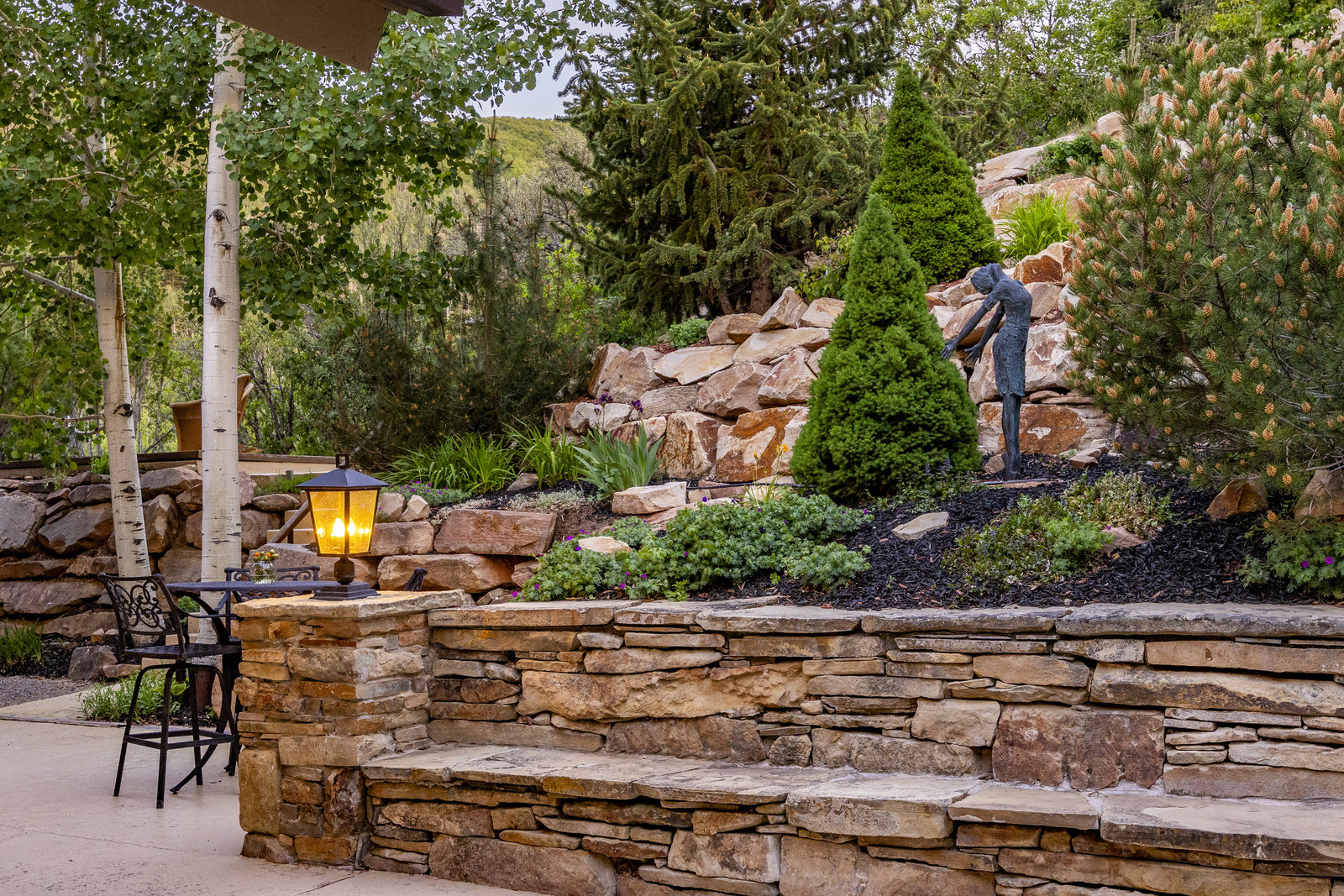 At the top of Sun Peak, 4810 Bear View Drive, with stunning mountain and valley views and surrounded by HOA owned open spaces, offers the perfect blend of tranquility and privacy. It provides easy access to the best of Park City 's adventures. Nestled between the world renown Olympic Winter Sports Park and The Canyons Ski and Golf Resort, it is a half hour from SLC International Airport and minutes from ski slopes, golf courses, world-class hiking and biking trails, restaurants, the Kimball Junction shopping area, and Park City's Historic District. The Great Room features an open floor plan with a warm fireplace, flowing seamlessly into the dining room and bespoke chef's kitchen, and is illuminated by walls of generous windows. A large wrap-around patio with an outdoor kitchen and beautifully landscaped garden makes the outdoor living space feel like a true extension of the home, perfect for entertaining. Down the hallway, three bedrooms with walk-in closets and meticulously designed en-suite bathrooms provide ample space and light for family and guests. Up a couple stairs, the private generous primary suite features a beautiful fireplace, recently restored caramel-colored hardwood floors, a spacious designer bathroom with a steam shower, a double vanity, and a generous walk-in closet. The lower level includes an additional bedroom, bathroom, family room, and a temperature-controlled wine cellar. A spacious three-car garage with additional storage offers plenty of space for vehicles and recreational equipment. An elevator provides easy access to the first two floors of the home.