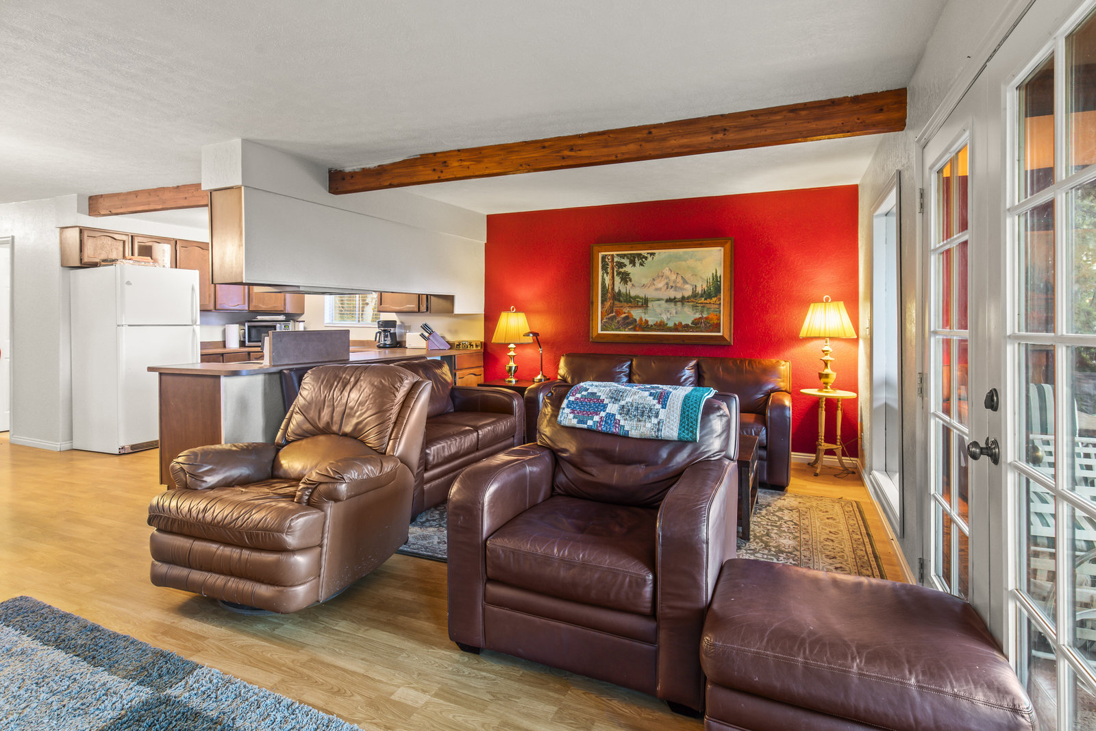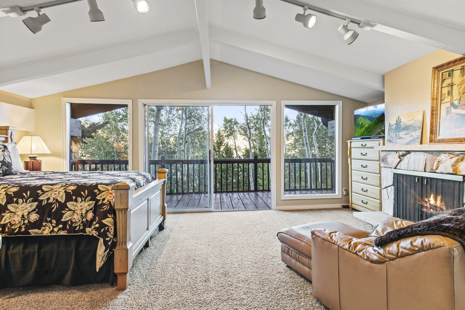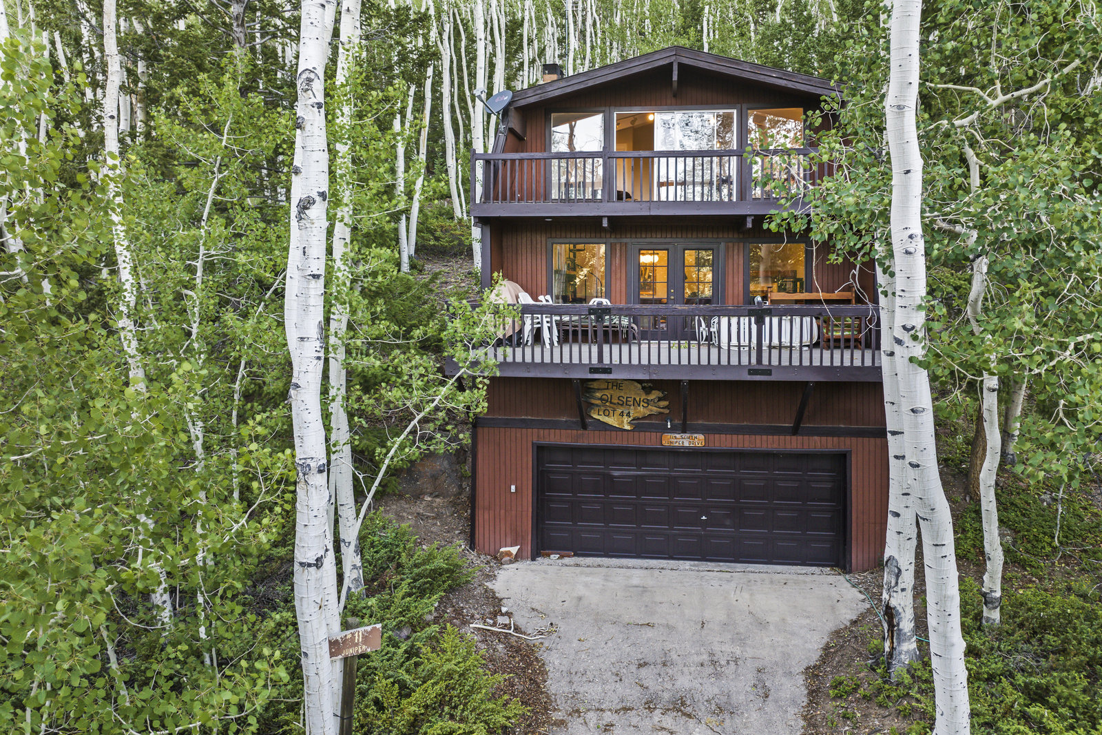 Rarely available rustic cabin located in highly sought-after Fish Lake! Spacious, open floor plan with one main floor bedroom and full bathroom. MVP flooring and newer paint throughout the main floor, large windows for natural light, and great views. A cozy wood-burning fireplace adds comfort to the main floor living space. Large deck off the main floor living space. Three additional bedrooms with vaulted ceilings and two additional bathrooms upstairs, all with newer carpet. The primary bedroom suite has a full bathroom, fireplace, and private deck. Bonus two-car built-in garage, which is rare for the area. Most furnishings are included in the sale.