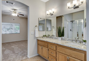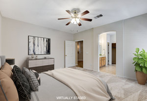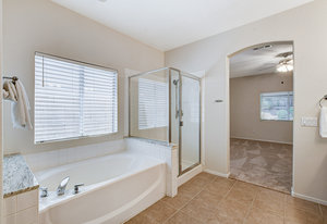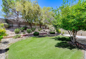 BEAUTIFULLY MAINTAINED ONE STORY HOME LOCATED ON A CUL-DE-SAC IN A GREAT SUMMERLIN COMMUNITY. THIS BEAUTIFULLY MAINTAINED ONE STORY HOME LOCATED ON A CUL-DE-SAC IN A GREAT SUMMERLIN COMMUNITY. THIS HOME HAS ALL TILE FLOORS THROUGHOUT THE MAIN AREAS, BRAND-NEW CARPET IN ALL BEDROOMS AND FRESHLY PAINTED WALLS,DOORS AND TRIM THROUGHOUT THE ENTIRE HOME. THE FLOORPLAN IS AN OPEN CONCEPT WITH AN ENTERTAINING KITCHEN THAT OPENS TO THE GREAT ROOM COMPLETE WITH A GAS FIREPLACE. THE KITCHEN FEATURES AN ISLAND WITH GRANITE COUNTERTOPS, BRASS DECO BACKSPLASH, ALL WHITE APPLIANCES AND A SPACIOUS PANTRY. THE LARGE PRIMARY SUITE IS SEPARATE FROM THE SECONDARY BEDROOMS AND INCLUDES A BEAUTIFUL BATHROOM WITH A DUAL SINK VANITY, WALK IN SHOWER AND SOAKING TUB. WHAT REALLY SETS THIS HOME APART FROM SIMILIAR HOMES IS THE PARK LIKE BACKYARD. THE ENTIRE LENGTH OF THE PATIO IS COVERED SO YOU CAN SIT BACK AND APPRECIATE THE BEAUTIFULLY LANDSCAPED BACKYARD THAT EVEN OFFERS MULTIPLE FRUIT TREES. THIS HOME IS IN PRISTINE CONDITION * LOCATED JUST MINUTES FROM DOWNTOWN SUMMERLIN, PARKS AND FREEWAY.