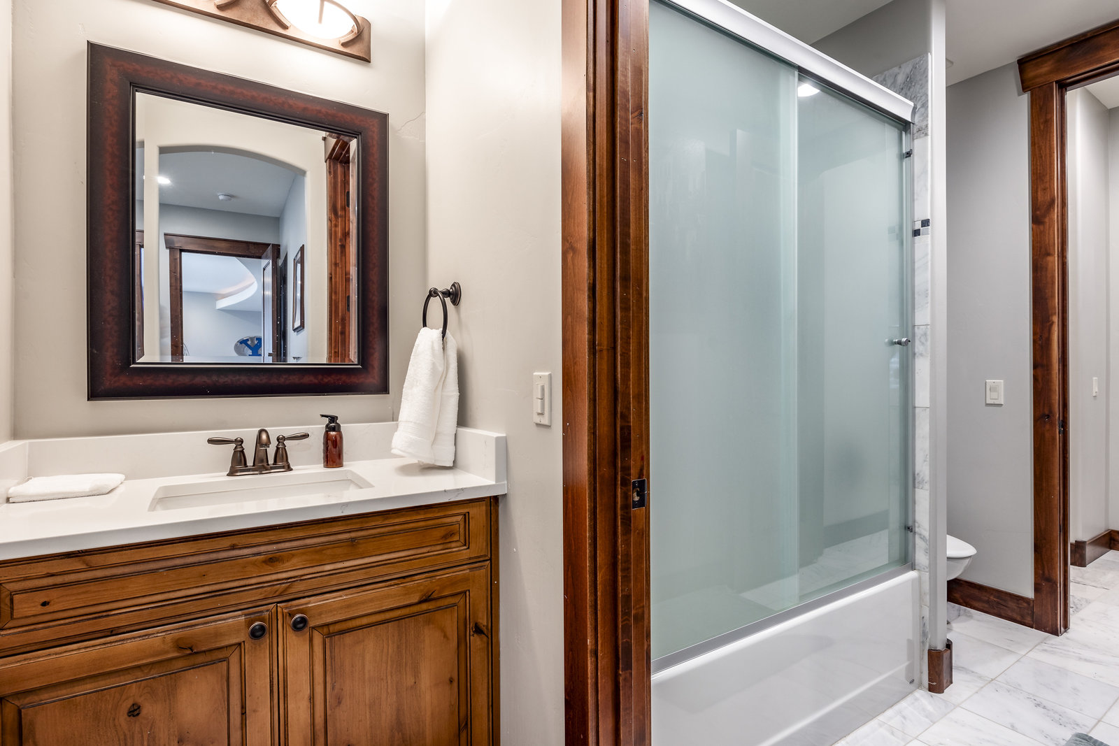 One of a kind remodel of an existing home has been completed for you. From the outside front entrance to the professionally landscaped yard, this home has been prepared for your family and friends. The attention to detail and quality of materials will be evident as soon as you enter the front door and see the natural light coming into the home from the many windows, to the chef's kitchen with a Wolf cooktop and Sub Zero refrigerator, a Butler pantry, and then outside to the patio and outside living area. The master suite boasts an oversized steam shower and marble floors and large walk in closet. There are solid wood 8 foot doors throughout the home and 10 ft ceilings in the basement. The ...
