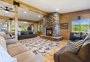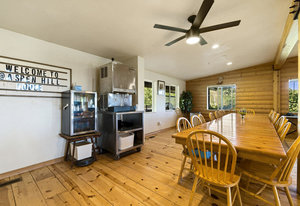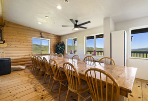 This 20 bedroom Lodge, perched atop the Eden and Cache Valleys, Pineview and Causey Reservoirs, and Powder Mountain and Snowbasin Ski Resorts, sleeps over 60 people comfortably. Find plenty to do on your own 74 acres with a shooting range, trails, ponds, Utah's largest residential zipline course, horse corrals, fire pits and much more. The property also gives you direct access to Cache Valley National Forest and School Board Trust Land where you can enjoy hunting, hiking, camping, Heli Skiing, and riding both summer and winter all terrain vehicles for miles and miles. Each and every guest will be able to relax in style in one of the 16 private guest suites that feature their own fireplaces, new flooring, remodeled bathrooms, new ceiling fans and new mattresses. You will find plenty of room for gathering and entertaining in the large, open main lodge, which boasts an enormous fireplace, plenty of seating, and a dining area for the whole group. Prepare meals in the commercial grade chef's kitchen with new fridge and freezer, wolf range, ice maker and even a commercial dishwasher. With the perfect balance of indoor and outdoor living, the large, recently renovated deck is perfect for outdoor entertaining, wedding, or a morning yoga session with your guests. Downstairs you will find an additional 4 guest suites, a theater room and two large gaming areas along with a workshop for crafts and projects. The lodge is completely off grid, and features a private well with back-up storage tank, power from your 50 panel solar system with a Humless brand back-up battery stem and two large Cummins brand generators. A full security system features ViaStat high-speed internet, digital door locks on all doors, water sensors, smoke alarms and a full security system powered by Vivint, including exterior cameras. This property is perfect for groups of all sizes, and has previously been used as a motel. Both summer and winter vehicles can be rented 2 miles down the road at Club Rec.
