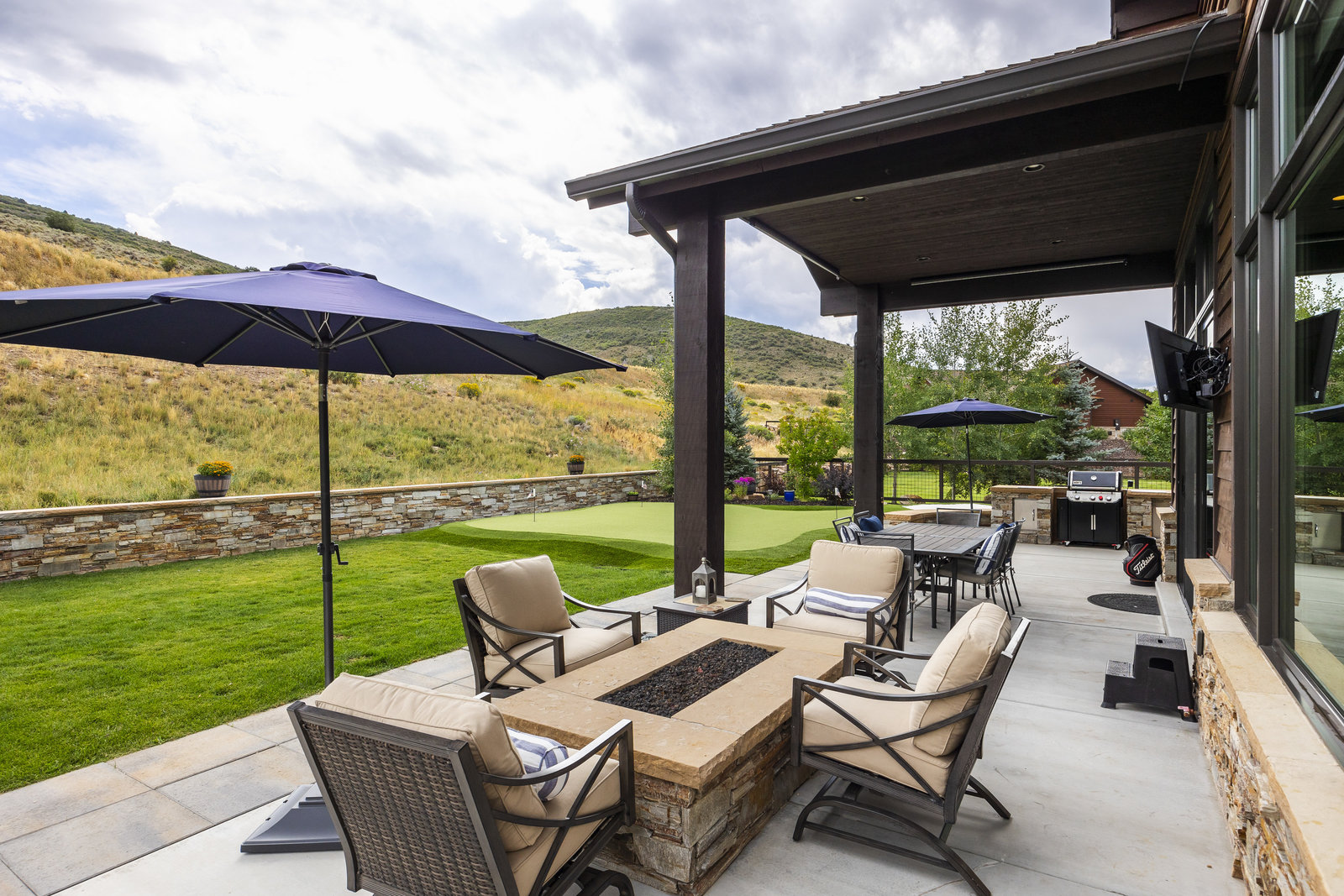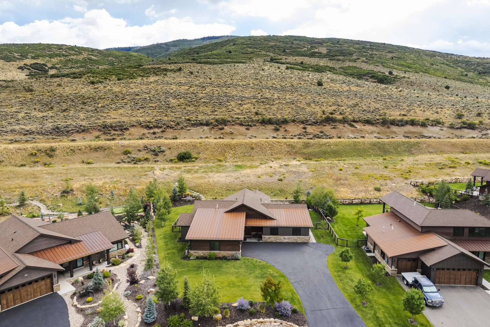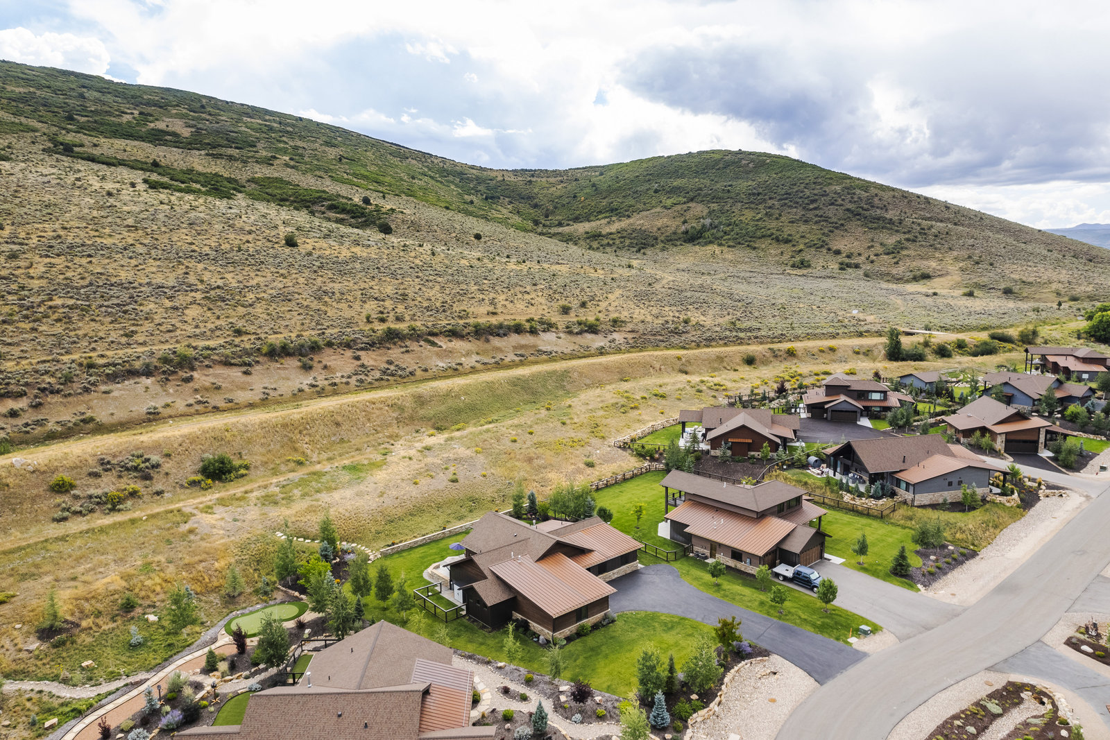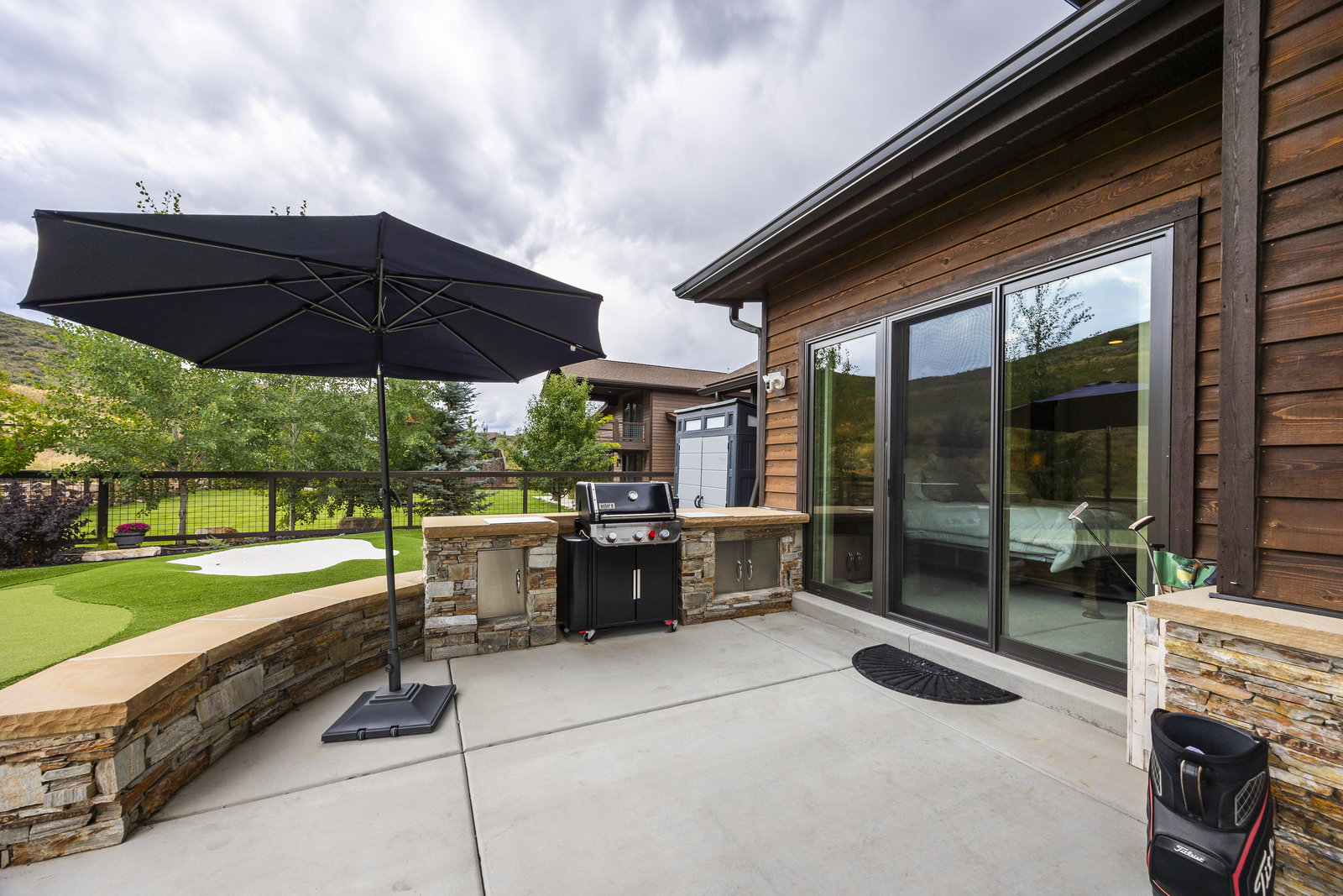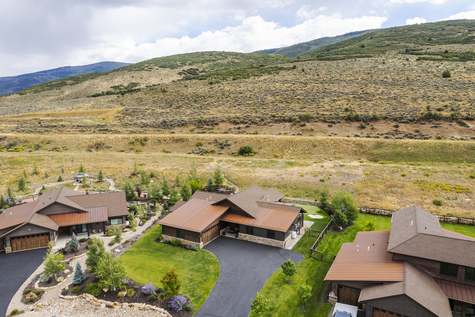 Perfect in every way, you won't find another home like this at High Star Ranch. Impeccably maintained and beautifully designed, this Gateway home has been expanded with comfort and flexibility in mind, all with the ease of main-level living. Featuring an open-concept great room with 14-ft ceilings, a wall of windows gives views of the backyard with no homes behind you, a feeling of openness and privacy. The home has high-end custom finishes by Barclay Butera, including Caesarstone countertops, a Thermador appliance suite, custom cabinets, hardwood flooring, enhanced lighting, electronic blinds, and stone fireplace. A sleek chef's kitchen is accompanied by a Butler's pantry, perfect for hiding away small appliances and coffee station, with extra cabinetry and wine fridge. The primary suite is luxurious and relaxing, with access to the back patio. The newly added 'family suite' consists of either 2 bedrooms ensuite, or a bedroom/den ensuite, providing flexibility for guests or family. On the other side of the home is a beautiful ensuite guest bedroom which also gives access to the back patio. Down the hall is a separate laundry room and dog bath. One more addition is a flex room currently used as an office/den with access to the back side yard and dog run. The home sits back off the road on a .47-acre lot, fully landscaped and finished to every detail, complete with a professional putting green. An extensive patio includes a fire pit to use year-round, a built-in barbecue, outdoor TV, and pull-down shades. Close to grocery, hardware, and shops within a mile. Access hundreds of miles of trails groomed in winter for year-round recreation, walk to free summer concerts. High Star offers a clubhouse, pool, pickleball courts for owners who wish to join for an additional fee. Nearby Uinta Mtns., 20 min. to ski resorts and Park City, and a 50 min. drive to Salt Lake City Int’l Airport.