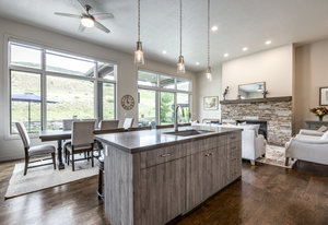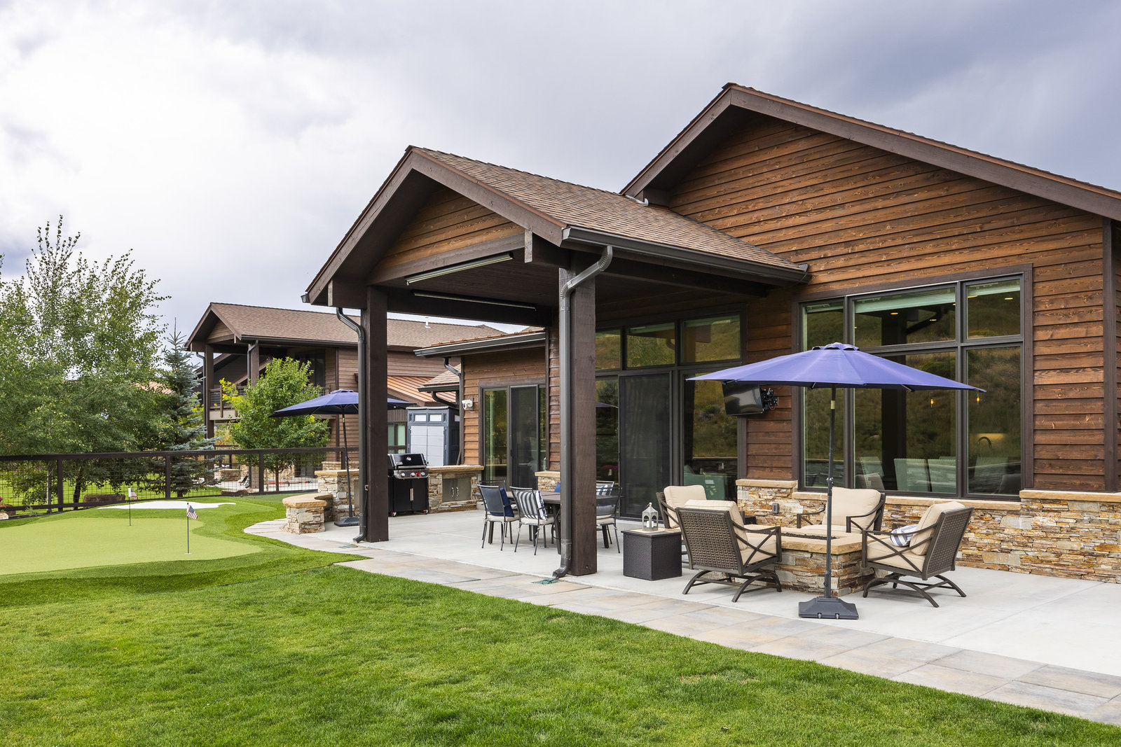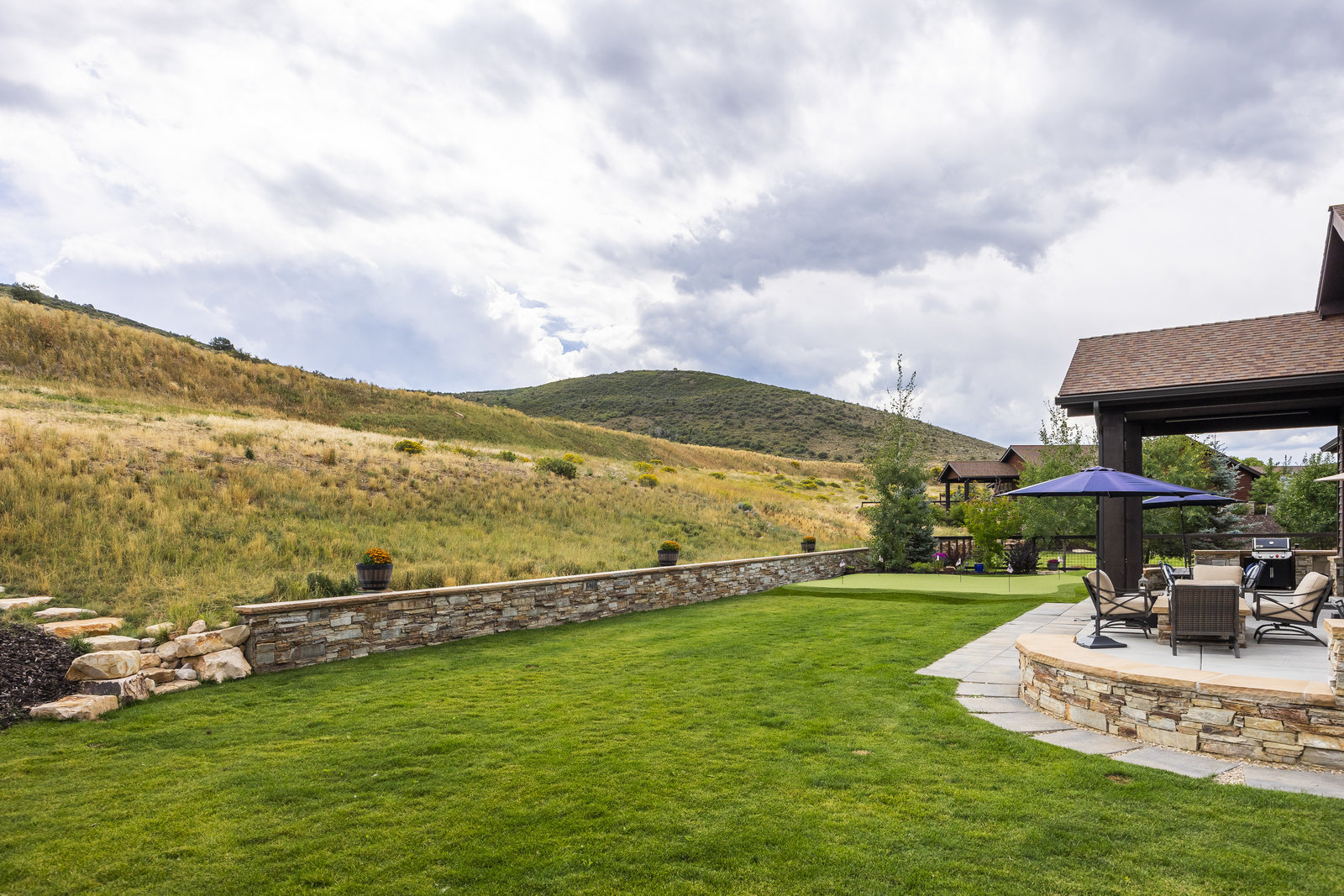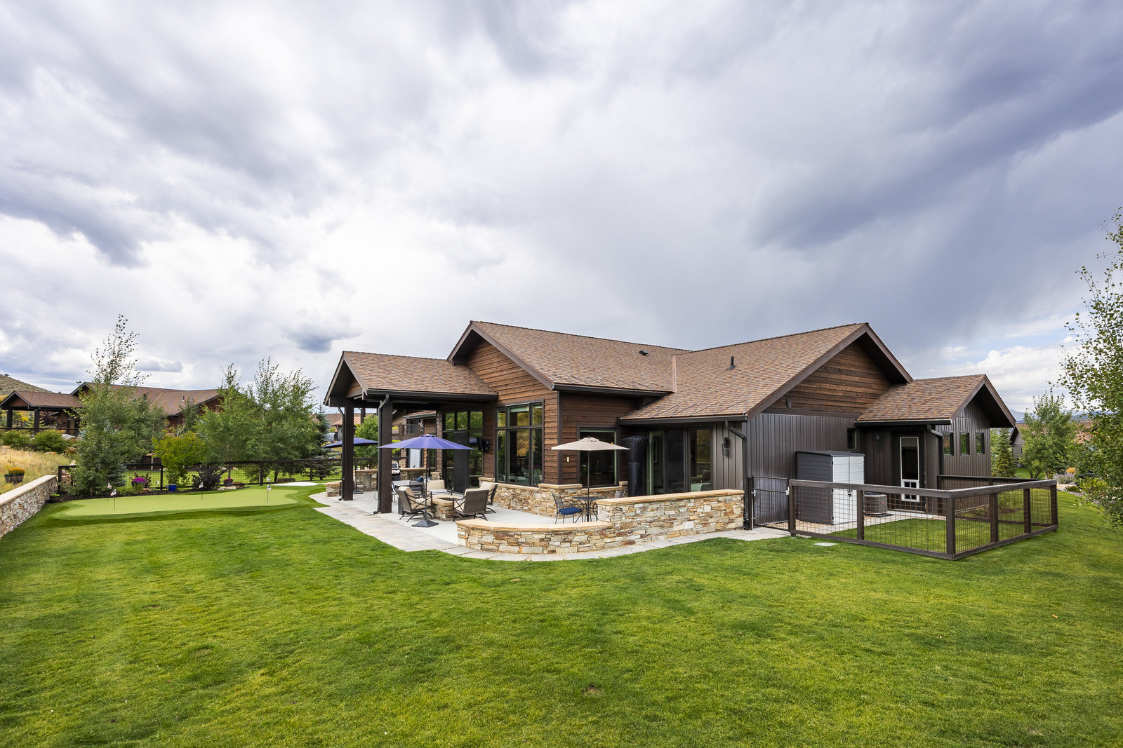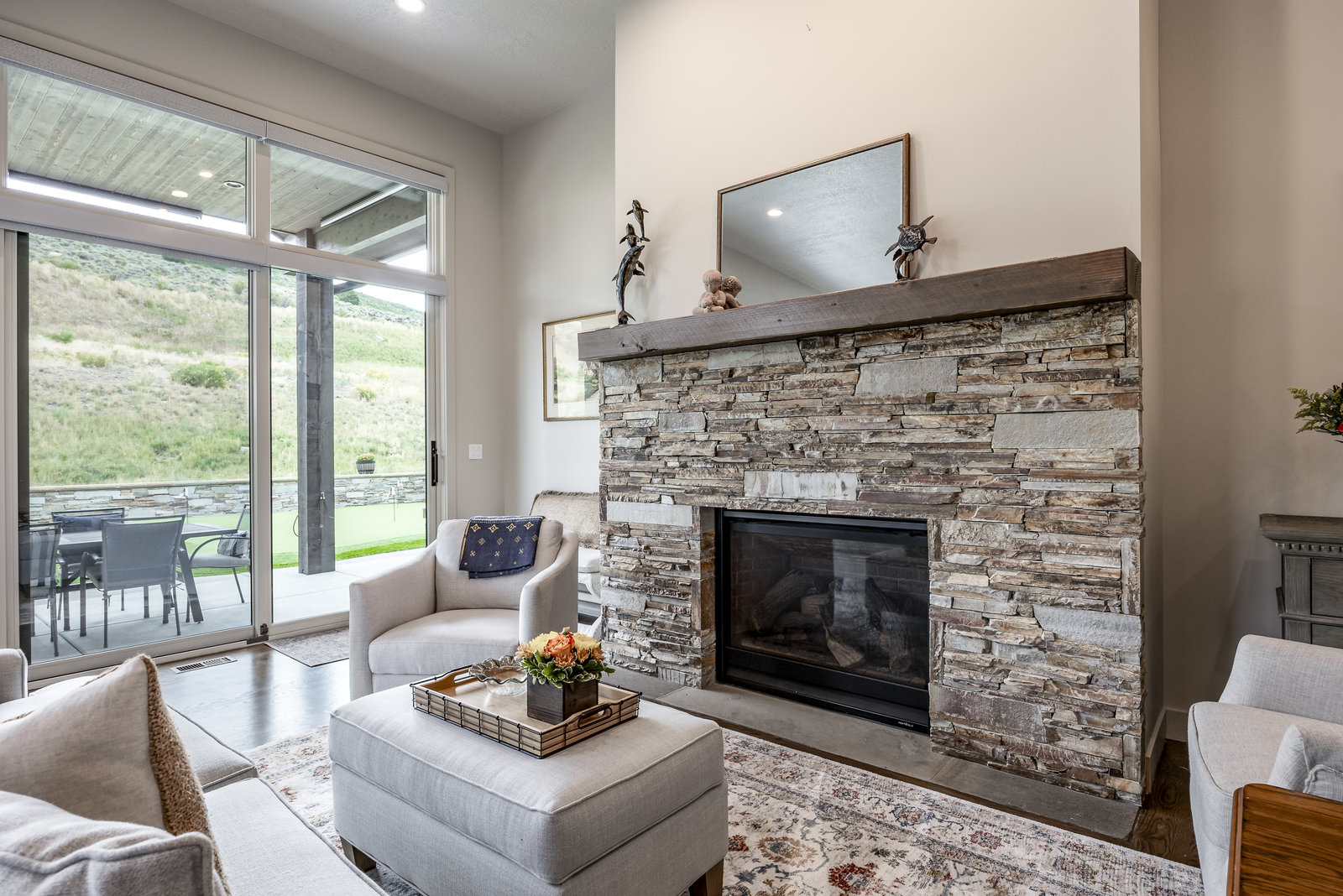 Perfect in every way, you won't find another home like this at High Star Ranch. Impeccably maintained and beautifully designed, this Gateway home has been expanded with comfort and flexibility in mind, all with the ease of main-level living. Featuring an open-concept great room with 14-ft ceilings, a wall of windows gives views of the backyard with no homes behind you, a feeling of openness and privacy. The home has high-end custom finishes by Barclay Butera, including Caesarstone countertops, a Thermador appliance suite, custom cabinets, hardwood flooring, enhanced lighting, electronic blinds, and stone fireplace. A sleek chef's kitchen is accompanied by a Butler's pantry, perfect for hiding away small appliances and coffee station, with extra cabinetry and wine fridge. The primary suite is luxurious and relaxing, with access to the back patio. The newly added 'family suite' consists of either 2 bedrooms ensuite, or a bedroom/den ensuite, providing flexibility for guests or family. On the other side of the home is a beautiful ensuite guest bedroom which also gives access to the back patio. Down the hall is a separate laundry room and dog bath. One more addition is a flex room currently used as an office/den with access to the back side yard and dog run. The home sits back off the road on a .47-acre lot, fully landscaped and finished to every detail, complete with a professional putting green. An extensive patio includes a fire pit to use year-round, a built-in barbecue, outdoor TV, and pull-down shades. Close to grocery, hardware, and shops within a mile. Access hundreds of miles of trails groomed in winter for year-round recreation, walk to free summer concerts. High Star offers a clubhouse, pool, pickleball courts for owners who wish to join for an additional fee. Nearby Uinta Mtns., 20 min. to ski resorts and Park City, and a 50 min. drive to Salt Lake City Int’l Airport.