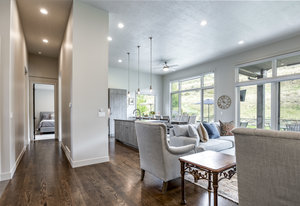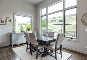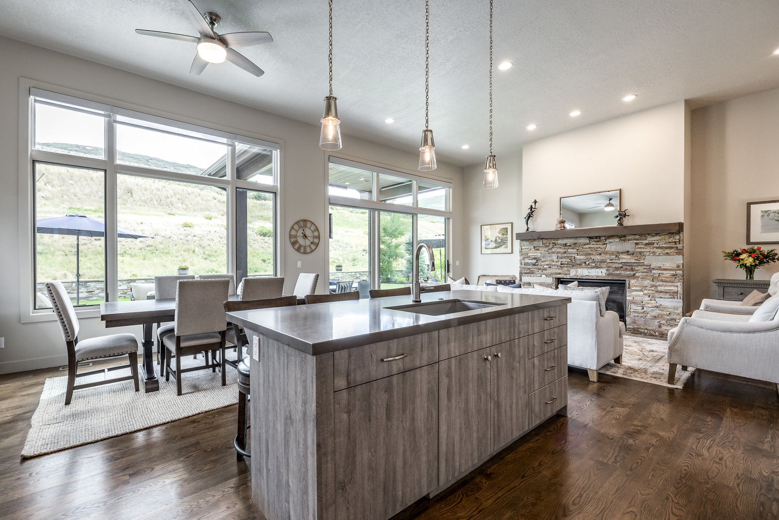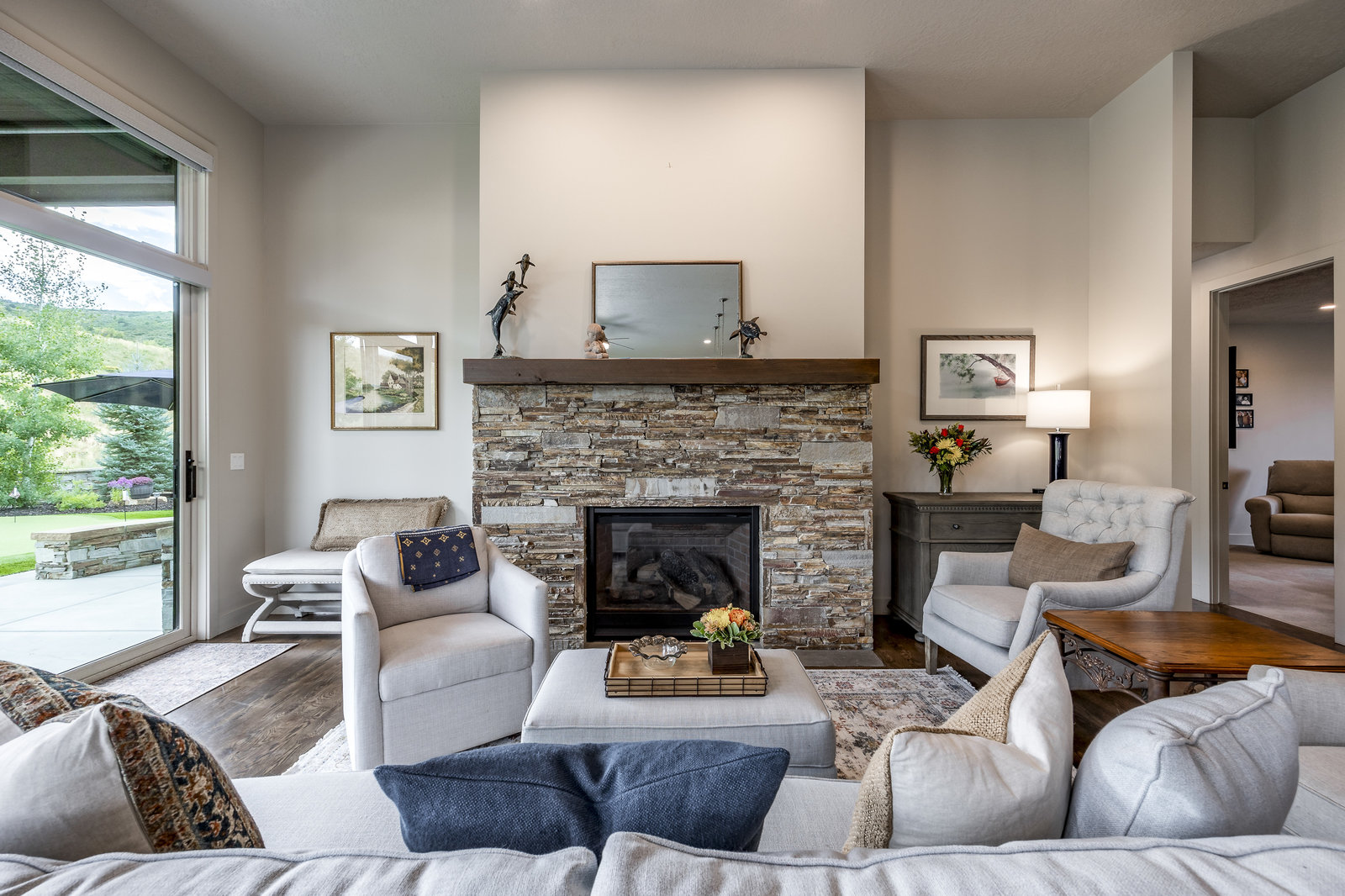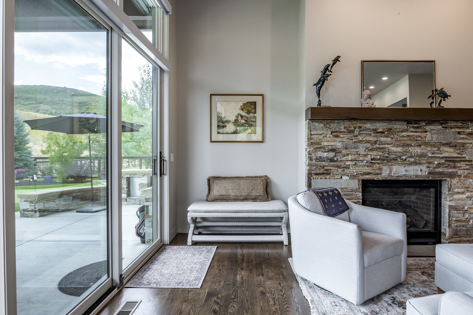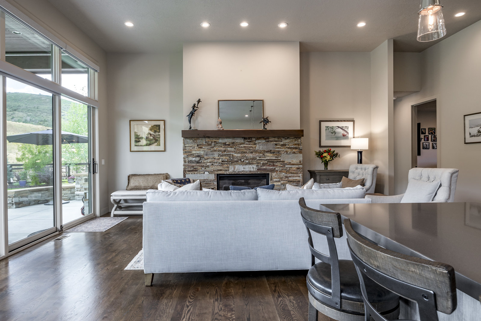 Perfect in every way, you won't find another home like this at High Star Ranch. Impeccably maintained and beautifully designed, this Gateway home has been expanded with comfort and flexibility in mind, all with the ease of main-level living. Featuring an open-concept great room with 14-ft ceilings, a wall of windows gives views of the backyard with no homes behind you, a feeling of openness and privacy. The home has high-end custom finishes by Barclay Butera, including Caesarstone countertops, a Thermador appliance suite, custom cabinets, hardwood flooring, enhanced lighting, electronic blinds, and stone fireplace. A sleek chef's kitchen is accompanied by a Butler's pantry, perfect for hiding away small appliances and coffee station, with extra cabinetry and wine fridge. The primary suite is luxurious and relaxing, with access to the back patio. The newly added 'family suite' consists of either 2 bedrooms ensuite, or a bedroom/den ensuite, providing flexibility for guests or family. On the other side of the home is a beautiful ensuite guest bedroom which also gives access to the back patio. Down the hall is a separate laundry room and dog bath. One more addition is a flex room currently used as an office/den with access to the back side yard and dog run. The home sits back off the road on a .47-acre lot, fully landscaped and finished to every detail, complete with a professional putting green. An extensive patio includes a fire pit to use year-round, a built-in barbecue, outdoor TV, and pull-down shades. Close to grocery, hardware, and shops within a mile. Access hundreds of miles of trails groomed in winter for year-round recreation, walk to free summer concerts. High Star offers a clubhouse, pool, pickleball courts for owners who wish to join for an additional fee. Nearby Uinta Mtns., 20 min. to ski resorts and Park City, and a 50 min. drive to Salt Lake City Int’l Airport.