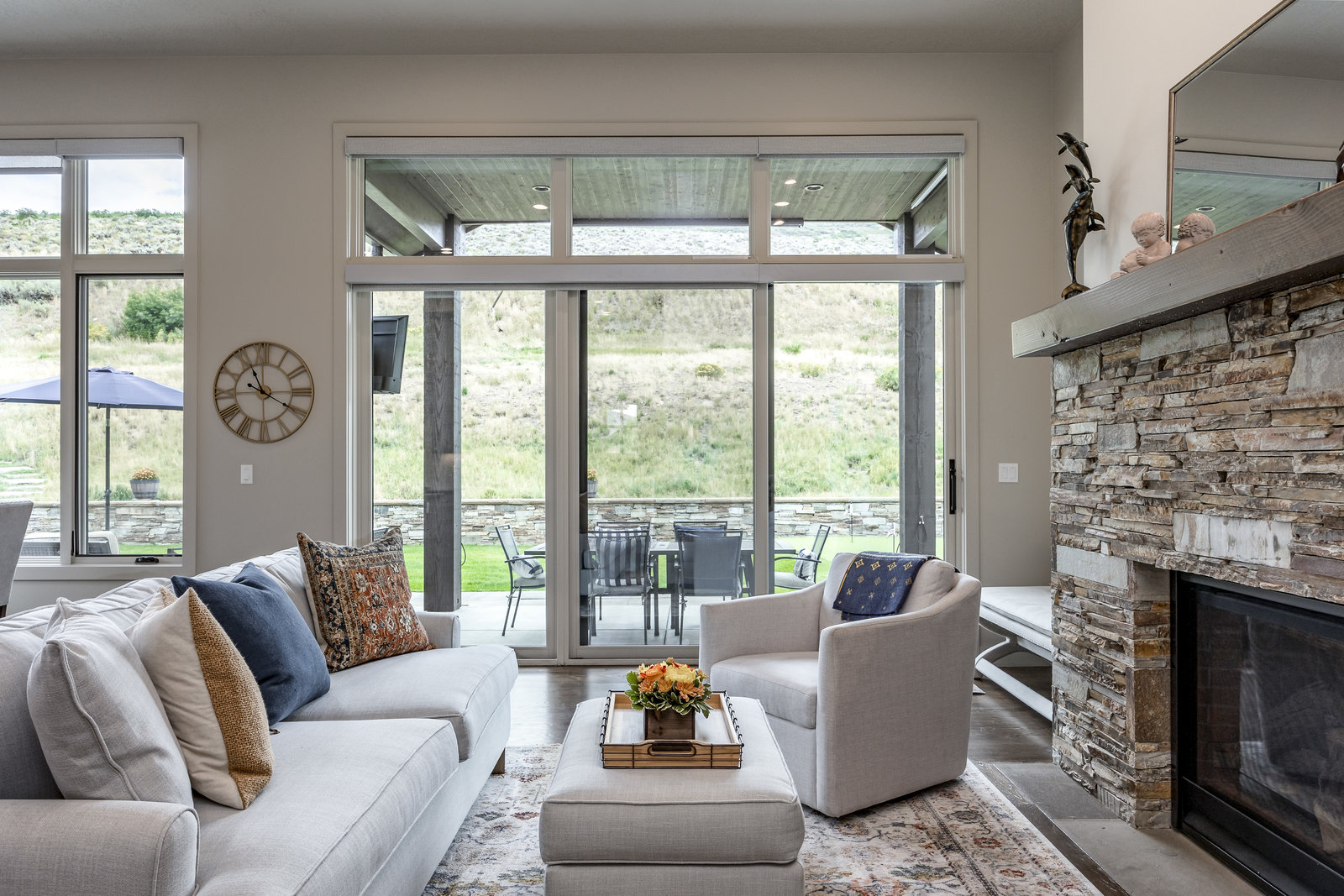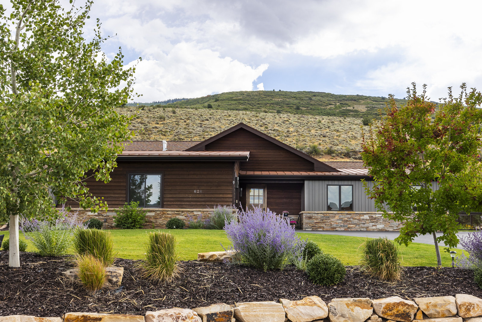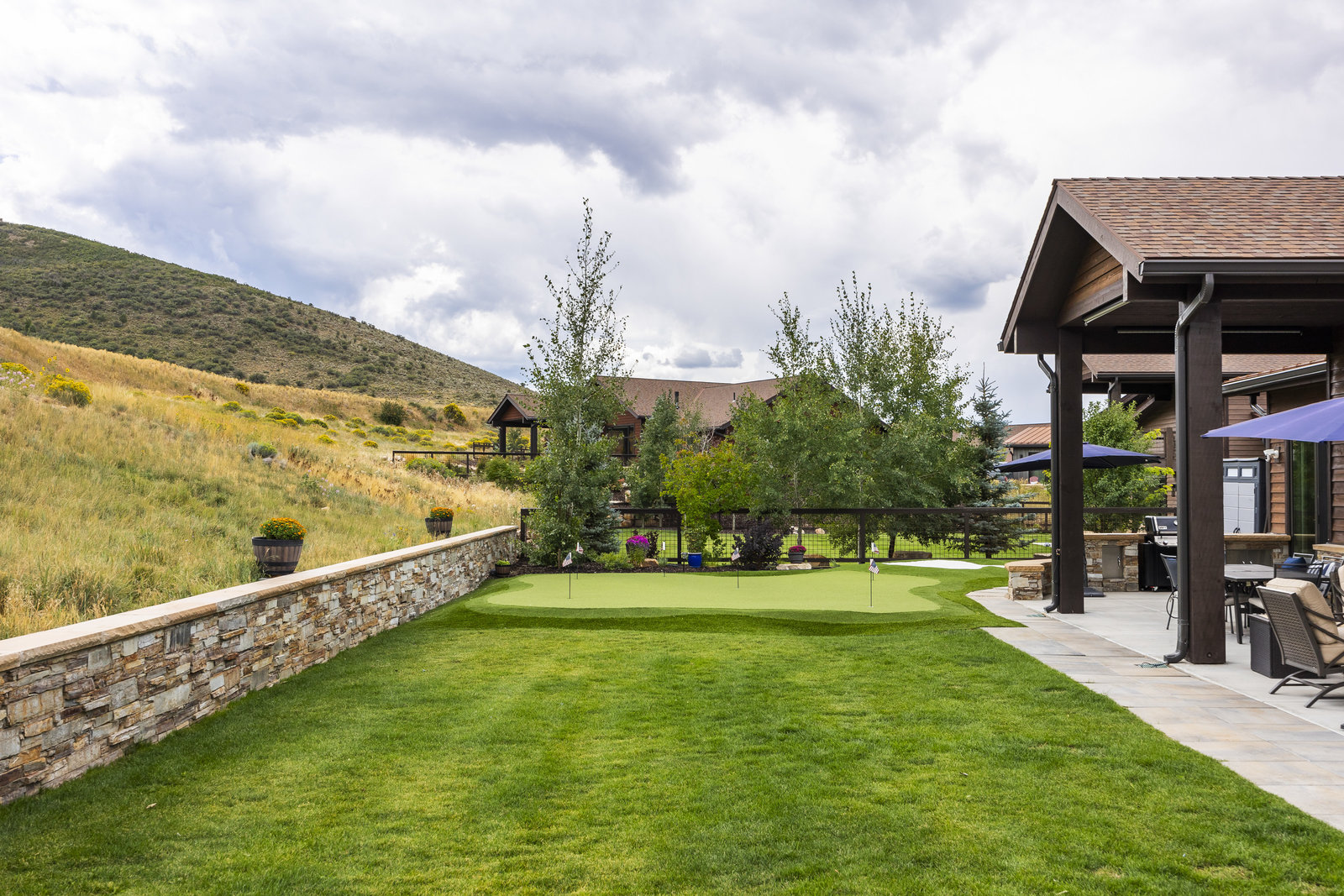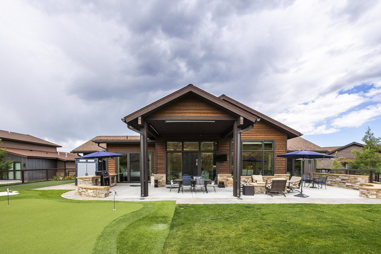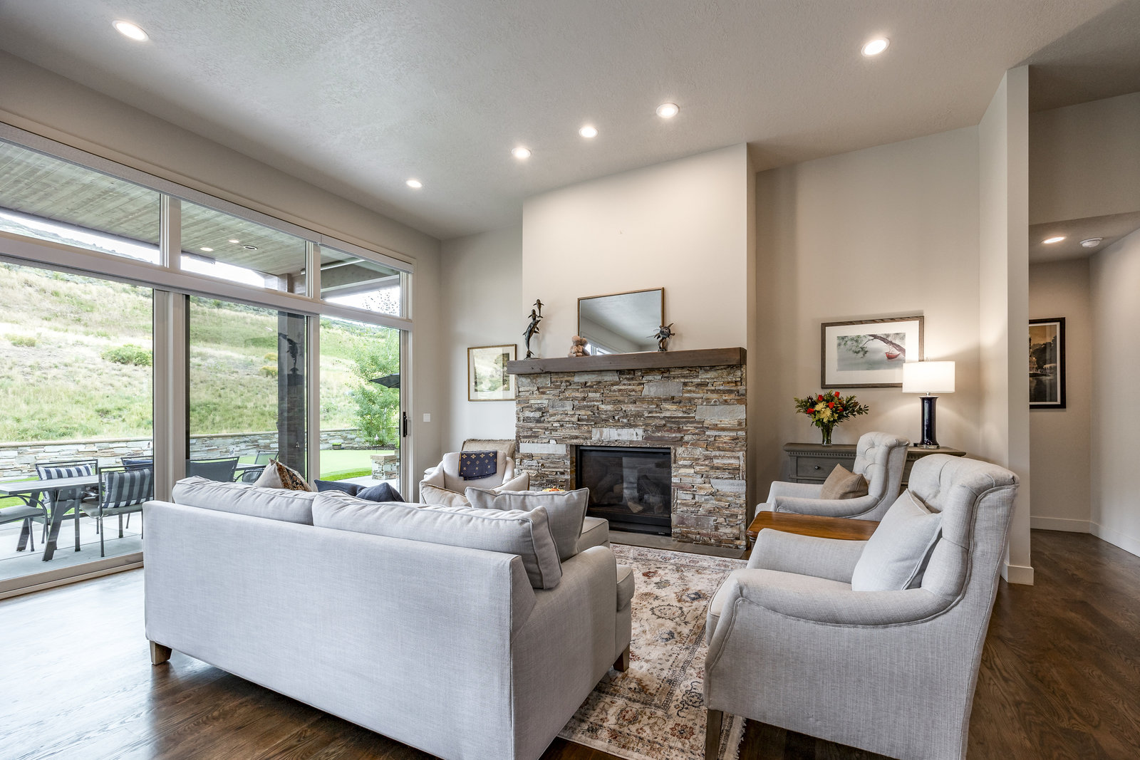 Perfect in every way, you won't find another home like this at High Star Ranch. Impeccably maintained and beautifully designed, this Gateway home has been expanded with comfort and flexibility in mind, all with the ease of main-level living. Featuring an open-concept great room with 14-ft ceilings, a wall of windows gives views of the backyard with no homes behind you, a feeling of openness and privacy. The home has high-end custom finishes by Barclay Butera, including Caesarstone countertops, a Thermador appliance suite, custom cabinets, hardwood flooring, enhanced lighting, electronic blinds, and stone fireplace. A sleek chef's kitchen is accompanied by a Butler's pantry, perfect for hiding away small appliances and coffee station, with extra cabinetry and wine fridge. The primary suite is luxurious and relaxing, with access to the back patio. The newly added 'family suite' consists of either 2 bedrooms ensuite, or a bedroom/den ensuite, providing flexibility for guests or family. On the other side of the home is a beautiful ensuite guest bedroom which also gives access to the back patio. Down the hall is a separate laundry room and dog bath. One more addition is a flex room currently used as an office/den with access to the back side yard and dog run. The home sits back off the road on a .47-acre lot, fully landscaped and finished to every detail, complete with a professional putting green. An extensive patio includes a fire pit to use year-round, a built-in barbecue, outdoor TV, and pull-down shades. Close to grocery, hardware, and shops within a mile. Access hundreds of miles of trails groomed in winter for year-round recreation, walk to free summer concerts. High Star offers a clubhouse, pool, pickleball courts for owners who wish to join for an additional fee. Nearby Uinta Mtns., 20 min. to ski resorts and Park City, and a 50 min. drive to Salt Lake City Int’l Airport.
