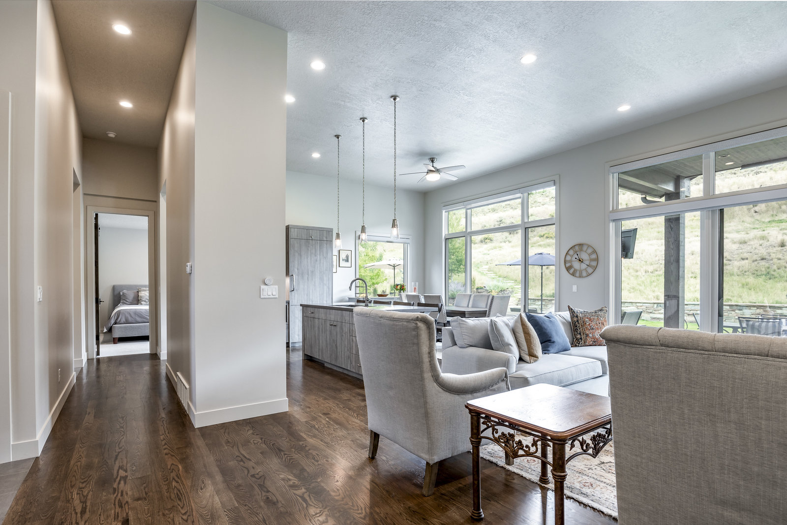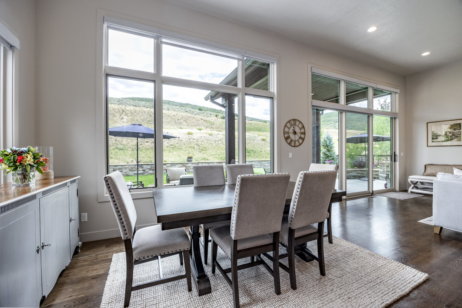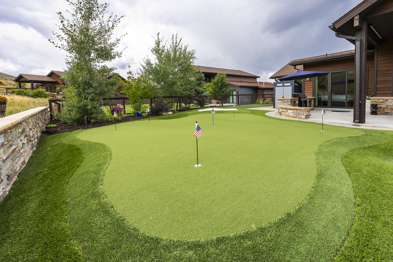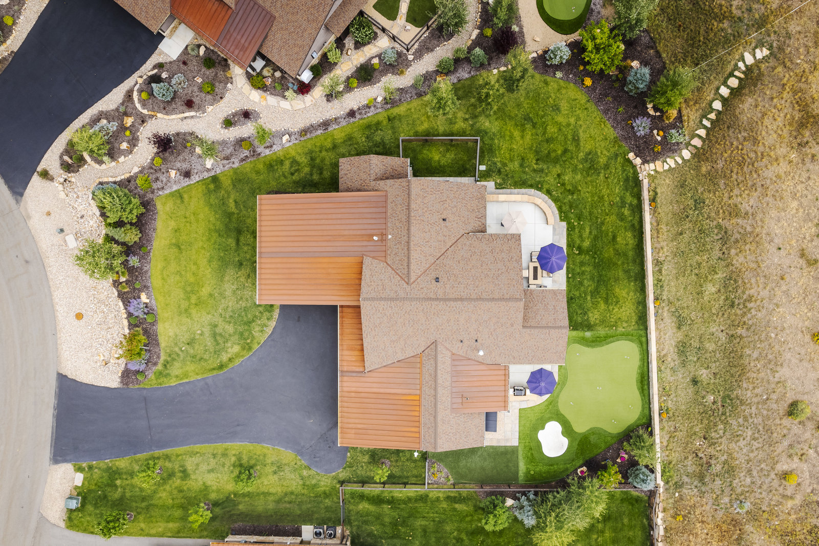 Perfect in every way, you won't find another home like this at High Star Ranch. Impeccably maintained and beautifully designed, this Gateway home has been expanded with comfort and flexibility in mind, all with the ease of main-level living. Featuring an open-concept great room with 14-ft ceilings, a wall of windows gives views of the backyard with no homes behind you, a feeling of openness and privacy. The home has high-end custom finishes by Barclay Butera, including Caesarstone countertops, a Thermador appliance suite, custom cabinets, hardwood flooring, enhanced lighting, electronic blinds, and stone fireplace. A sleek chef's kitchen is accompanied by a Butler's pantry, perfect for hiding away small appliances and coffee station, with extra cabinetry and wine fridge. The primary suite is luxurious and relaxing, with access to the back patio. The newly added 'family suite' consists of either 2 bedrooms ensuite, or a bedroom/den ensuite, providing flexibility for guests or family. On the other side of the home is a beautiful ensuite guest bedroom which also gives access to the back patio. Down the hall is a separate laundry room and dog bath. One more addition is a flex room currently used as an office/den with access to the back side yard and dog run. The home sits back off the road on a .47-acre lot, fully landscaped and finished to every detail, complete with a professional putting green. An extensive patio includes a fire pit to use year-round, a built-in barbecue, outdoor TV, and pull-down shades. Close to grocery, hardware, and shops within a mile. Access hundreds of miles of trails groomed in winter for year-round recreation, walk to free summer concerts. High Star offers a clubhouse, pool, pickleball courts for owners who wish to join for an additional fee. Nearby Uinta Mtns., 20 min. to ski resorts and Park City, and a 50 min. drive to Salt Lake City Int’l Airport.