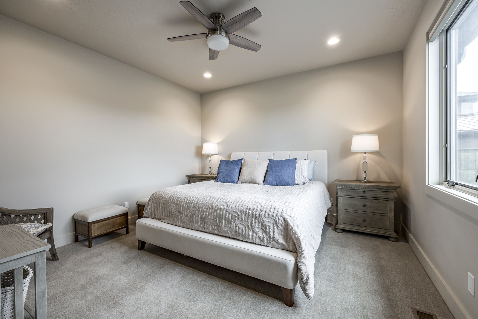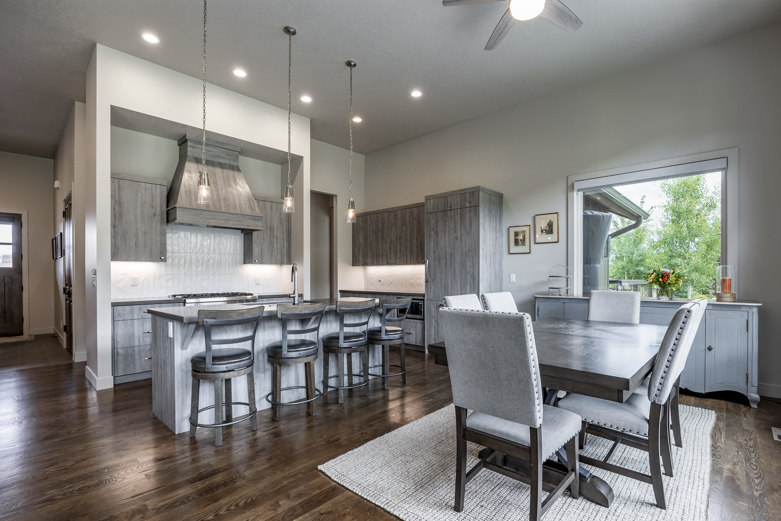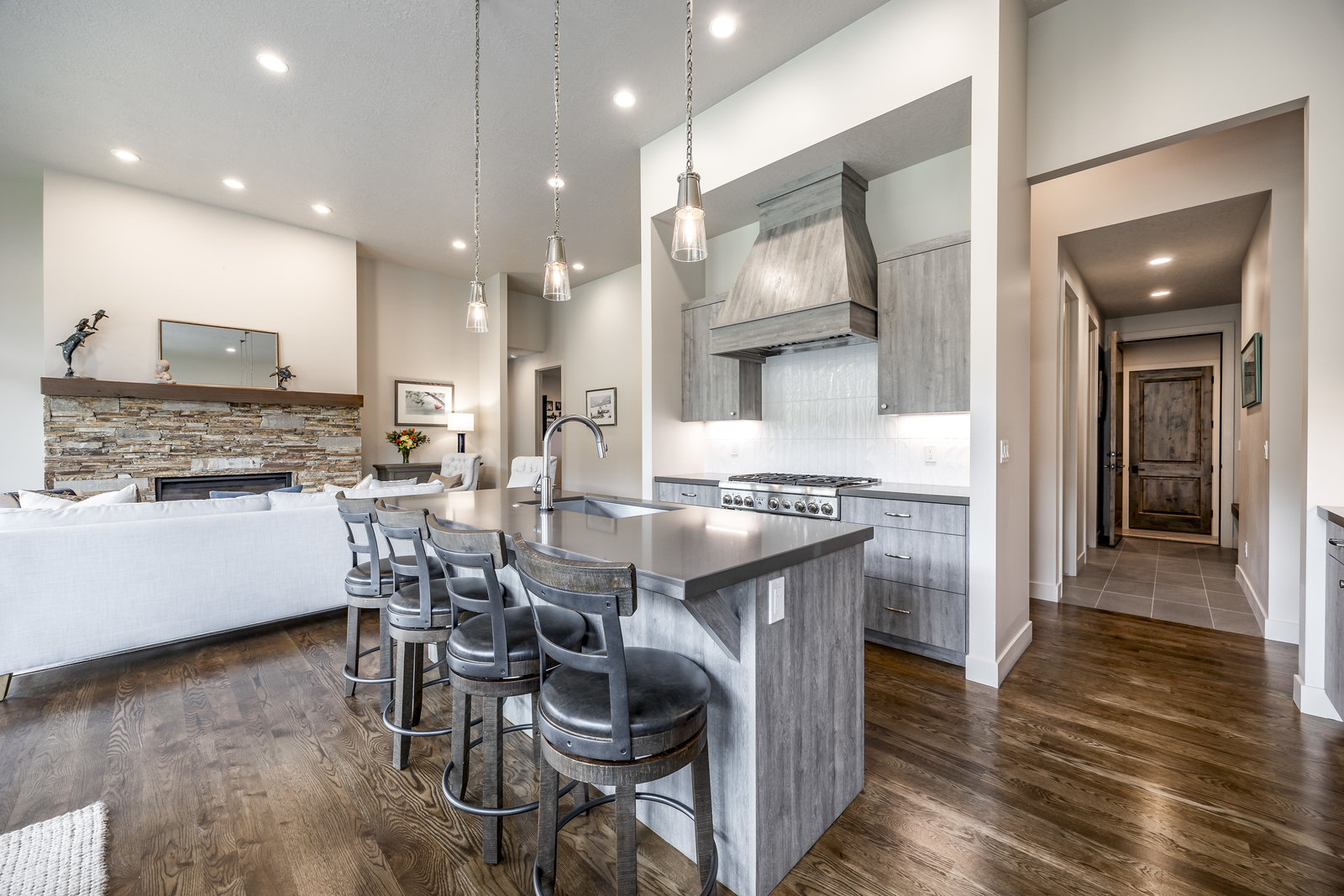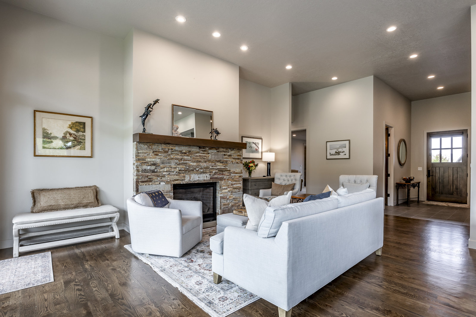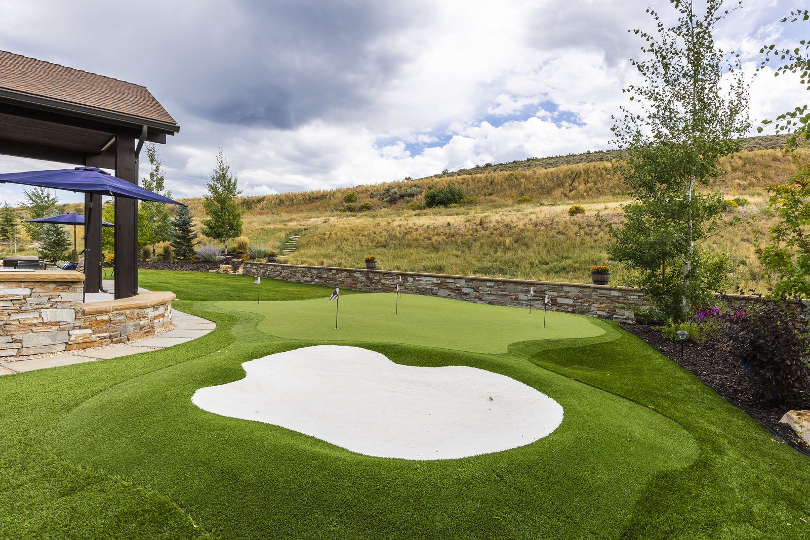 Perfect in every way, you won't find another home like this at High Star Ranch. Impeccably maintained and beautifully designed, this Gateway home has been expanded with comfort and flexibility in mind, all with the ease of main-level living. Featuring an open-concept great room with 14-ft ceilings, a wall of windows gives views of the backyard with no homes behind you, a feeling of openness and privacy. The home has high-end custom finishes by Barclay Butera, including Caesarstone countertops, a Thermador appliance suite, custom cabinets, hardwood flooring, enhanced lighting, electronic blinds, and stone fireplace. A sleek chef's kitchen is accompanied by a Butler's pantry, perfect for hiding away small appliances and coffee station, with extra cabinetry and wine fridge. The primary suite is luxurious and relaxing, with access to the back patio. The newly added 'family suite' consists of either 2 bedrooms ensuite, or a bedroom/den ensuite, providing flexibility for guests or family. On the other side of the home is a beautiful ensuite guest bedroom which also gives access to the back patio. Down the hall is a separate laundry room and dog bath. One more addition is a flex room currently used as an office/den with access to the back side yard and dog run. The home sits back off the road on a .47-acre lot, fully landscaped and finished to every detail, complete with a professional putting green. An extensive patio includes a fire pit to use year-round, a built-in barbecue, outdoor TV, and pull-down shades. Close to grocery, hardware, and shops within a mile. Access hundreds of miles of trails groomed in winter for year-round recreation, walk to free summer concerts. High Star offers a clubhouse, pool, pickleball courts for owners who wish to join for an additional fee. Nearby Uinta Mtns., 20 min. to ski resorts and Park City, and a 50 min. drive to Salt Lake City Int’l Airport.