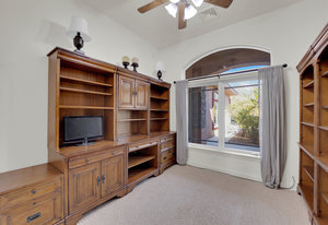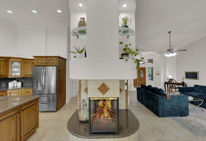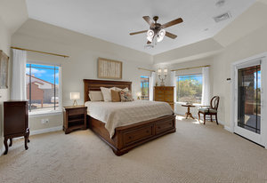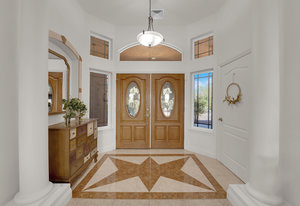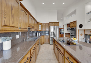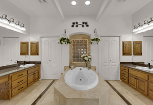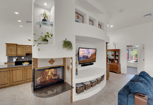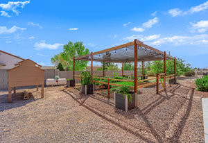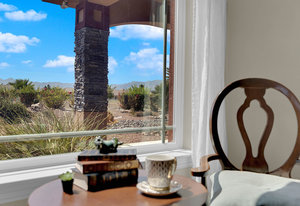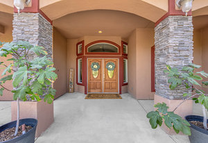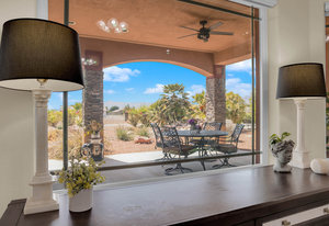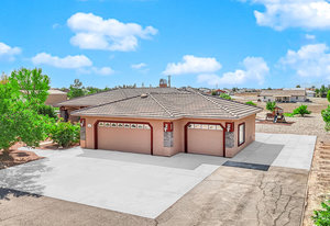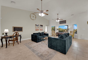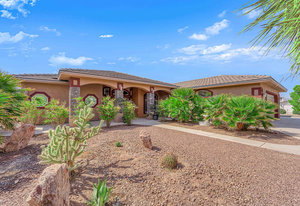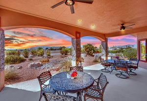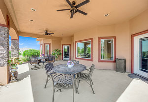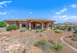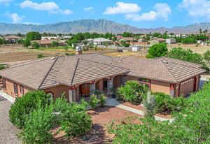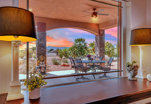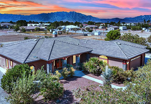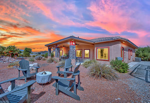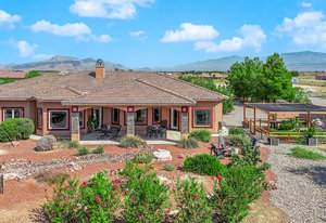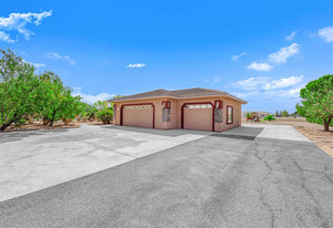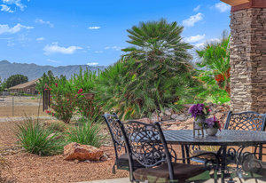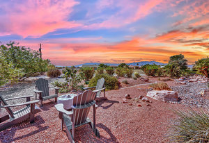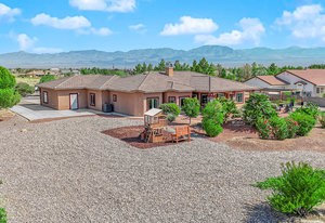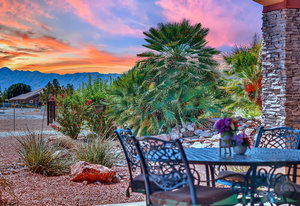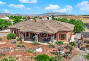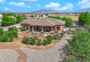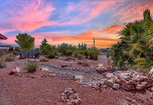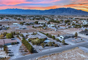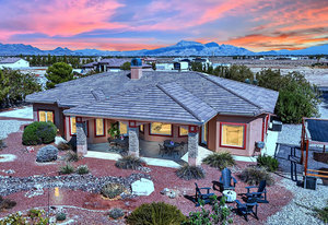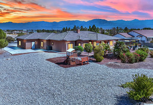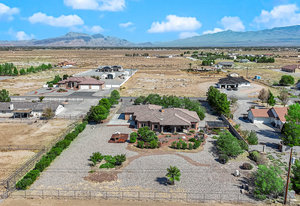 Experience the tranquil Moose Estate in the land of sunsets, beautiful Pahrump Valley. This custom desert retreat inspires Zen and picturesque moments of stargazing, sunset chasing, gardening, tending to the orchard, and walks thru the willow lined trails and creek beds. Hidden in the lush landscaping this luxury home is adorned with every modern finish invoking effortless living and entertaining. From the chefs kitchen to the wet bar and 3 way fire place in the great room, this entertainers delight has bay windows along the length of the back of the home w/ doors leading to the covered back porch enclave to enjoy seamless outdoor activities. Maximum relaxation is found in the primary suites ...