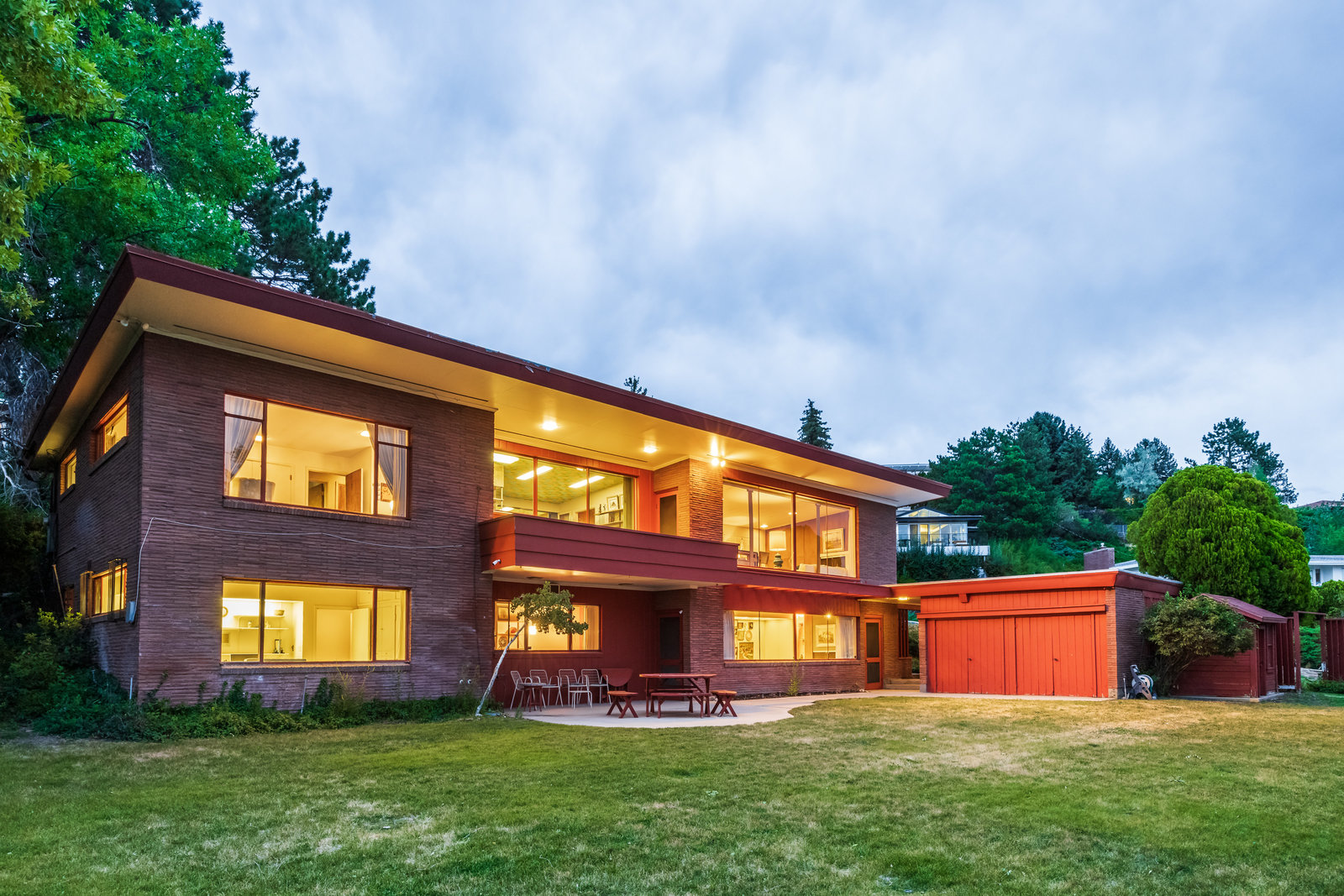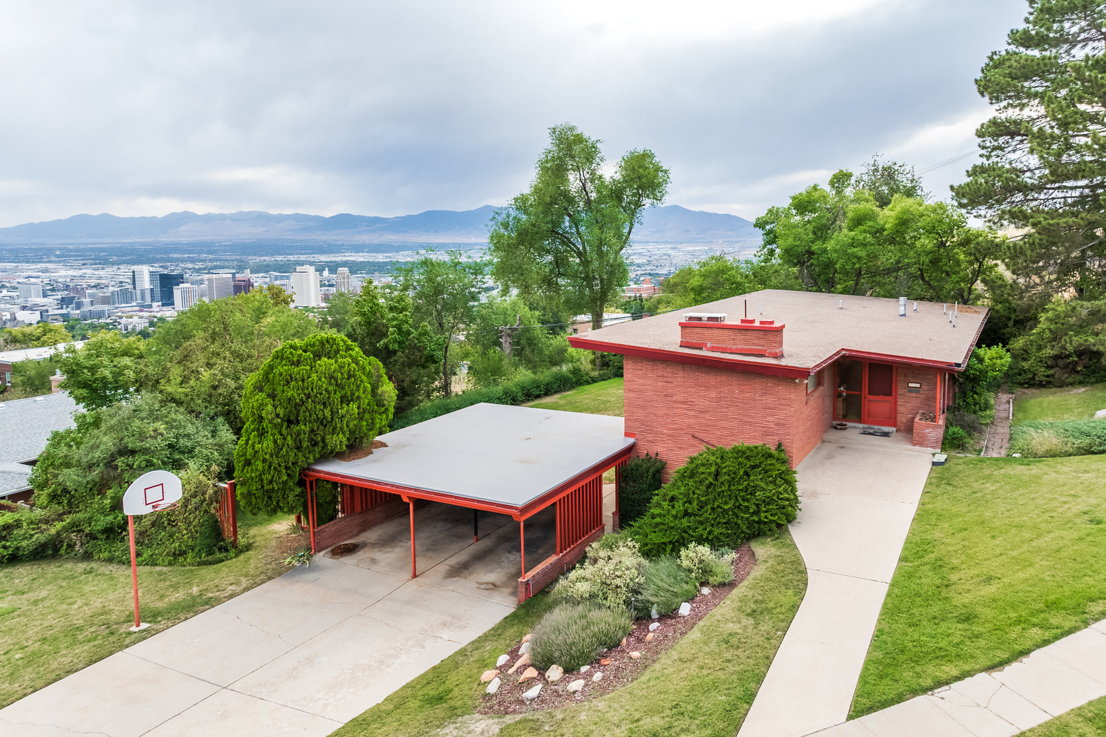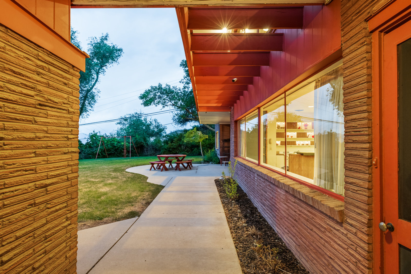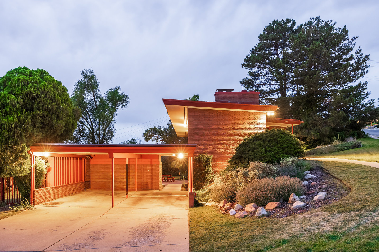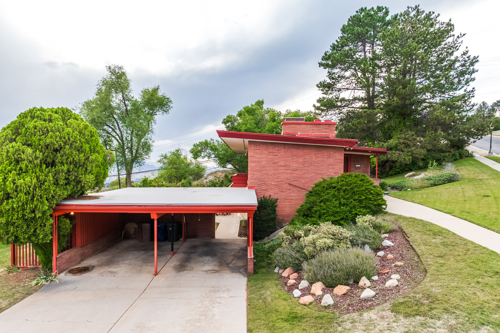 The Frances Edna Johnson Darger home, designed by Dick Jackson of Jackson & Jackson, is more than just a residence; it is a testament to Frances’s adventurous spirit and artistic vision. This mid-century prize, perhaps subtly influenced by the works of Frank Lloyd Wright, reflects the inspiration she drew from visiting his homes. Enamored by the rich warmth of reddish Roman brick, she selected it to adorn the exterior, perfectly complementing the long, low lines of its ranch-style architecture. Being tall herself, Frances envisioned a space with tall ceilings; the shed roofline achieved this while simultaneously framing the sweeping valley views below. The carport, integrated into the natural slope of the lot, anchors the home nicely.