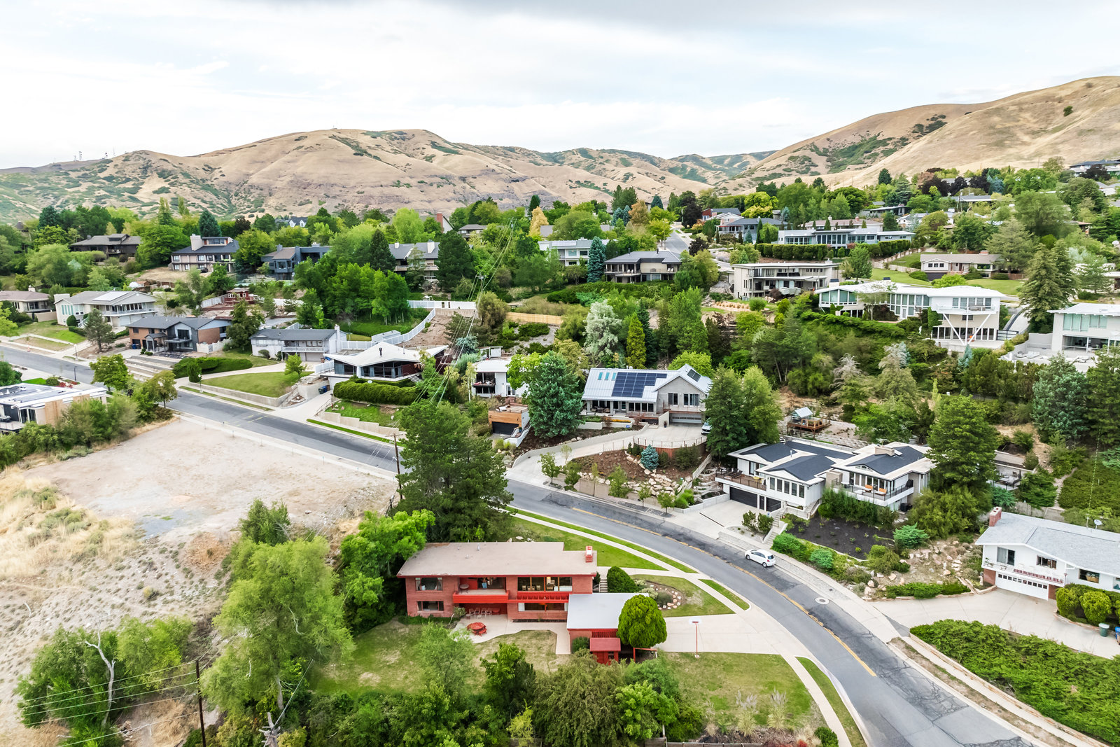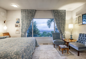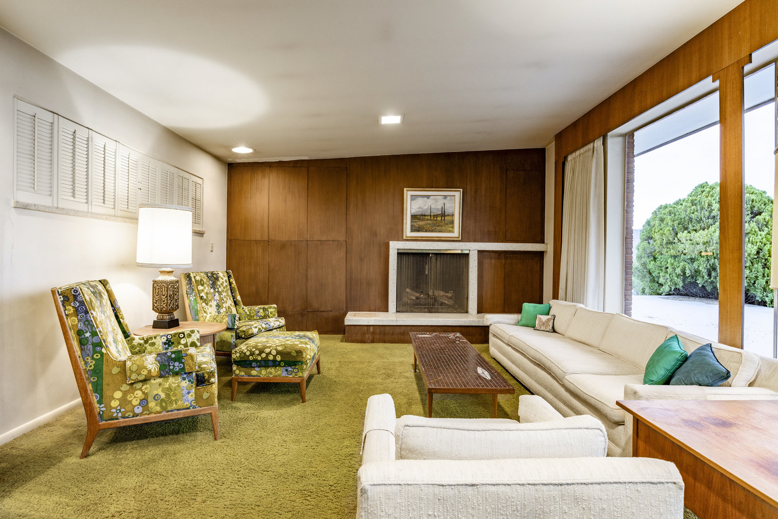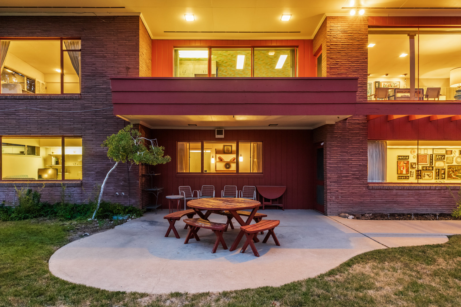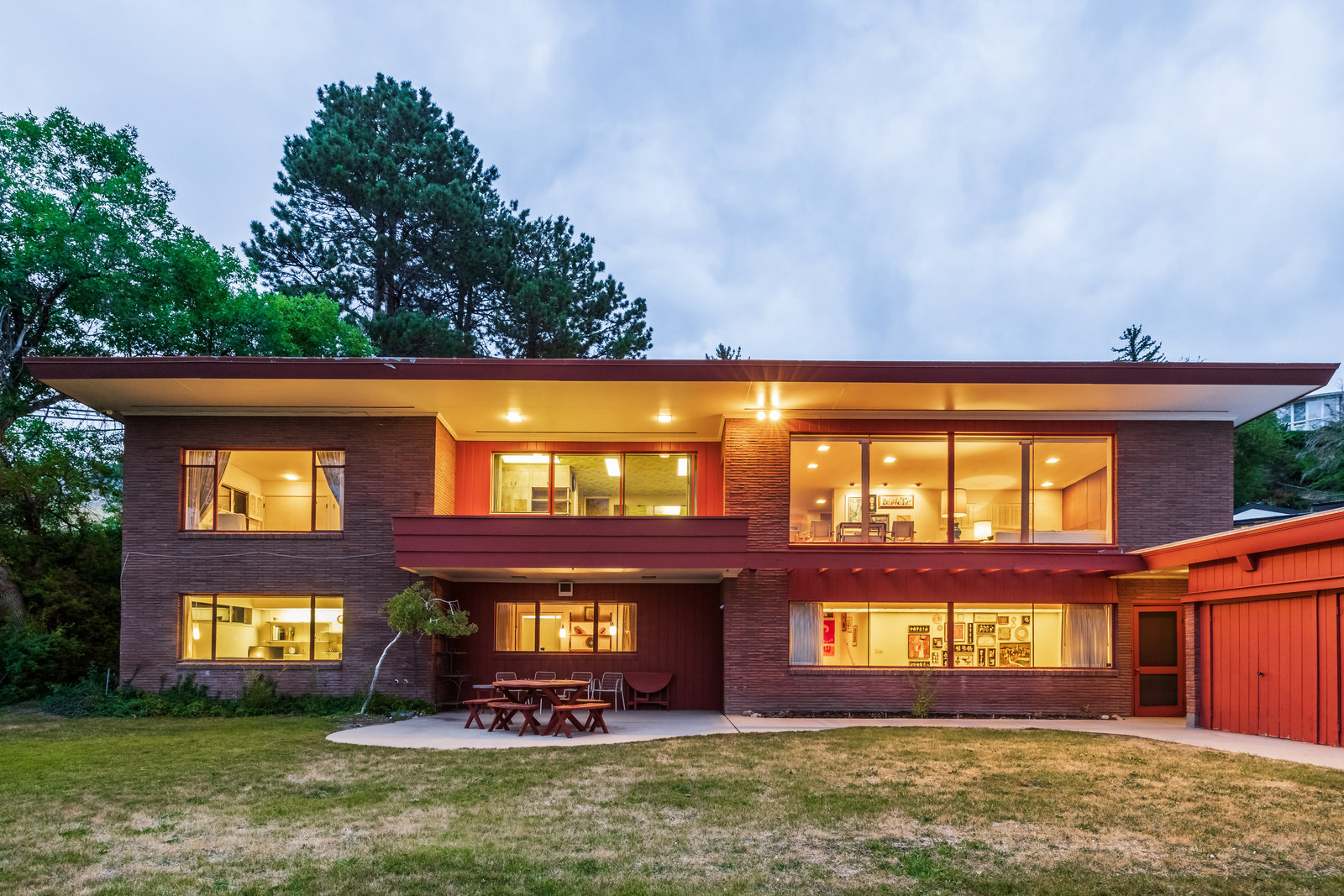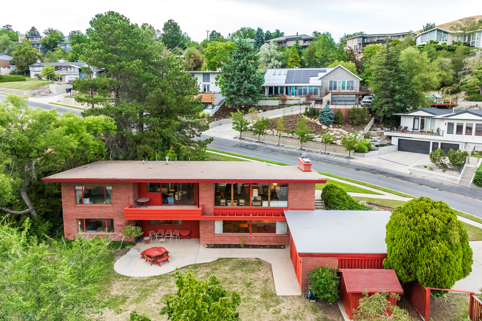 The Frances Edna Johnson Darger home, designed by Dick Jackson of Jackson & Jackson, is more than just a residence; it is a testament to Frances’s adventurous spirit and artistic vision. This mid-century prize, perhaps subtly influenced by the works of Frank Lloyd Wright, reflects the inspiration she drew from visiting his homes. Enamored by the rich warmth of reddish Roman brick, she selected it to adorn the exterior, perfectly complementing the long, low lines of its ranch-style architecture. Being tall herself, Frances envisioned a space with tall ceilings; the shed roofline achieved this while simultaneously framing the sweeping valley views below. The carport, integrated into the natural slope of the lot, anchors the home nicely.