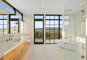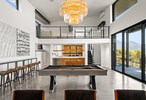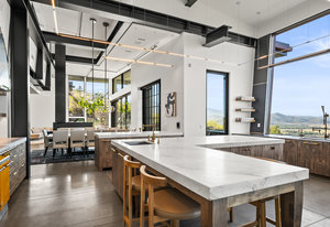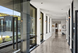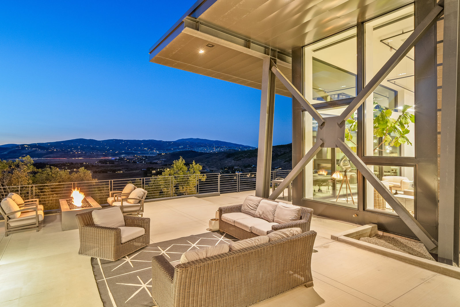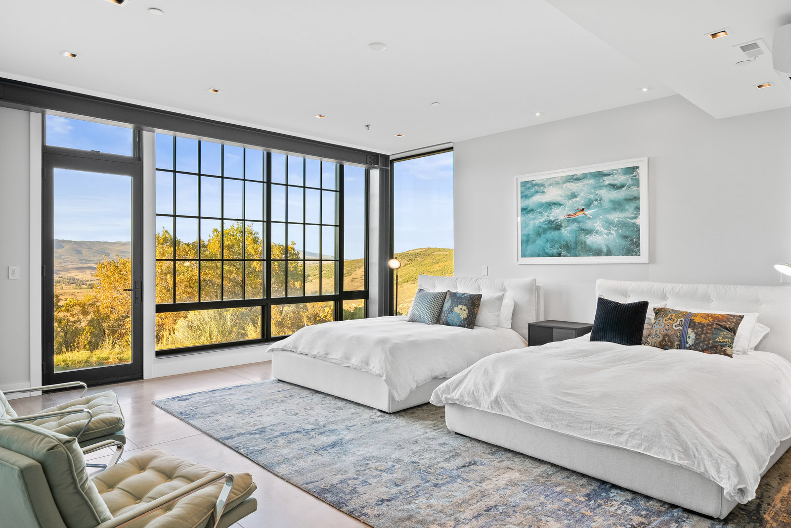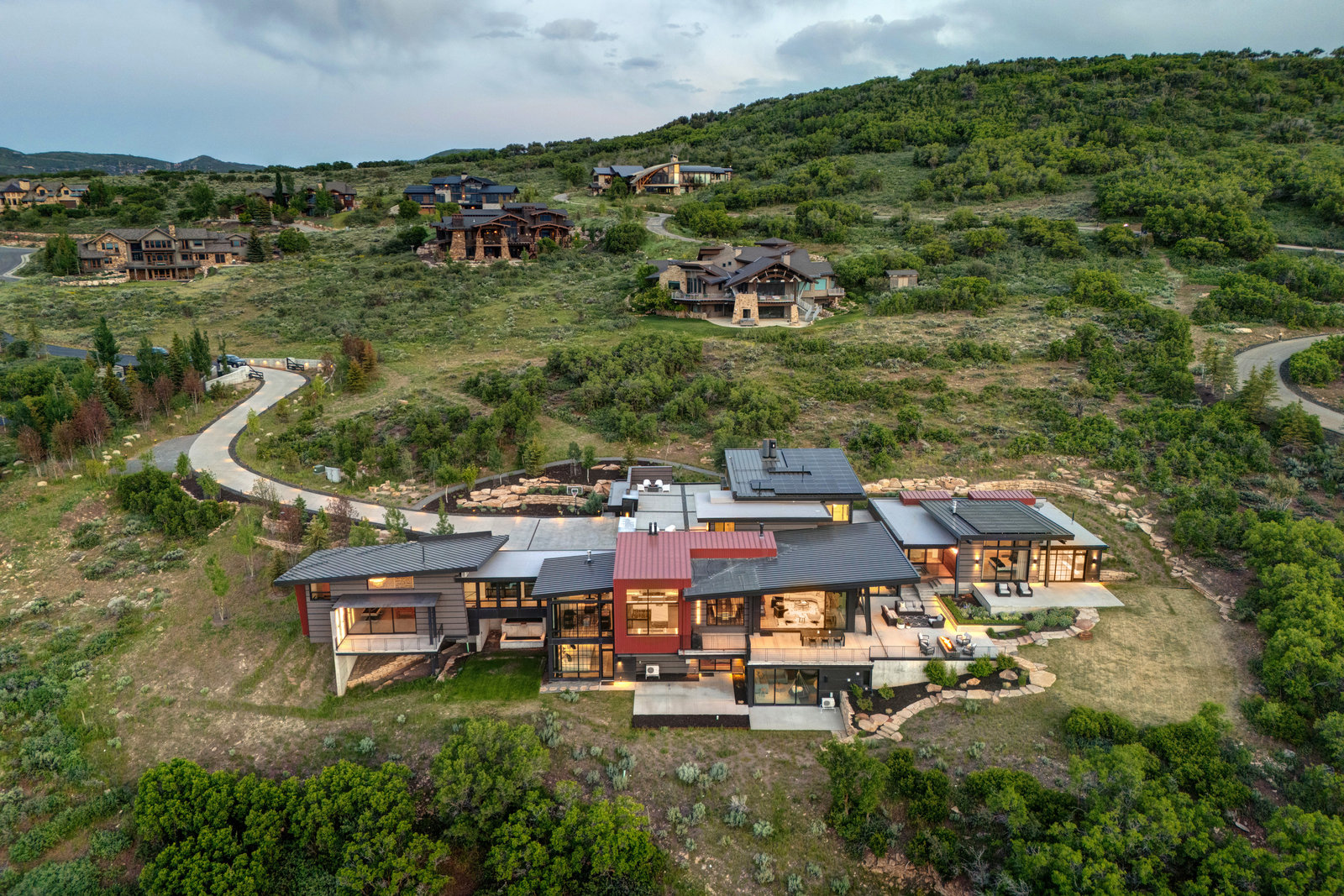 Introducing Sky’s Edge, an extraordinary mountain retreat in the desirable Park Meadows neighborhood just minutes from world-class skiing and charming Main Street. Designed by Jean-Yves Lacroix and built by GoWest Development, Sky’s Edge represents architecture in its purest form, with the structure of the home visible and the industrial elements of concrete, steel, and glass balanced by warm patinas, soft curves, and elegant custom lighting. This stunning property opens to an inviting sitting room with a standing fireplace and floor-to-ceiling views of the breathtaking valley and mountain range in the distance. An open-concept living area includes a gourmet kitchen, dining, and gathering area with oversized glass sliders leading to heated decks and terraces for easy indoor-outdoor living. A spacious primary suite is anchored by a grand fireplace and private terrace, with two separate, luxurious bathrooms with their own entrances and oversized walk-in closets. A floating sky bridge leads to the entertainment wing, which could also serve as a sixth guest suite. In addition to multiple family rooms, a home theater, hot tub, and office, guests will enjoy the privacy of an oversized guest suite with its own entrance and expansive deck and terrace. Three additional bedroom suites on the lower level enjoy mountain views, the convenience of private decks, and easy indoor/outdoor living.