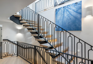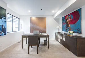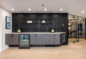 An intentionally selected and refined interior palette brings together floor to ceiling glass, solid wood detailing, quartzite and marble surfaces, soapstone countertops, and Shou Sugi Ban wood accents woven throughout the home. Steel and stone introduce subtle contrast, while custom millwork carries warmth and continuity from level to level. Floating staircases and the wine display are integrated seamlessly into the architecture, reinforcing a cohesive and considered design. Art collectors will appreciate the ample wall space throughout the home, offering an ideal setting for showcasing a curated collection.