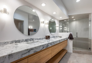 Multiple gathering spaces throughout the house provide flexibility for entertaining and everyday living, including a lower level equipped with a second kitchen, currently configured as a gym and wellness space. Two primary suites offer well proportioned retreats with expansive windows and spa inspired baths. Three additional ensuite bedrooms provide flexibility for guests or office space, with a layout that reflects the homes thoughtful planning and balance.