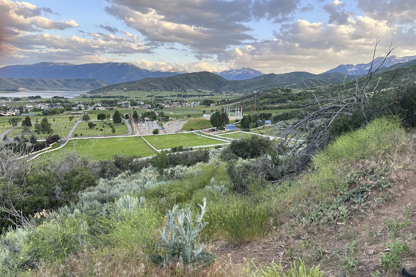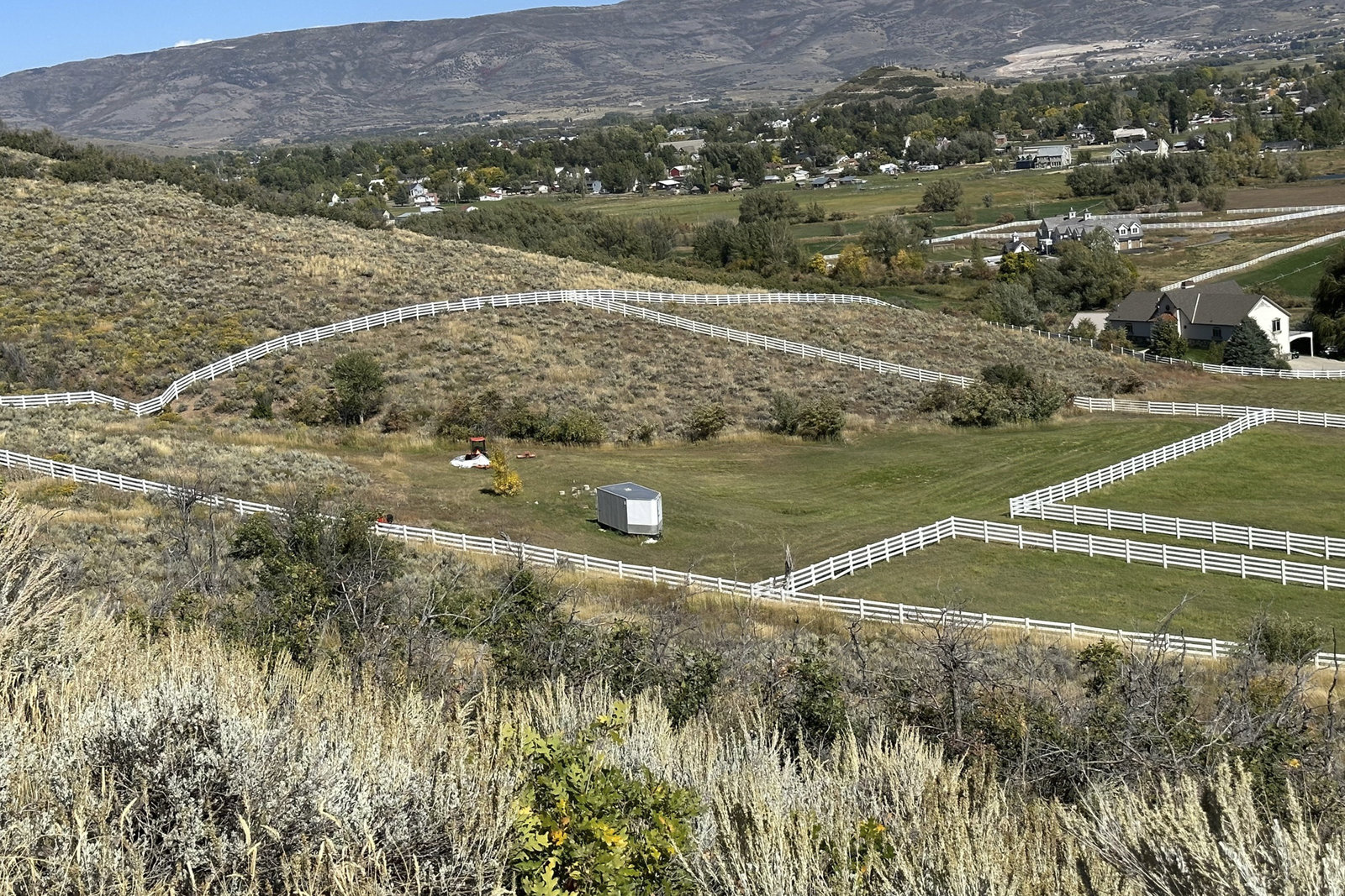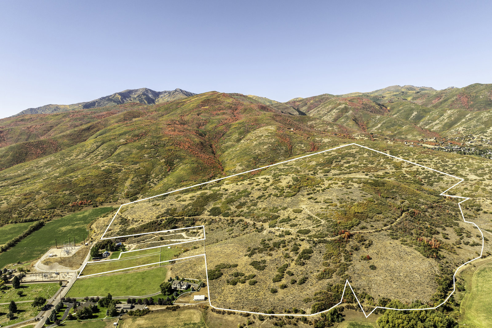 Perhaps, the only remaining trophy undeveloped large acreage estate parcel in Park City/Midway nestled up elevation into the Wasatch Range, combining a spectacular mountain setting with irrigated fields below. Alternatives have long ago been subdivided out or deed restricted. 67.48 acres (plus additional 5-acre irrigated field) in Midway for a total of 72.48 acres. Wooded uplands and foothills high above and overlooking Midway, Heber Valley, and multiple large estate pasture lands at the foot of the parcel (the most recent selling for $375,000 /acre). Rich natural vegetation and fall foliage benefitting from an elevated and predominantly easterly (much more moist) exposure. 1.5 shares of Midway Irrigation Co. plus 5 more shares with the irrigated field for a total of 19.5-acre feet. Elevations run over 300 feet from 5585 ft. elevation to 5980 ft. Access directly from 500 South via 5 acre irrigated parcel. The ultimate viewsheds in Midway, with elevated views -from far above the valley floor -in all directions including Mt. Timpanogos, the High Uintas, Deer Creek reservoir, and some of the Wasatch's tallest peaks. Offering: extraordinary 360-degree elevated views, terrain for premier equestrian and other recreational activities, (if pursued) major tax deduction benefits, and private recreational access to thousands of acres of State Park foothill /mountain /mountainvalley lands to which the public has little access. Nearby 1.17 miles to Midway's Main Street and 2.75 miles to Soldier Hollow Golf Course and Olympic Nordic Center. Travel time. Heber Valley Airport 12 minutes, Deer Valley Deer Crest Gondola 19 minutes, Jordanelle Reservoir 19 minutes, Park City Main Street 25 minutes, Provo 35 minutes, SLC Airport 53 minutes. Bordered on the east: Predominantly bordered and protected by the private 80-acre Estate of a prominent owner (Bear North overlooks from above) which includes prime irrigated fields and horse grounds in permanent preservation. On the west and north: Bordered and protected by l000's of acres of Wasatch State Park recreational mountain lands, predominantly inaccessible to the public but serving as the property's virtually private mountain recreation playground. On the south: Bordered and protected on the south by the Bear South property.