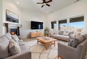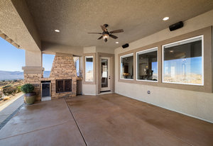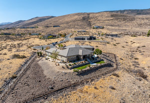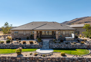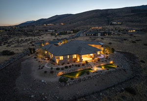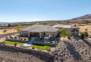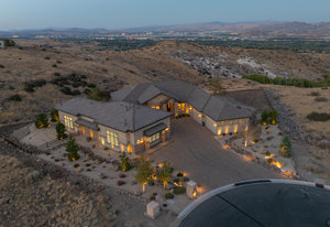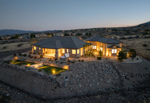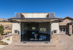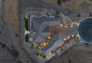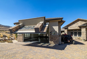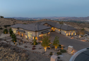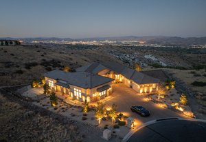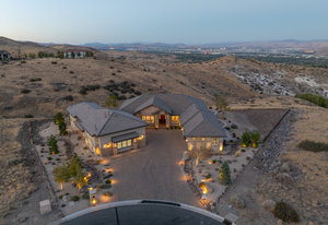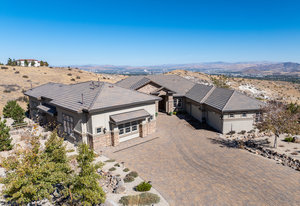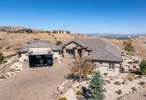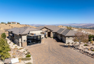 A rare single-story estate positioned on one of ArrowCreek's premier view lots, offering commanding panoramas of the city, mountains, and surrounding foothills. Designed for both presence and performance, this residence delivers elevated living—five bedrooms in a layout that is intentional, efficient, and effortlessly livable. Anchoring the property is an extraordinary 2,400-square-foot, commercial-grade showcase garage with capacity for up to 25 vehicles (size dependent). Purpose-built for collectors and large-scale toys, the detached structure features an aviation-grade hidden door lift, five-color marbled epoxy floors, cast-iron drains, insulated walls, dual heaters, ceiling fans, and remote blinds. Fully RV-ready with dual 220-amp power, sewer drop, gas line, and dedicated plug-in. A fully heated driveway with automatic snow detection ensures year-round access. Interiors are clean, modern, and refined, highlighted by fresh paint, custom wood cabinetry, Moen fixtures, and an updated dining chandelier. Remote-controlled lighting, Hunter Douglas blinds, integrated Sonos surround sound, wet bar, wine refrigerator, and two gas fireplaces elevate both daily living and entertaining. Outdoor spaces are equally curated. A covered patio with gas fireplace opens to a private spa setting, where a luxurious hot tub is dramatically illuminated by over 100 automated landscape lights—creating a striking nighttime presence at the edge of the cul-de-sac. Infrastructure and smart systems are seamlessly integrated throughout, including a 23kW whole-home standby generator, dual whole-house humidifiers, sewage pump system, high-end security, keyless entry, phone-controlled systems, smart lighting, and a 220-volt EV charger in the attached garage. Commercial-grade pavers finish the heated driveway and front entry. Located within the gated ArrowCreek community, residents can enjoy access to resort-style amenities including golf, pool, tennis, and clubhouse. A true statement property offering unmatched garage capacity, advanced infrastructure, and panoramic views—without compromise.