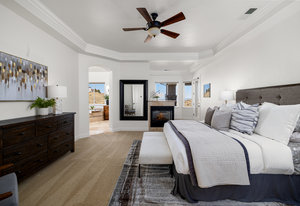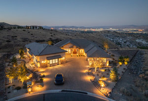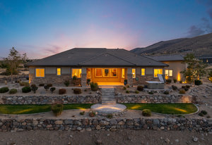 The elegant and elevated single story Arrowcreek home sits atop a premier lot on Gray Fox Ct with unparalleled views of the city, mountains, and foothills. This functional floor plan has 5 bedrooms yet does not feel uncomfortably large or allowing for unused space. The interior of the home has been freshly painted, features Moen fixtures, custom wood cabinetry, updated dining room chandelier, and is complemented by remote-controlled lighting and Hunter Douglas blinds. Wet bar, wine fridge, and Sonos surround sound system, 2 gas fireplaces, and an outdoor fireplace on the covered patio. Luxurious hot tub spa illuminates at night by the over 100 landscape ambiance automatic lights accompanying the property making the home look like it floats on the edge of the cul de sac in the dark.